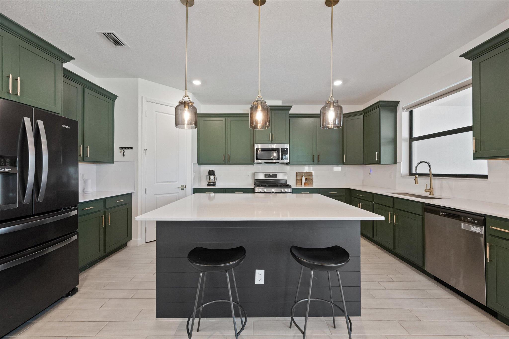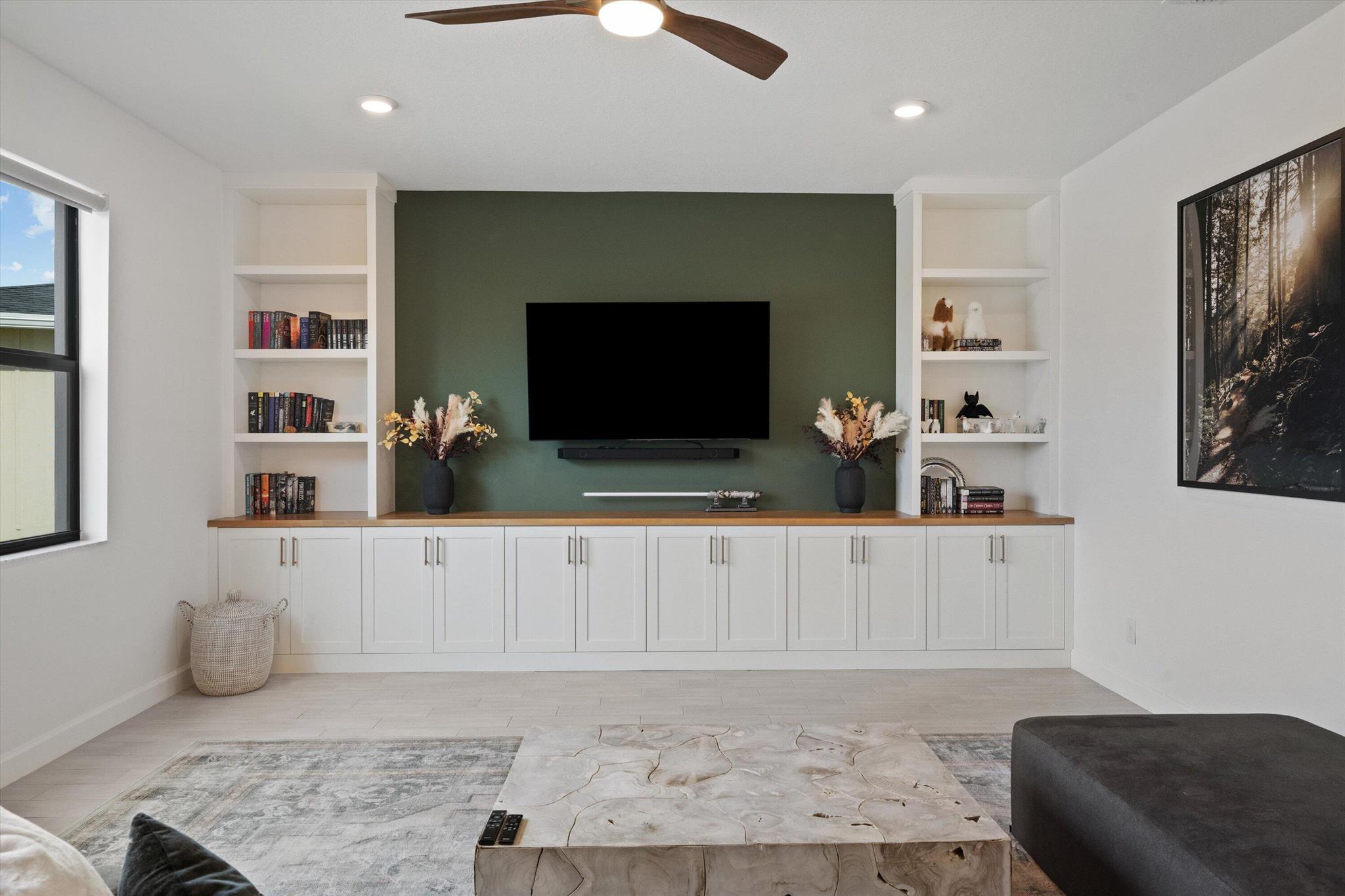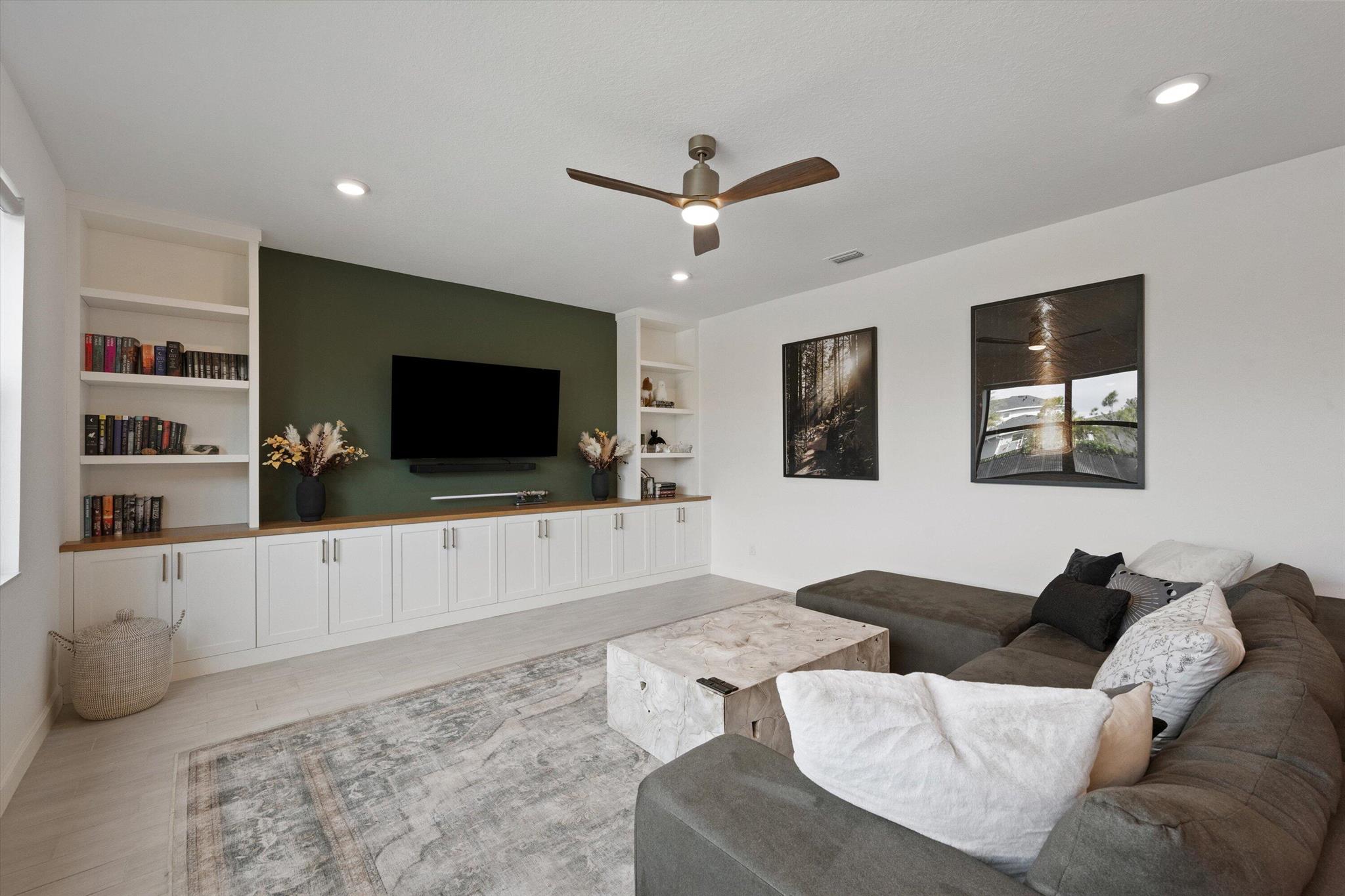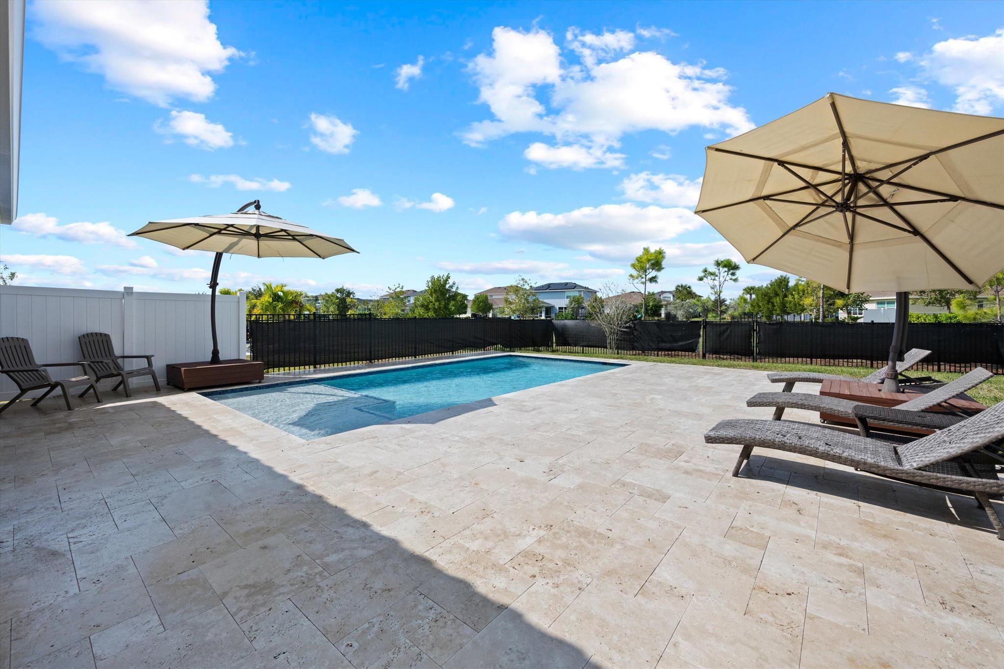 Welcome to this stunning 4-bed, 3-bath Spanish-style home, featuring a highly sought-after floor plan, set on an expansive lot. On the ground floor, you'll find an inviting open-concept living, dining, and kitchen area--perfect for entertaining. A 4th bedroom and full bath, along with stylish wood-tile flooring, complete the main level. The 2nd level offers a spacious primary suite, along with 2 additional bedrooms, bath and laundry room. This home boasts an array of upgrades, including a heated pool with a generous deck for outdoor relaxation, screened in lanai, fenced yard, and a total of 3 garage bays. Additional highlights include impact windows and doors, custom built-in shelving in the living area, new vanity mirrors, light fixtures, ceiling fans
