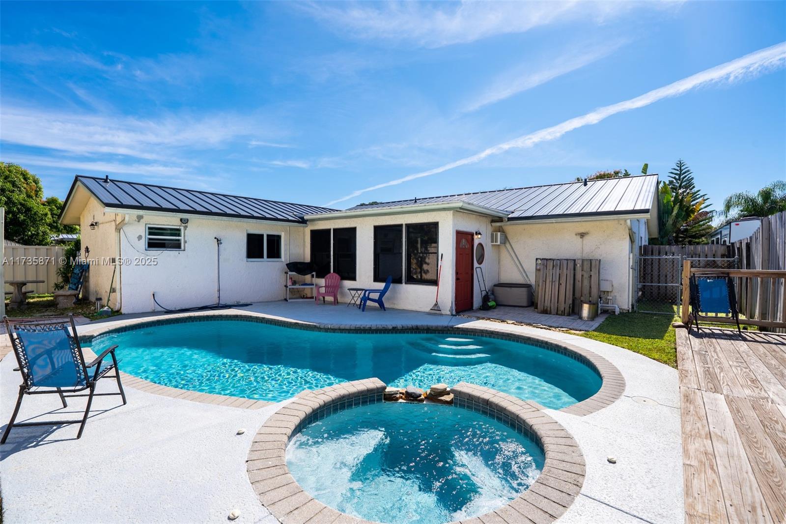 This beautifully remodeled home offers a perfect blend of modern comfort and luxury. Featuring 3 bedrooms and 2 bathrooms, this home is move-in ready! The open floor plan with high ceilings creates a bright and airy atmosphere throughout, making it perfect for hosting gatherings or enjoying quiet moments at home.Step outside to your own private oasis, beautiful pool and relaxing jacuzzi! The generous backyard offers plenty of space for outdoor activities. The home has been completely remodeled, with no detail spared. Enjoy a brand new roof and impact windows and doors! Located in the desirable community of Sunrise, this home is close to shopping, dining, and top-rated schools, offering both convenience and tranquility.Don't miss the opportunity to make this dream home yours!