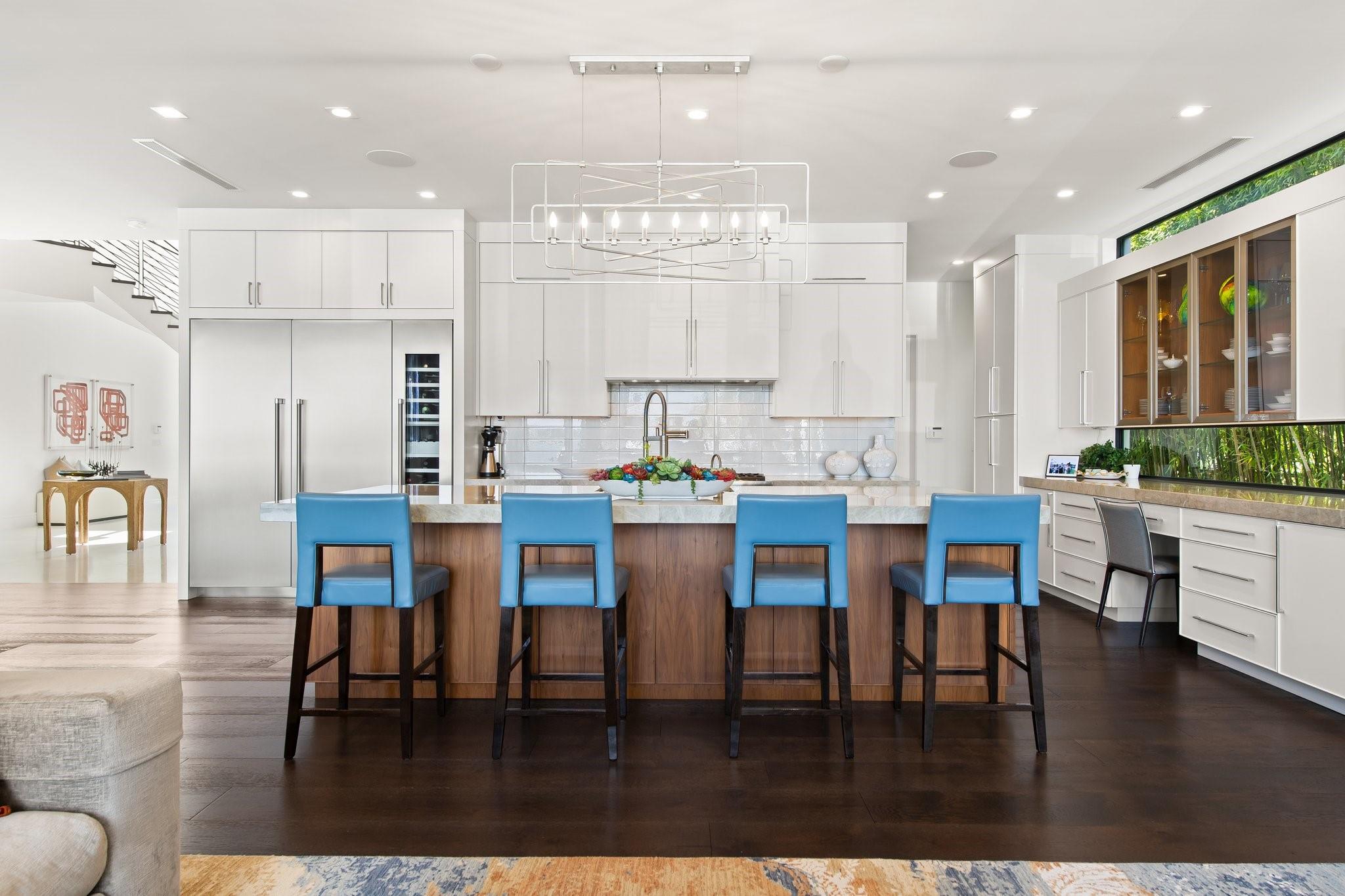Experience stunning panoramic intracoastal water views from most every room in this home! A brilliant collaboration of architect Bob Tuthill, builder JL Lavallee and interior designer William Peacock this residence features volume ceilings, state of the art gourmet kitchen with Thermador appliances, floor to ceiling windows, huge open balcony overlooking the pool and waterway, gorgeous custom bar for entertaining, 240 square foot walk-in closet in primary bedroom, marble floors, Sonos sound system, laundry room on each floor, triple spilt AC system, 22' deep by 60' wide dock, tranquil pool and jacuzzi, lush landscaping, golf cart parking space and more!