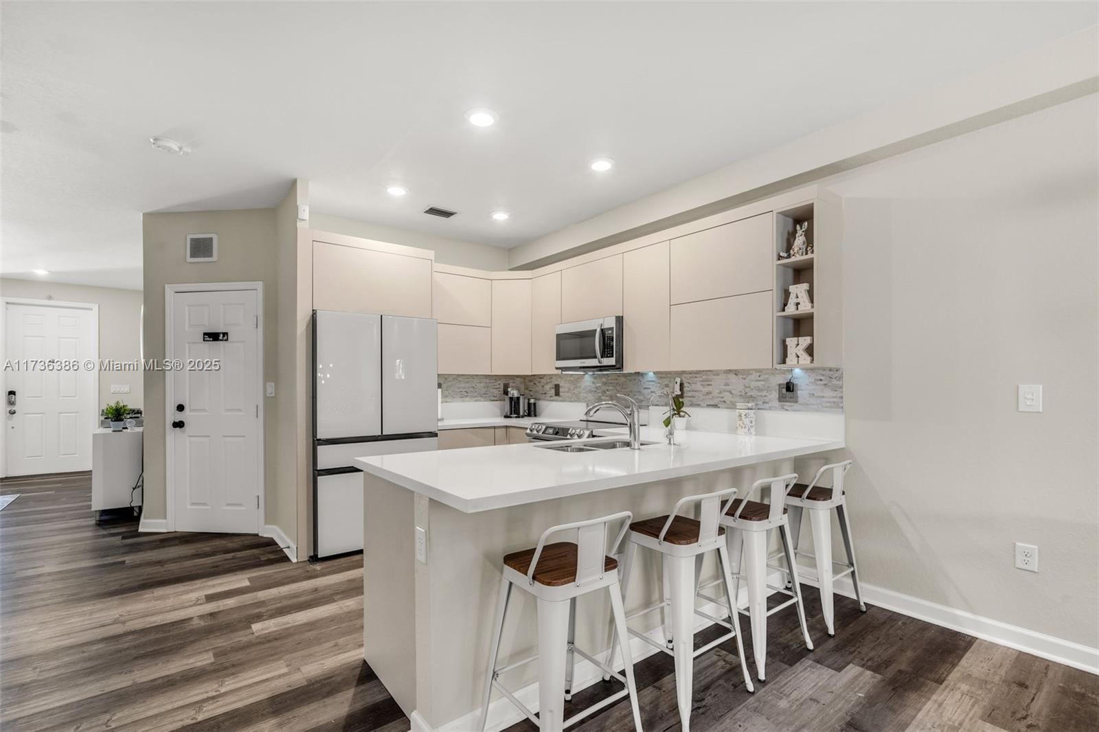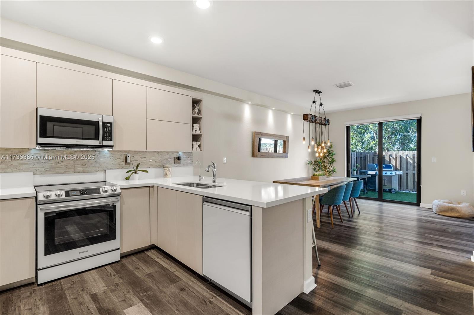 Discover this stunning townhouse featuring a modern updated kitchen with brand-new Samsung appliances, perfect for cooking and entertaining. The home is equipped with impact windows for safety and energy efficiency. The garage includes a mini-split unit, making it a great option for a home office or additional workspace. Recently painted throughout in the last six months, the home feels fresh and move-in ready. The primary bedroom features a dream closet! Don’t miss out on this fantastic opportunity—schedule your showing today!