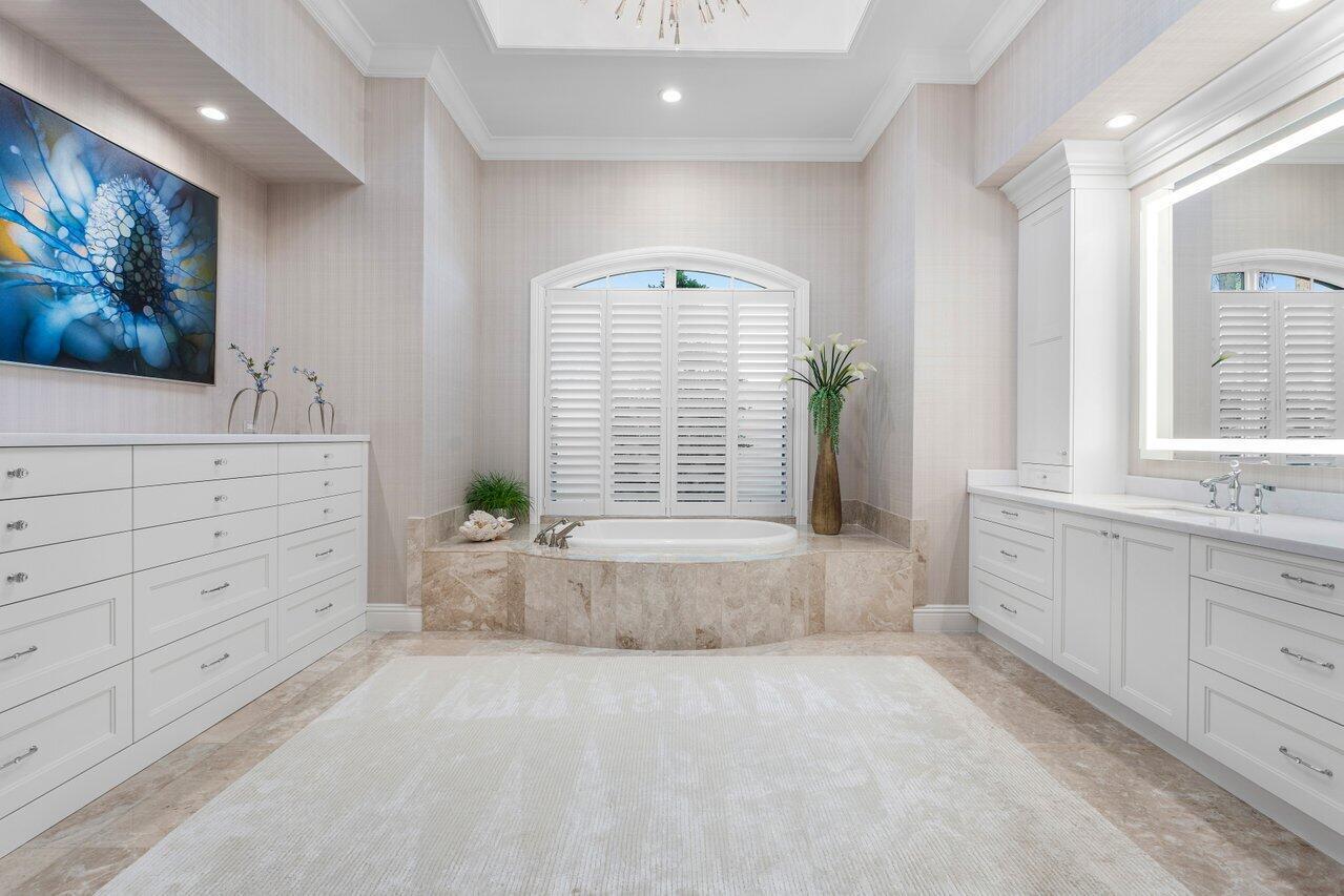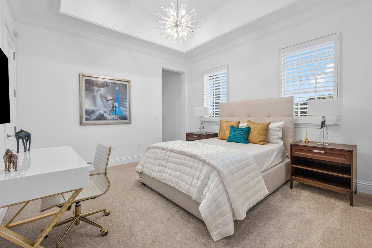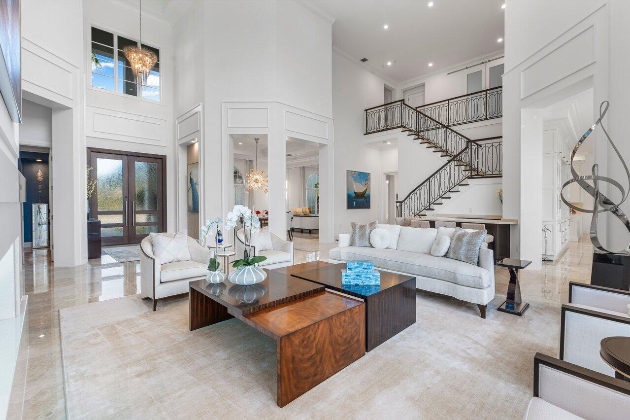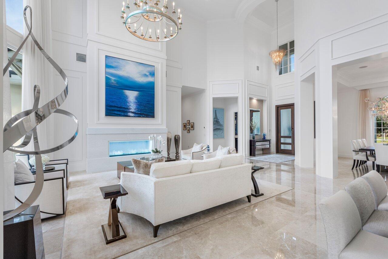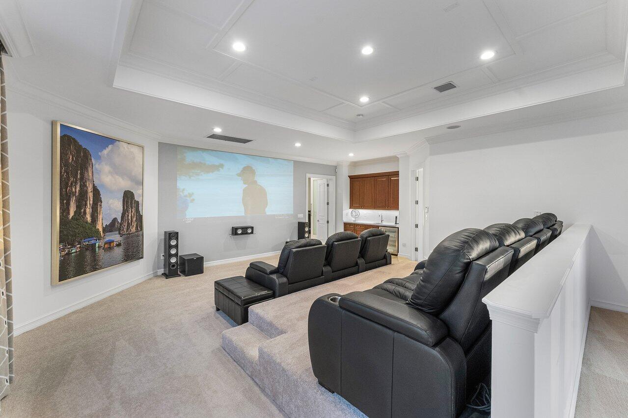 Just bring your toothbrush! Welcome to this turnkey Ellish Builders luxury estate, where high-end innovation meets timeless elegance. This stunning residence is a masterpiece of contemporary design, offering a seamless blend of luxury and sophistication. Designer furniture & curated artwork included. Move-in ready with exquisite, hand-selected pieces. Spanning an impressive 7,300 sq. ft. under air, this magnificent home boasts 6 spacious bedrooms (1 used as gym),a private office, a state-of-the-art theatre with 145''screen & 8 plush reclining seats, and 6 full & 2 half luxurious bathrooms - two baths & two large closets in the primary! The grand entrance welcomes you with soaring ceilings, abundant natural light, and breathtaking water and golf course views. At the heart of the home,