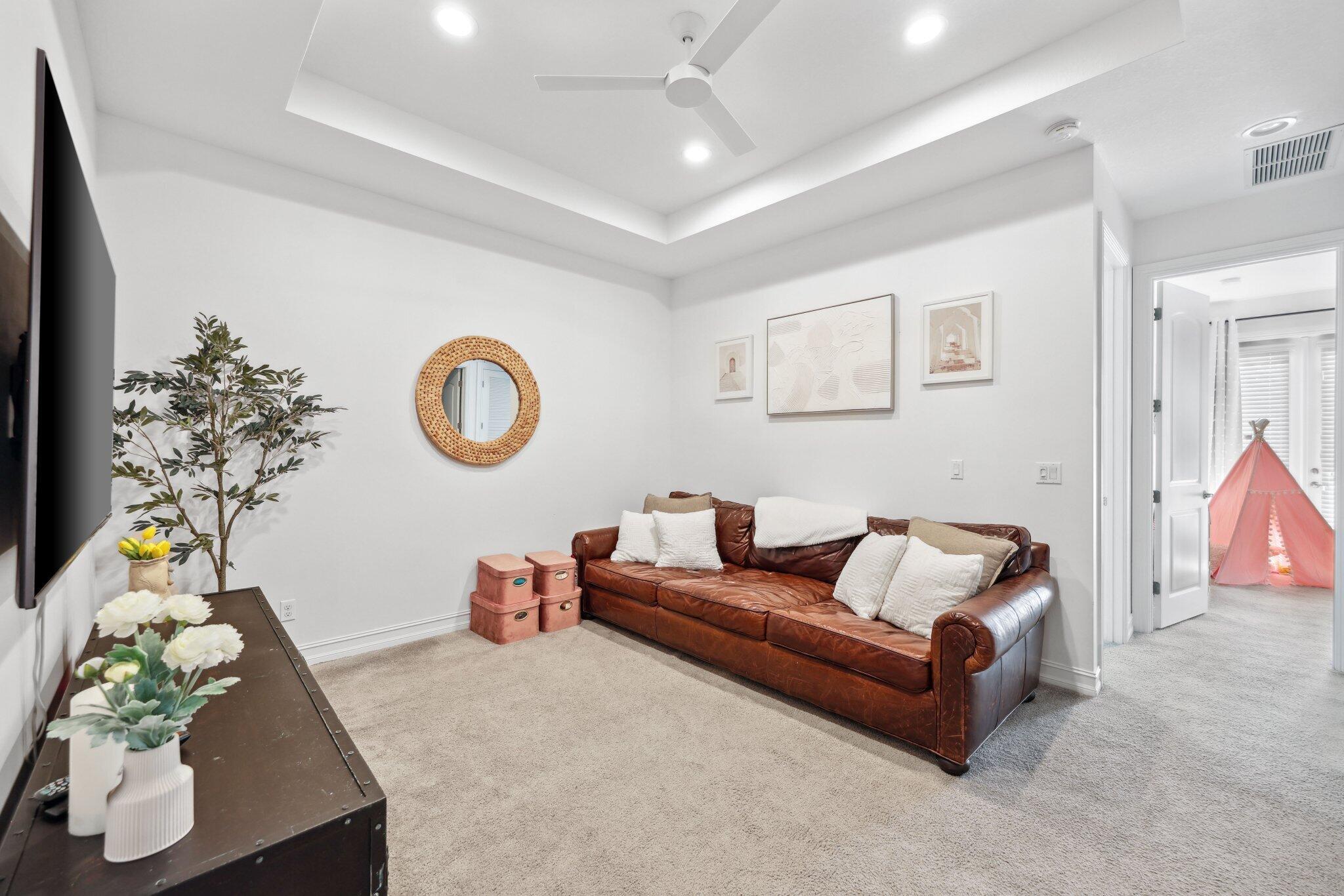 Welcome to this stunning East Boca Raton two-story townhome, a true gem in Valletta, boasting high ceilings throughout. This dream home offers the most sought-after floor plan in the community. It features three spacious bedrooms, two full bathrooms & a convenient half bath on the main floor, providing ample space & functionality.All bedrooms are located upstairs, along with a loft. The master suite includes a bathroom & two large walk-in closets. Every window & door is equipped with hurricane impact protection for added peace of mind. The attention to detail showcases true pride of ownership. The gourmet kitchen is a chef's dream, complete with a 14-foot island, double ovens & a large pantry. Enjoy the private fenced turfed yard, which backs up to a tranquil nature preserve.
