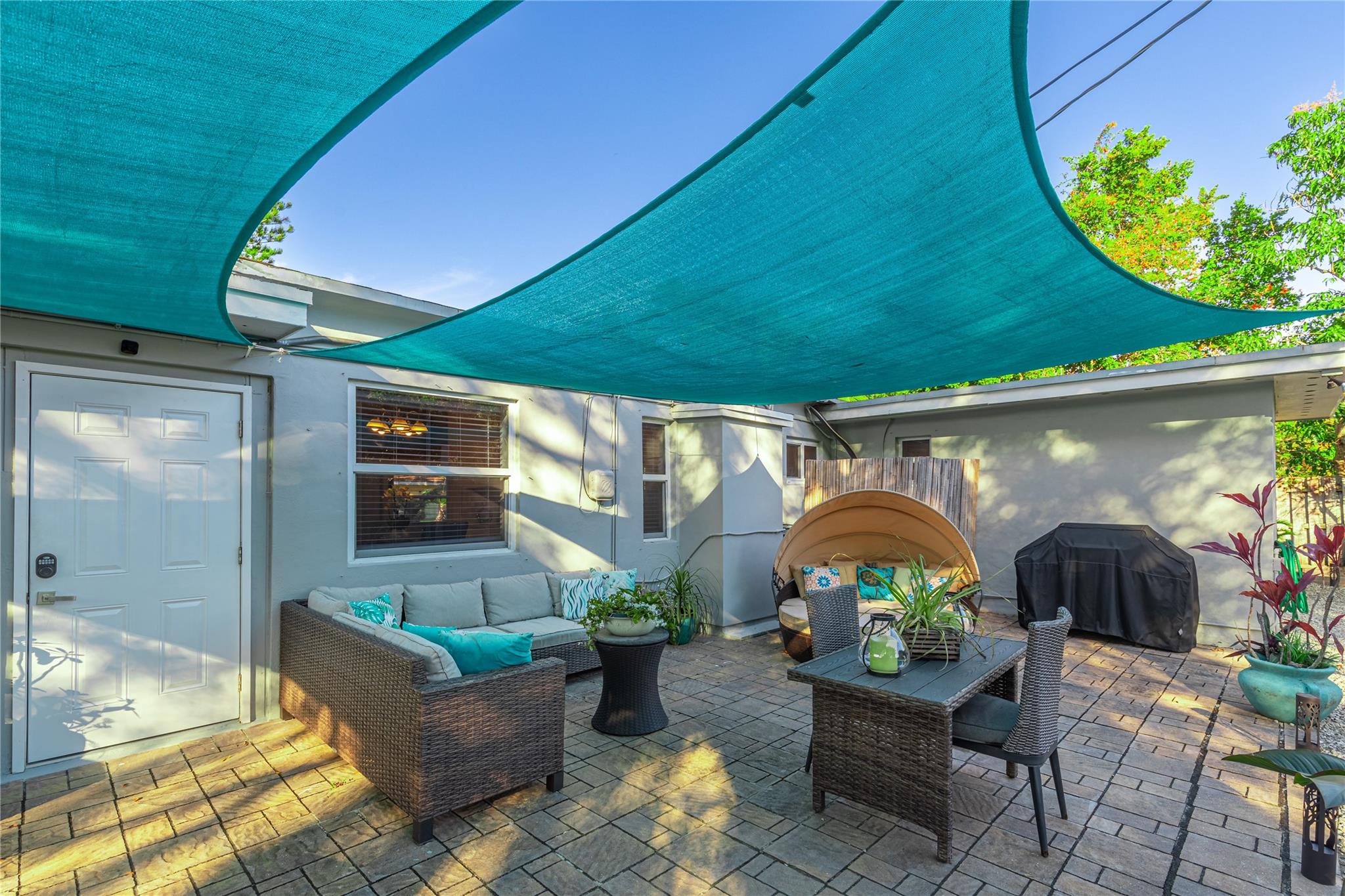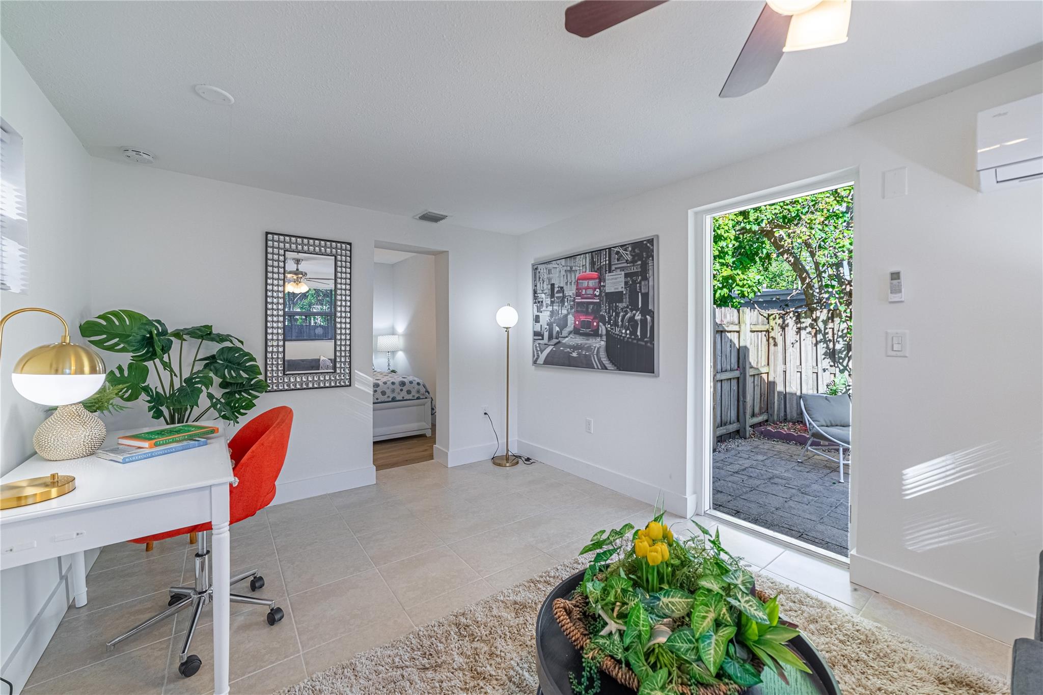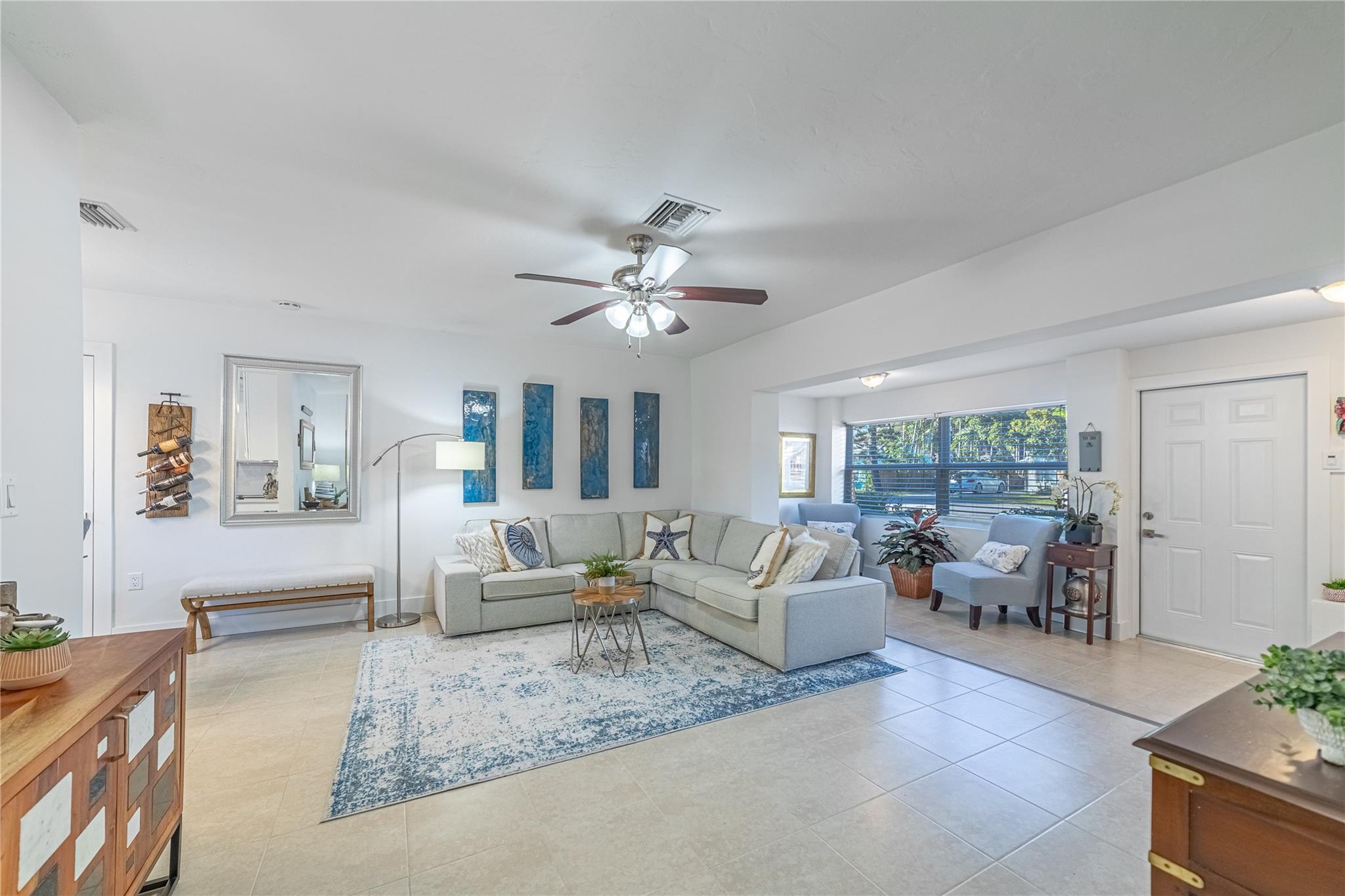 Own a little piece of paradise near Marina Mile. This beautifully renovated home with rare oversized GARAGE is waiting to welcome you. Totally move-in ready! Nice open floor plan, brand new custom kitchen & bathroom, new waterproof vinyl plank floors in bedrooms. Updated Plumbing to PVC & fully rewired Electric on interior. Savor the huge indoor laundry room, storage & pantry area. Third room used as office/den has a separate entry and can easily accommodate a 2nd bathroom again. Unique low maintenance yard featuring multiple patio/seating areas, newly landscaped & fully fenced. Room for pool. All Hurricane Impact windows (2017) Flat roof 2020, main 2015. This home is a must see! Located East of 1-95, near Airport, Port Everglades, Marinas/shipyards, Beaches & All major hwys