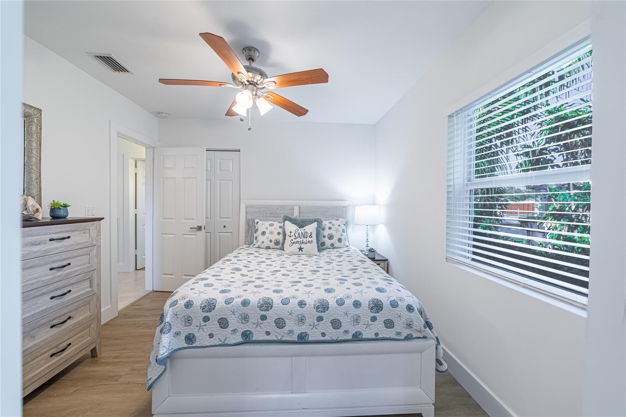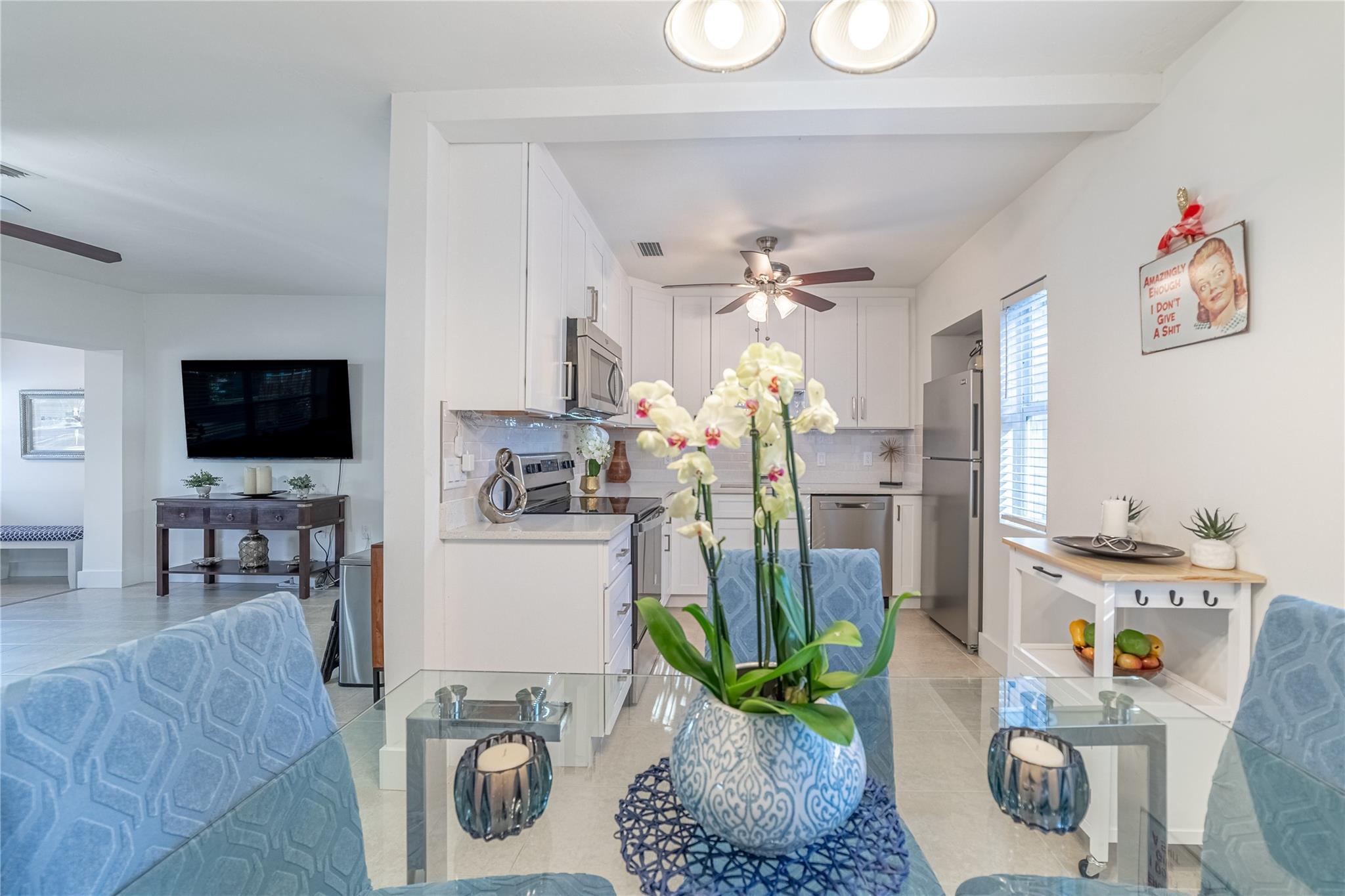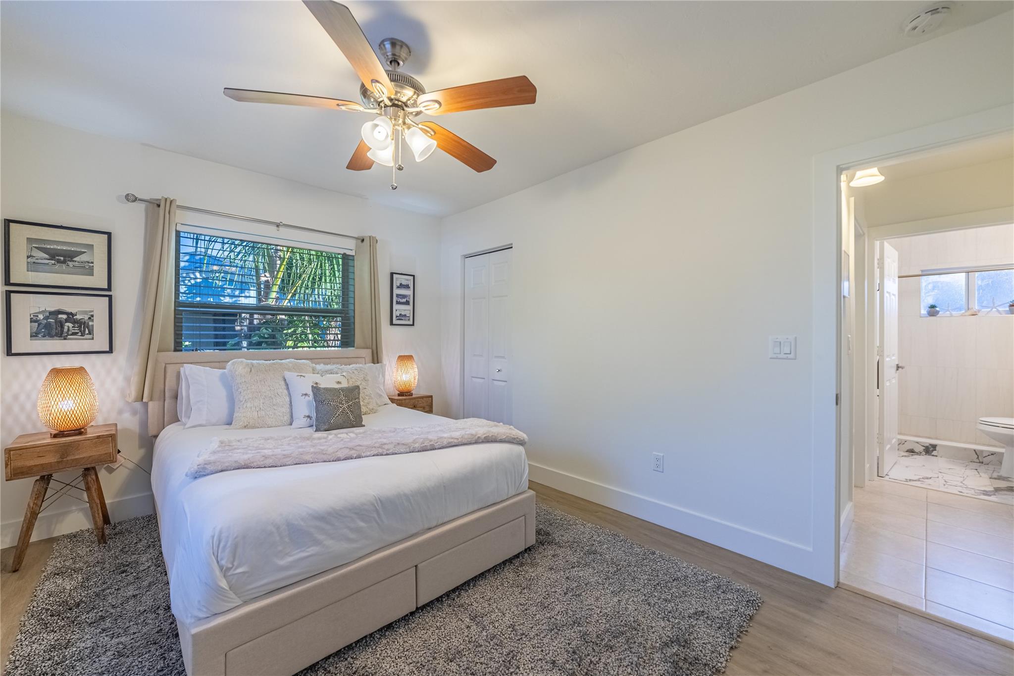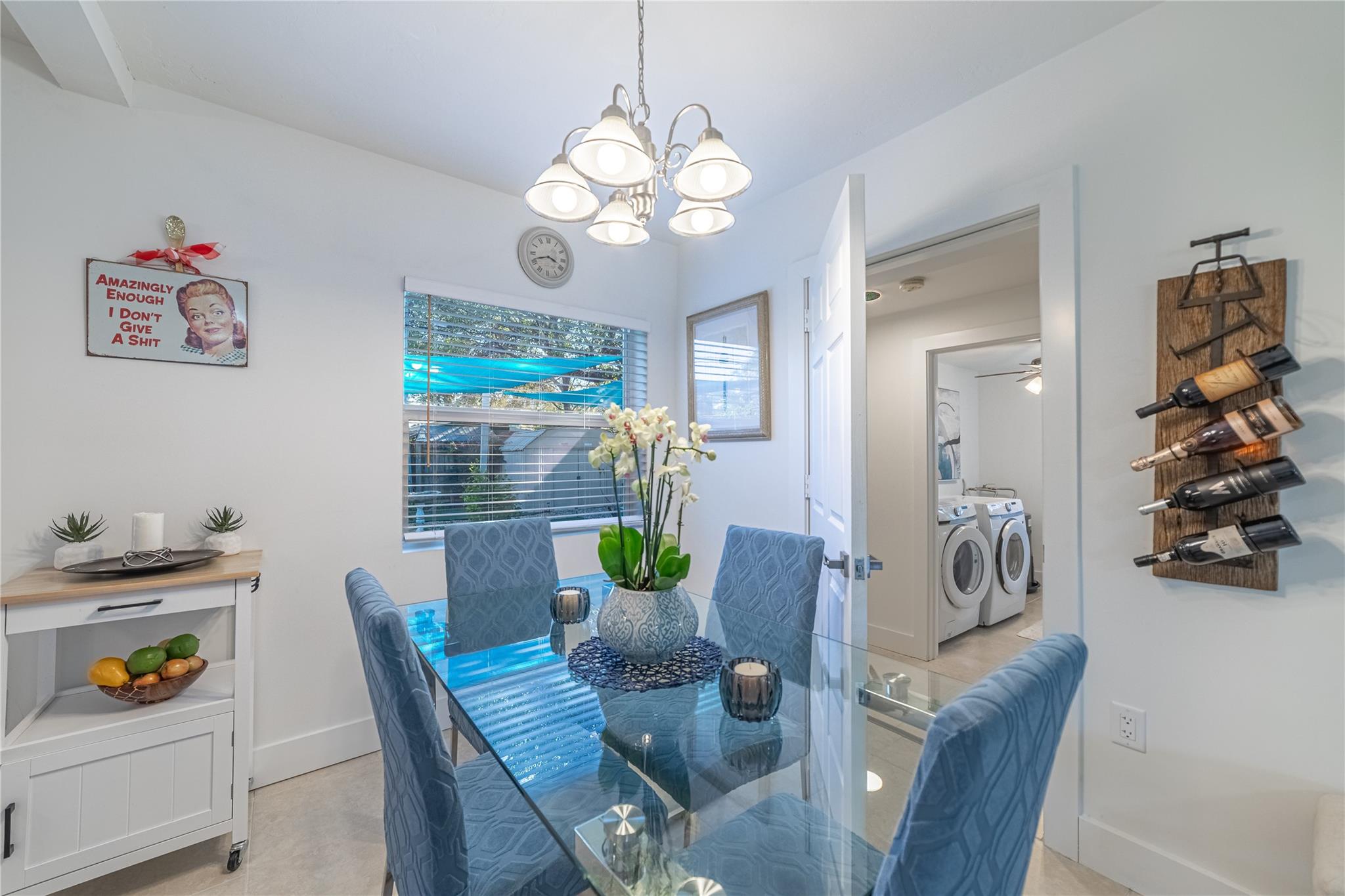 Own a little piece of paradise near Marina Mile. This beautifully renovated home with rare oversized GARAGE is waiting to welcome you. Totally move-in ready! Nice open floor plan, brand new custom kitchen & bathroom, new waterproof vinyl plank floors in bedrooms. Updated Plumbing to PVC & fully rewired Electric on interior. Savor the huge indoor laundry room, storage & pantry area. Third room used as office/den has a separate entry and can easily accommodate a 2nd bathroom again. Unique low maintenance yard featuring multiple patio/seating areas, newly landscaped & fully fenced. Room for pool. All Hurricane Impact windows (2017) Flat roof 2020, main 2015. This home is a must see! Located East of 1-95, near Airport, Port Everglades, Marinas/shipyards, Beaches & All major hwys