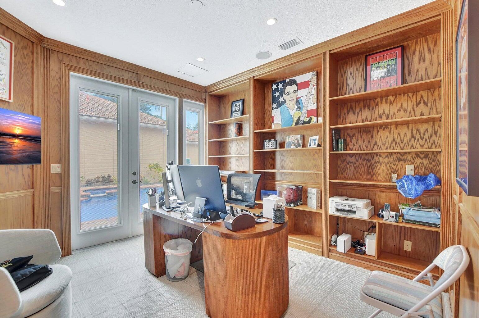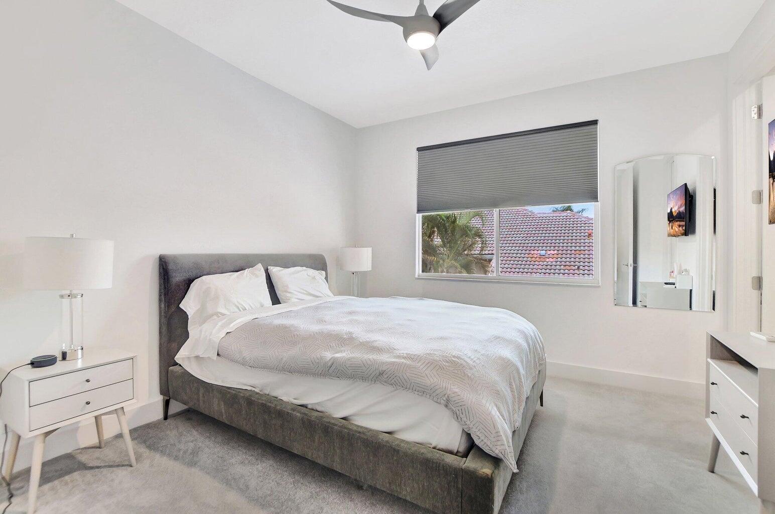 Best deal in Boca Grove - A Move-In-Ready 5-Bedroom, 5-Bathroom Courtyard Home in subsection Islands of the Grove. This beautifully maintained residence offers the ultimate in privacy and luxury. This home features a spacious layout with a private pool and spa, complemented by summer kitchen--ideal for outdoor entertaining. Enjoy stunning lake views from the expansive deck, providing a serene setting for relaxation. The home includes a full guest house adjacent to the courtyard, perfect for accommodating guests or creating an independent living space for a teen or in-laws. Upon entering the main house, you're welcomed by a grand living room with soaring ceilings and large windows showcasing picturesque lake views. The formal dining area also enjoys the same breathtaking vistas, creating a