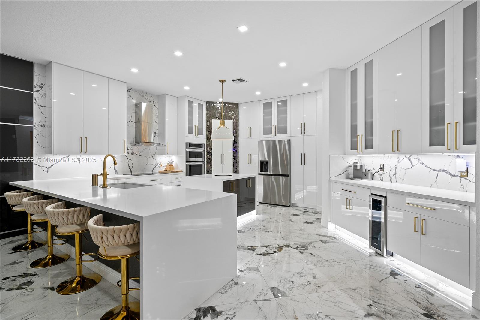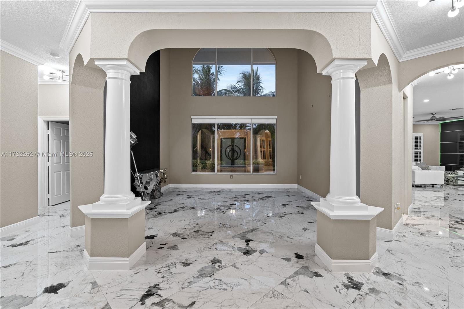 Step into luxury with this stunning estate, featuring a dramatic 25-foot foyer with marble floors throughout the first floor and real hardwood floors upstairs. This home offers 6 spacious bedrooms, 4.5 bathrooms, including a lavish primary suite with a sitting area and custom closets. The gourmet kitchen boasts Italian cabinets, a large island, and connects seamlessly to a custom bar and wine closet. Perfectly complimented with the customized accent wall.  Enjoy an extended driveway for 7+ cars, a 3-car garage, and an oversized lot perfect for an Olympic-sized pool. Sunset Lakes offers resort-style amenities, tennis, volleyball, and basketball courts. Low HOA fees cover cable, Wi-Fi, and an alarm system. Don’t miss this opportunity!