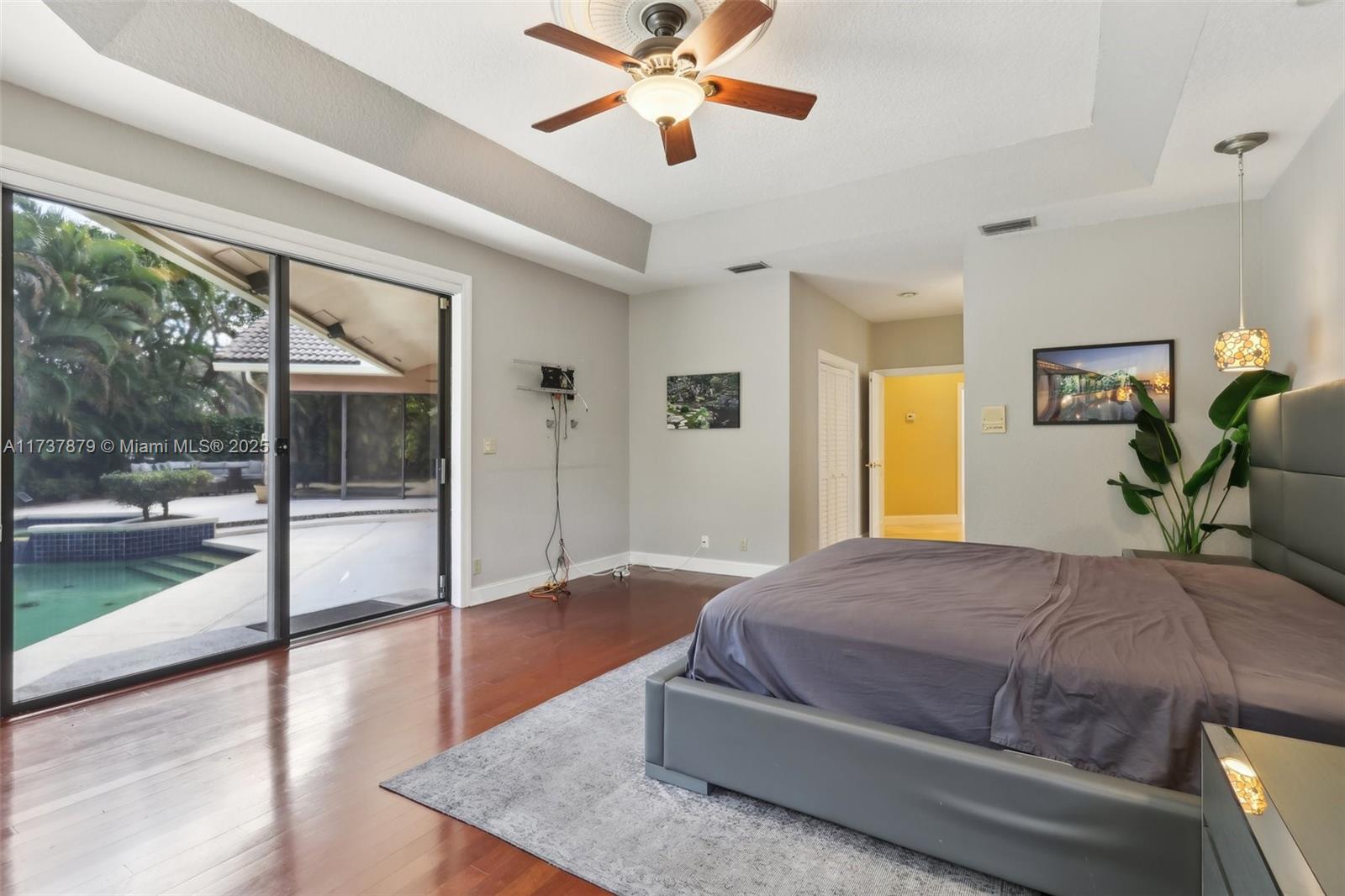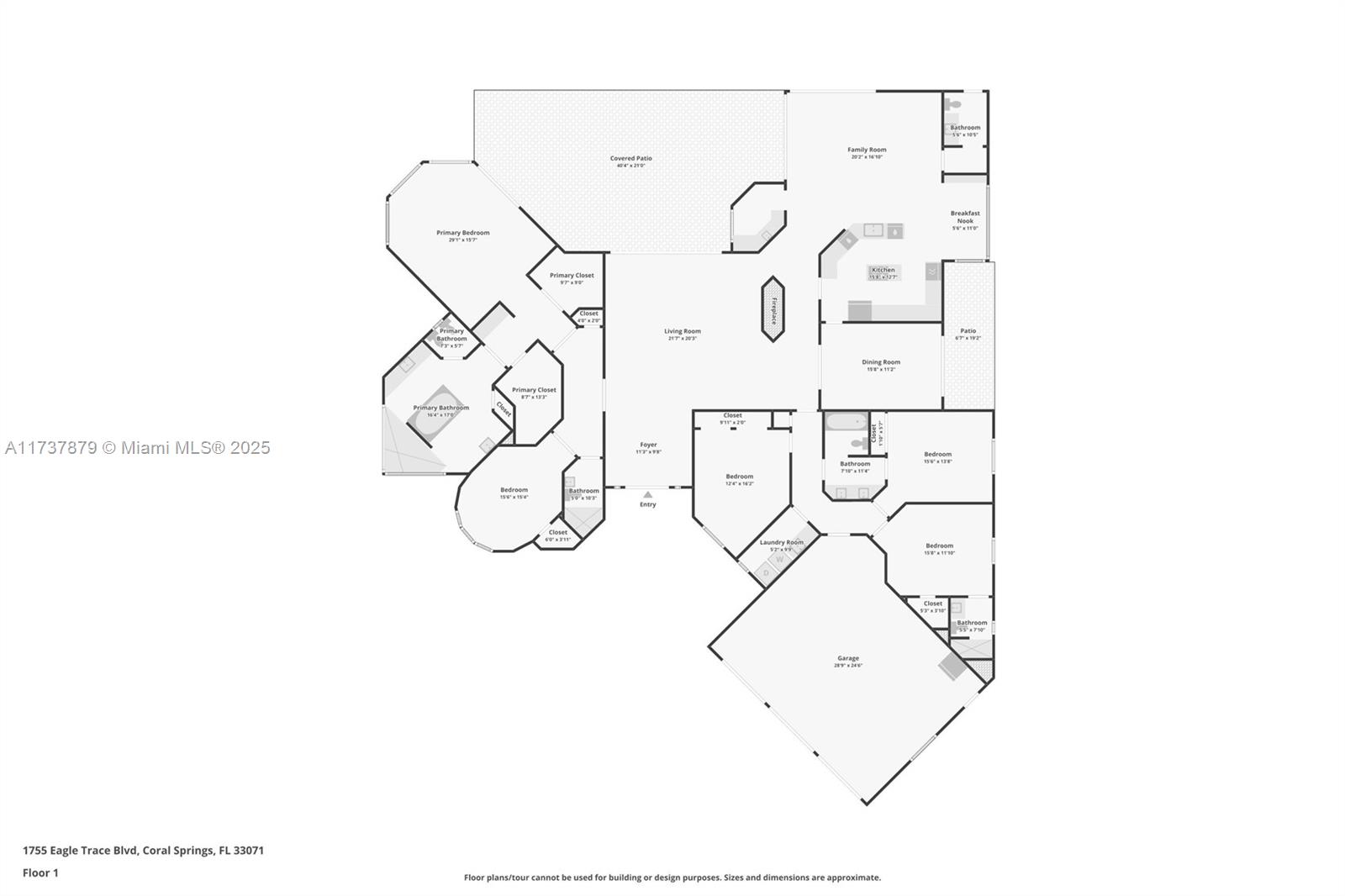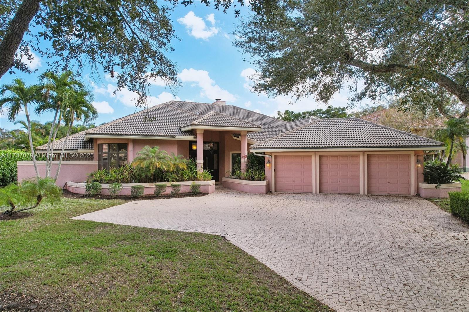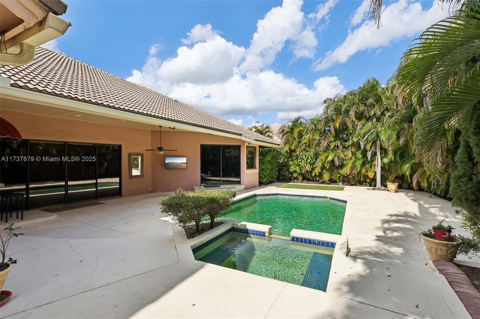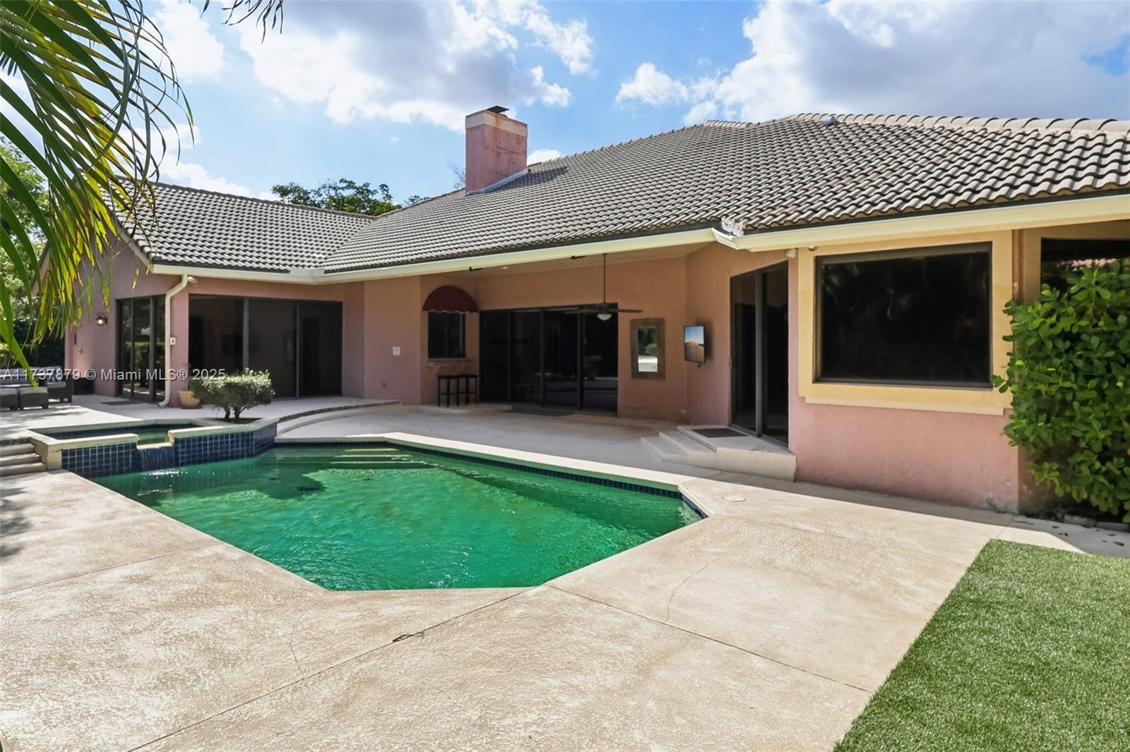 NEW PRICE SAVE 100K+!! Beautiful custom built 5/4.5/3 home in Estates section of Eagle Trace secure gated community! This fabulous neighborhood full of lovely mature landscape borders a picturesque golf course. Enter this spacious open plan with high vaulted ceilings, travertine & hardwood floors plus a limestone fireplace! Formal dining room w/ French doors. Awesome kitchen with granite counters and a glass-enclosed breakfast nook. Huge master suite has 2 walk-in closets and luxurious bathroom with dual shower plus large tub & bidet. 2nd bedroom on this side of split plan perfect for nursery or office. Wet bar with window great for entertaining. Private oasis has heated pool & spa, outdoor shower and backs up to golf course. New A/C & electric panels. 5100+ total SF! Make an offer today!