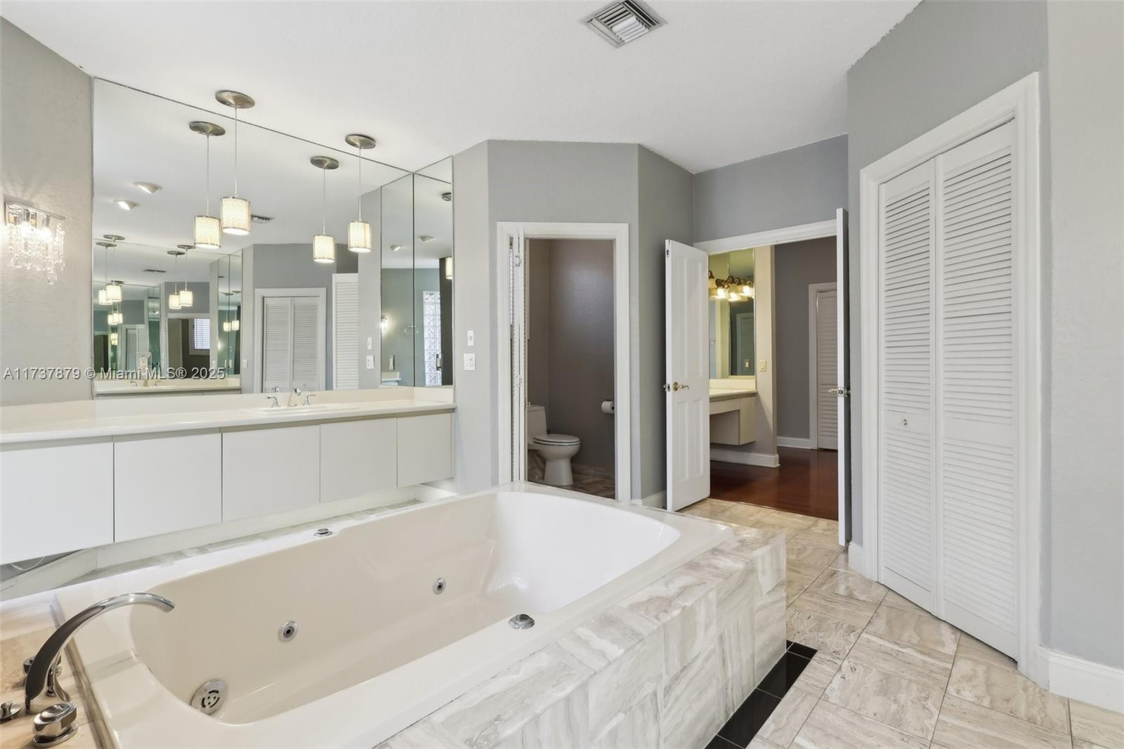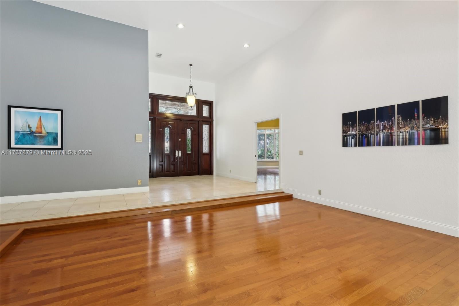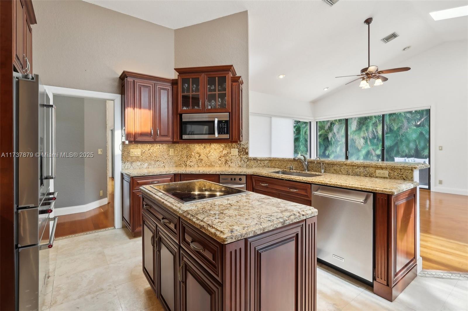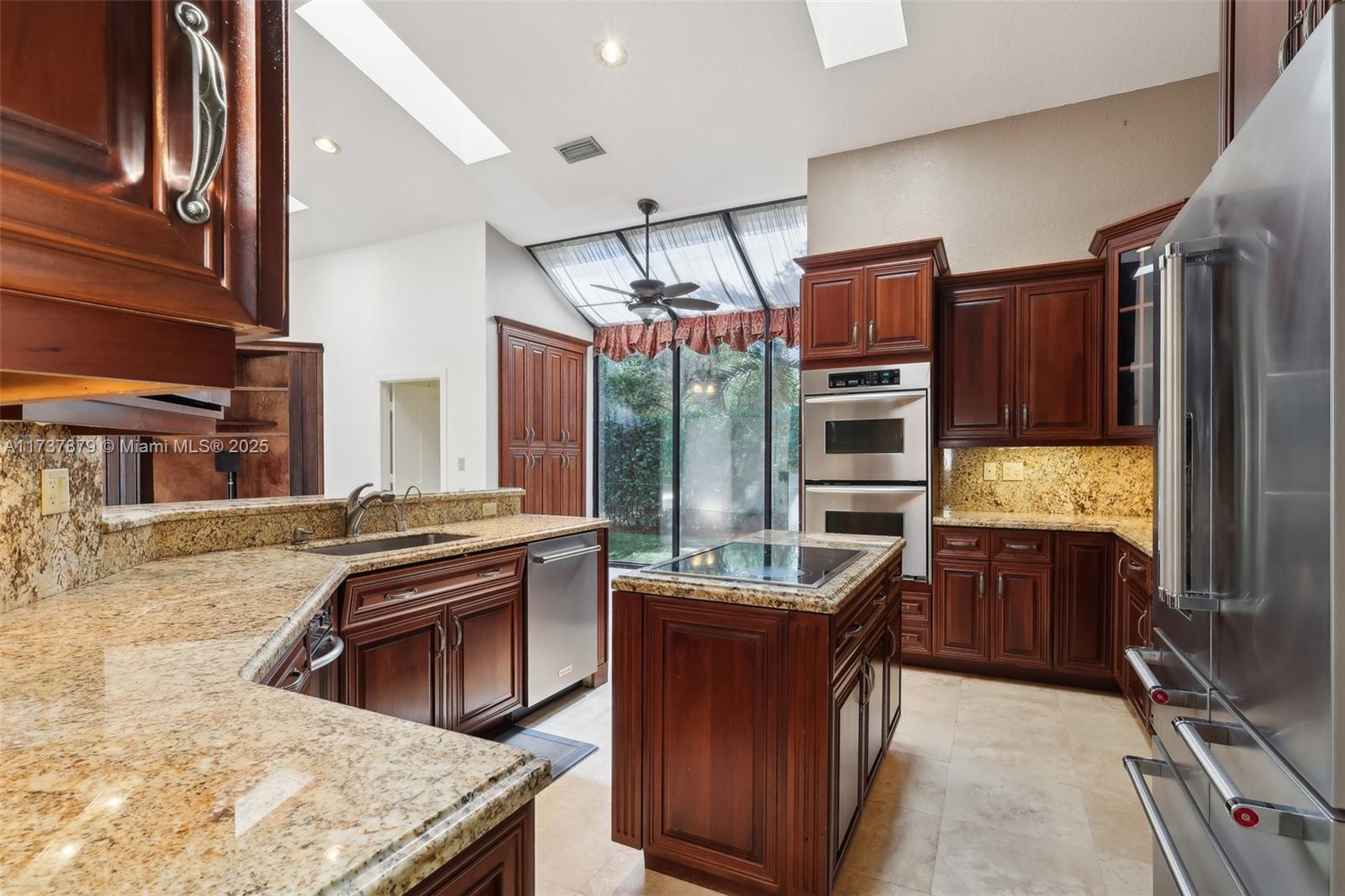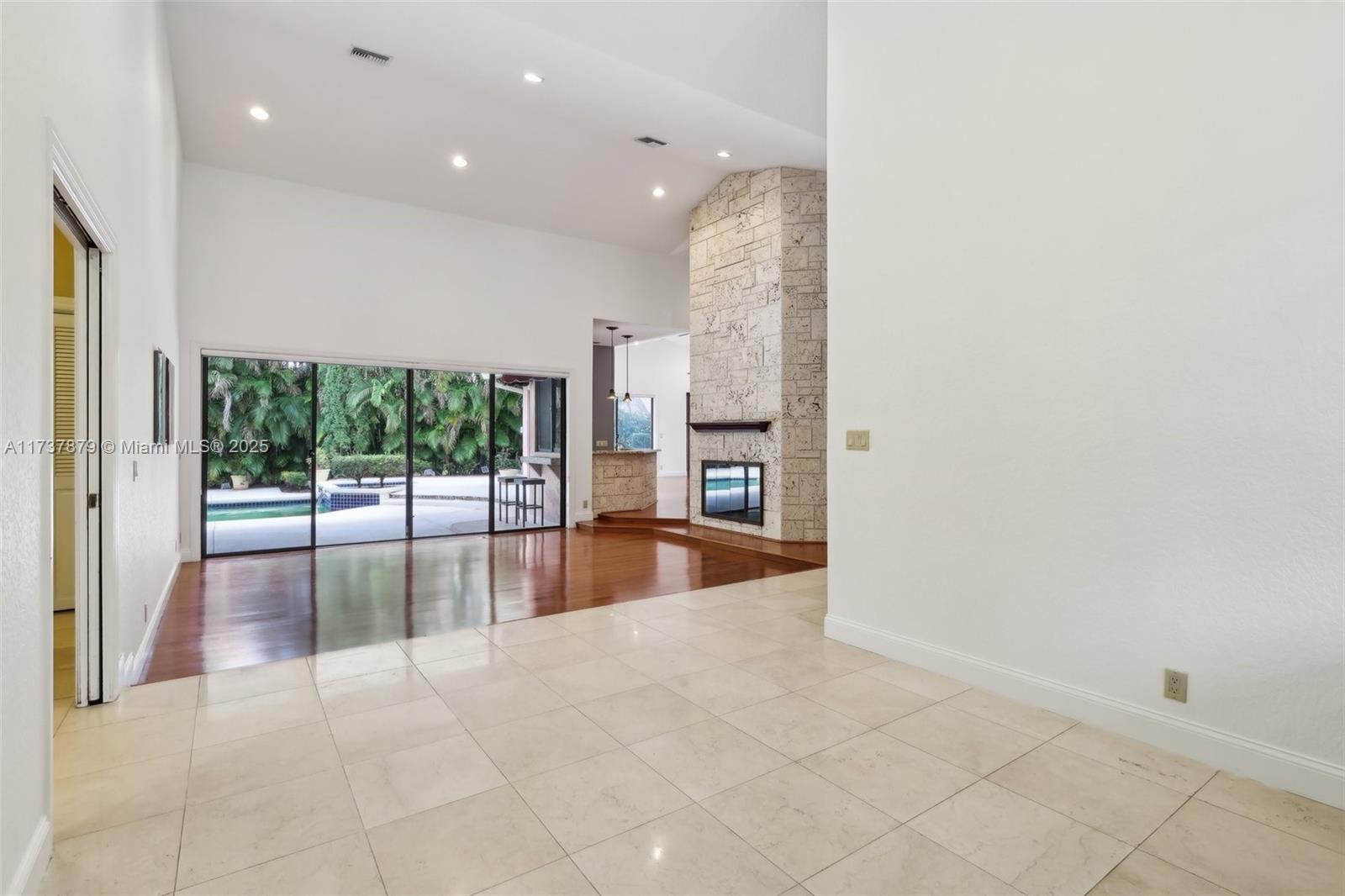 NEW PRICE SAVE 100K+!! Beautiful custom built 5/4.5/3 home in Estates section of Eagle Trace secure gated community! This fabulous neighborhood full of lovely mature landscape borders a picturesque golf course. Enter this spacious open plan with high vaulted ceilings, travertine & hardwood floors plus a limestone fireplace! Formal dining room w/ French doors. Awesome kitchen with granite counters and a glass-enclosed breakfast nook. Huge master suite has 2 walk-in closets and luxurious bathroom with dual shower plus large tub & bidet. 2nd bedroom on this side of split plan perfect for nursery or office. Wet bar with window great for entertaining. Private oasis has heated pool & spa, outdoor shower and backs up to golf course. New A/C & electric panels. 5100+ total SF! Make an offer today!