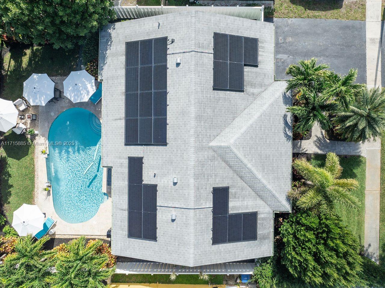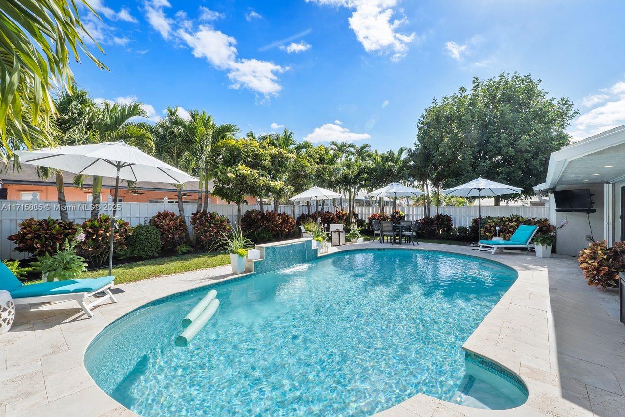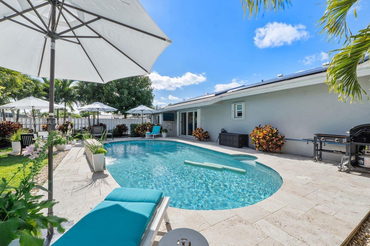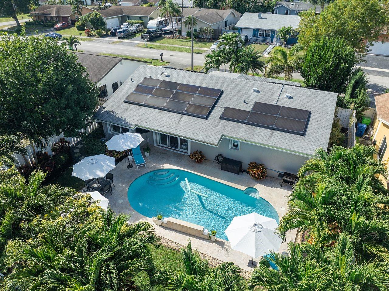 Discover this award-winning Stunning Sunrise Home with a tropical oasis-like atmosphere. Lush landscaping and a spacious driveway create inviting curb appeal. Inside, enjoy an open-concept layout with abundant natural light, porcelain tile floors, and a bright living area with seamless outdoor access. The modern kitchen features premium SS appliances and a large pantry. Sustainable upgrades include Tesla solar panels, two back-up Power-walls, Tesla Wall Connector for your EV, impact windows and doors, and a heated, sparkling saltwater pool. Relax with LED pool lighting, landscape lighting, and a SWAT mosquito system. This meticulously upgraded, energy-efficient home seamlessly blends safety, style, and serene living. Don’t miss your chance to call this move-in-ready gem your own!