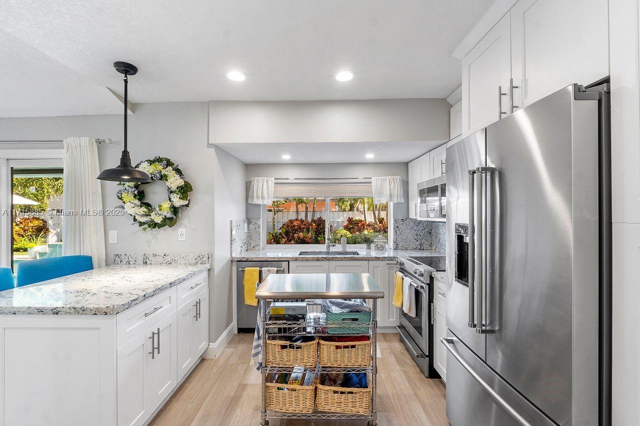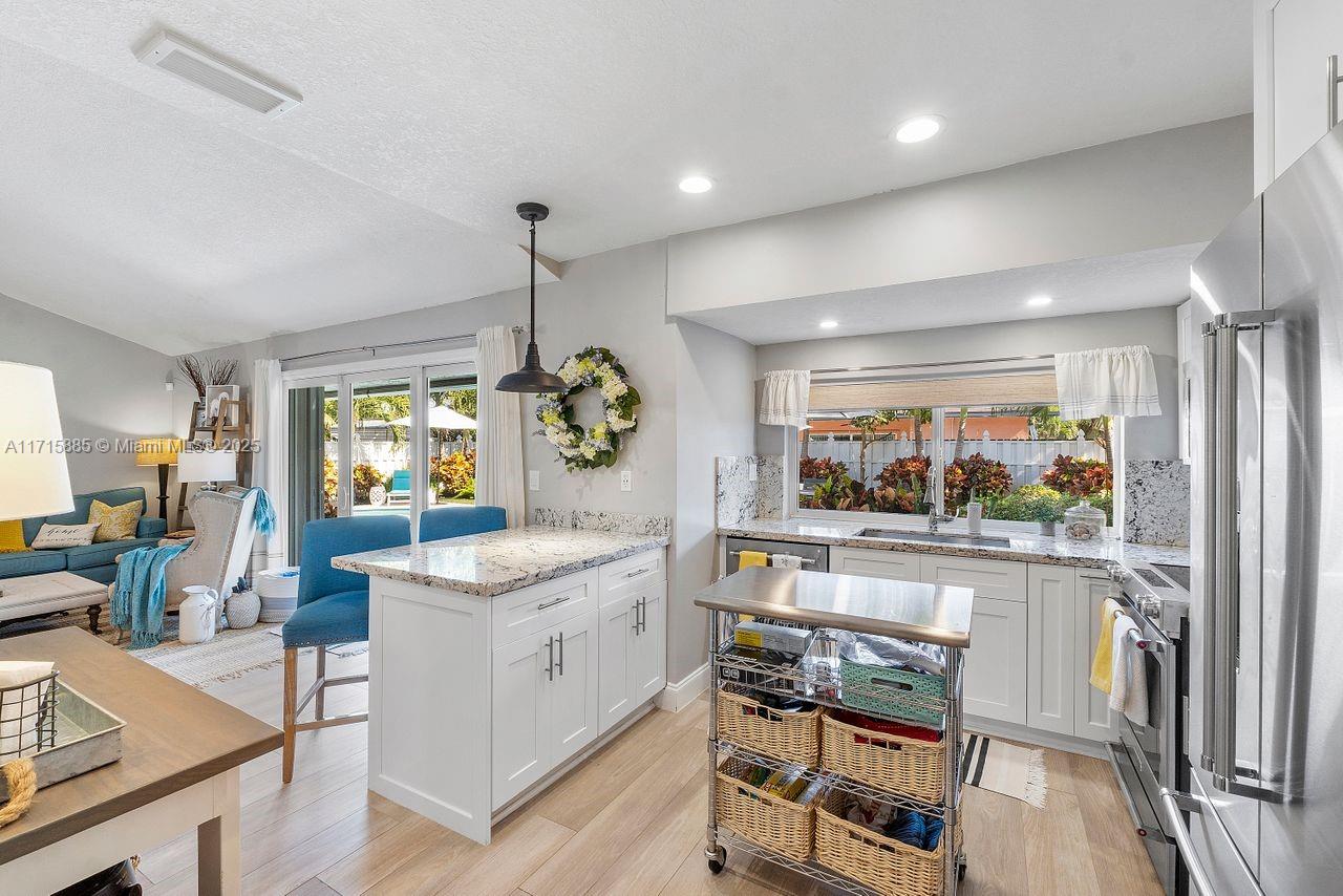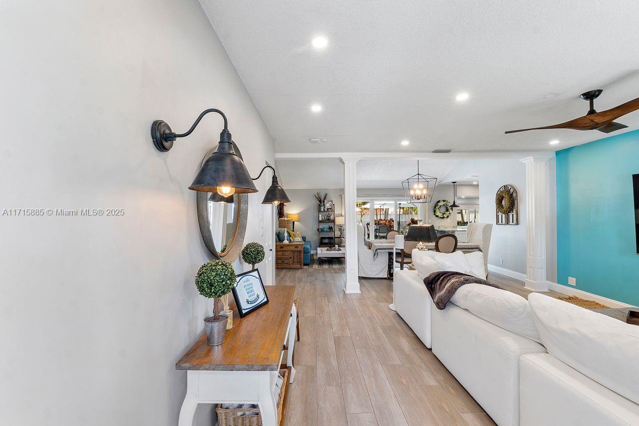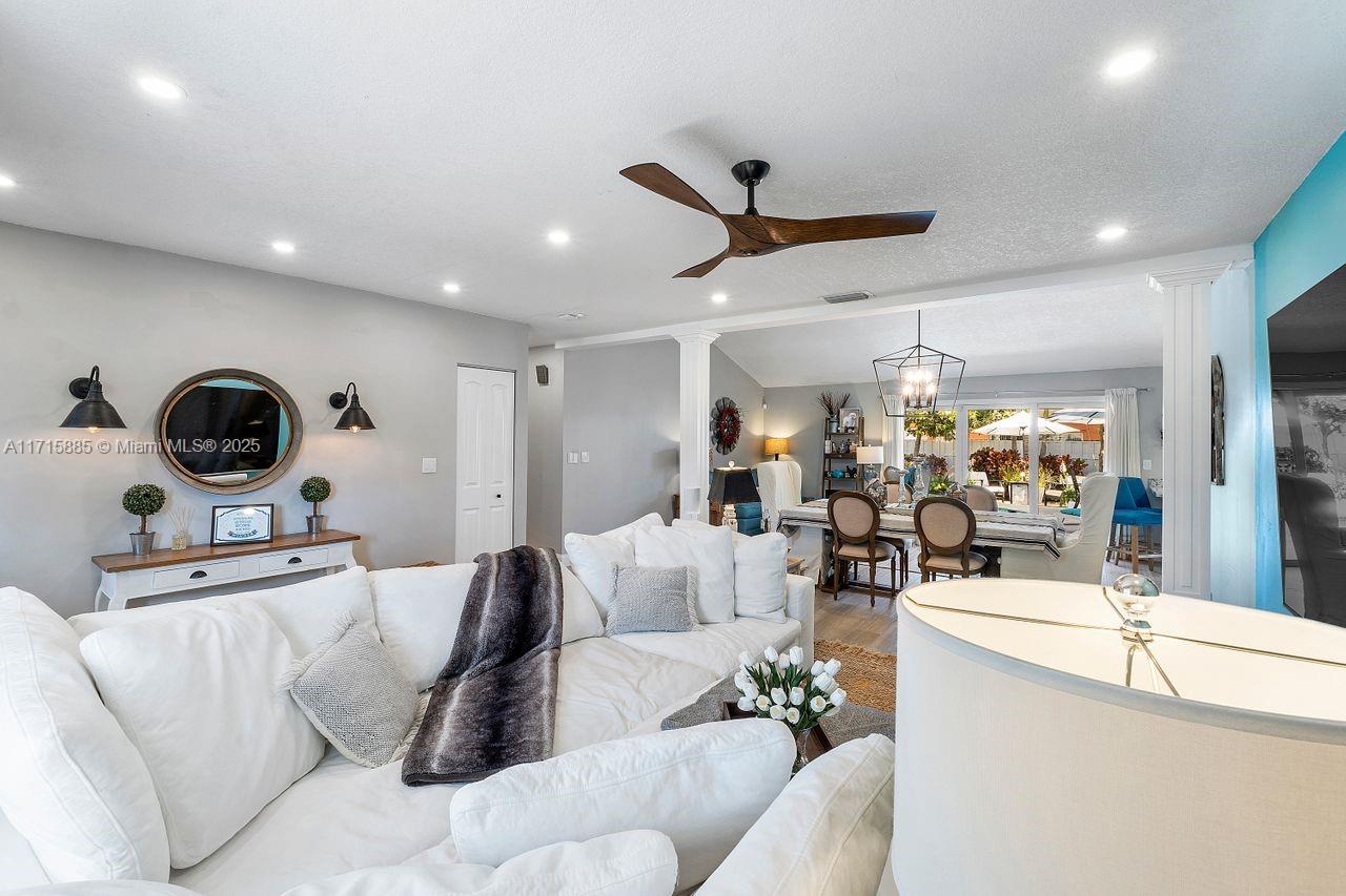 Discover this award-winning Stunning Sunrise Home with a tropical oasis-like atmosphere. Lush landscaping and a spacious driveway create inviting curb appeal. Inside, enjoy an open-concept layout with abundant natural light, porcelain tile floors, and a bright living area with seamless outdoor access. The modern kitchen features premium SS appliances and a large pantry. Sustainable upgrades include Tesla solar panels, two back-up Power-walls, Tesla Wall Connector for your EV, impact windows and doors, and a heated, sparkling saltwater pool. Relax with LED pool lighting, landscape lighting, and a SWAT mosquito system. This meticulously upgraded, energy-efficient home seamlessly blends safety, style, and serene living. Don’t miss your chance to call this move-in-ready gem your own!