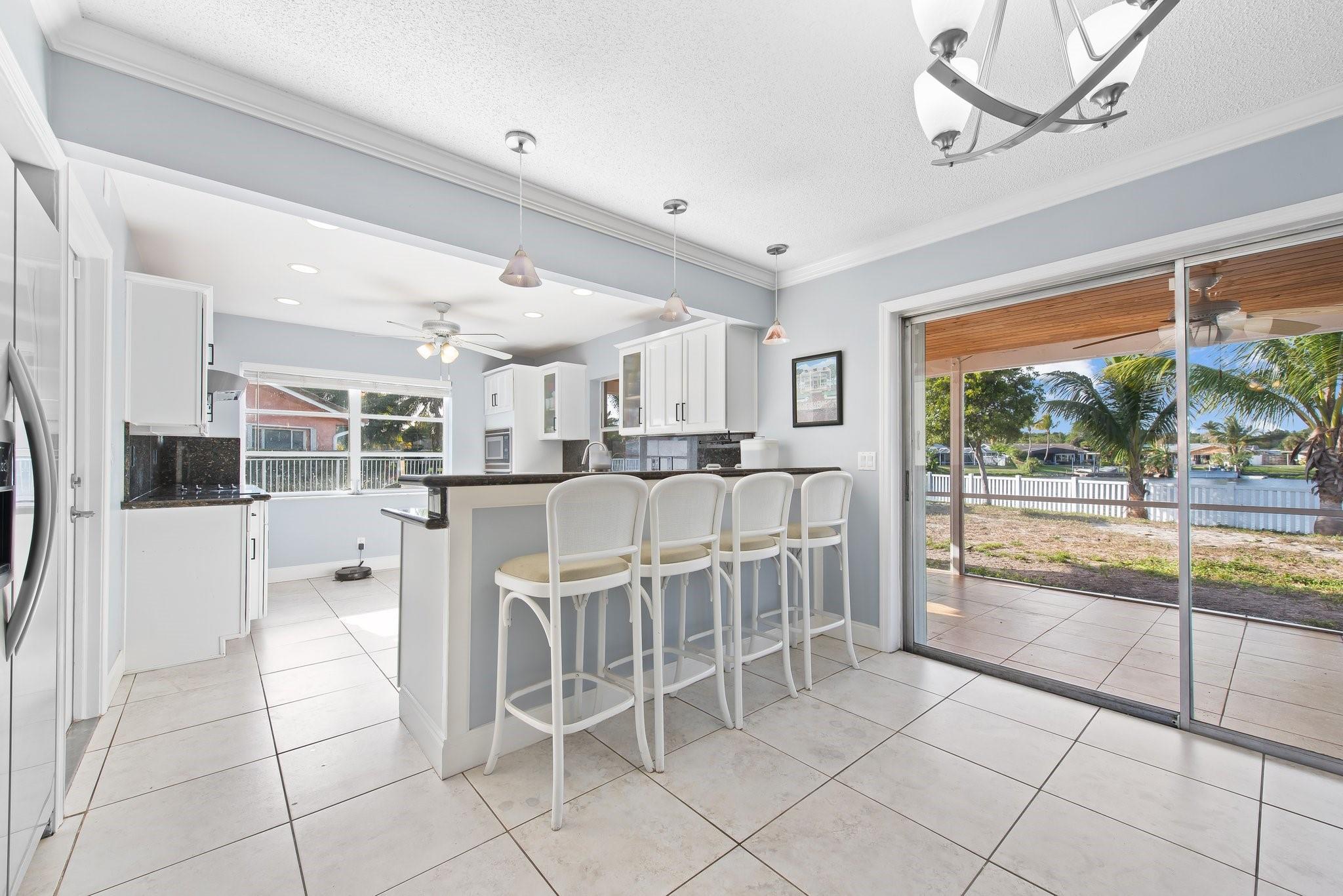 Experience breathtaking lake views from this beautifully updated 2-bed, 2-bath home with a huge yard and an amazing summer kitchen—tons of room for a pool. Bring your boat and toys—no HOA! Enjoy an updated kitchen and baths, full hurricane protection, and a well-maintained interior. The 1-car garage, partially converted for laundry, still fits a full-sized vehicle. Relax in your private oasis with endless possibilities for outdoor living. Don't miss this rare opportunity for waterfront living with ultimate freedom!