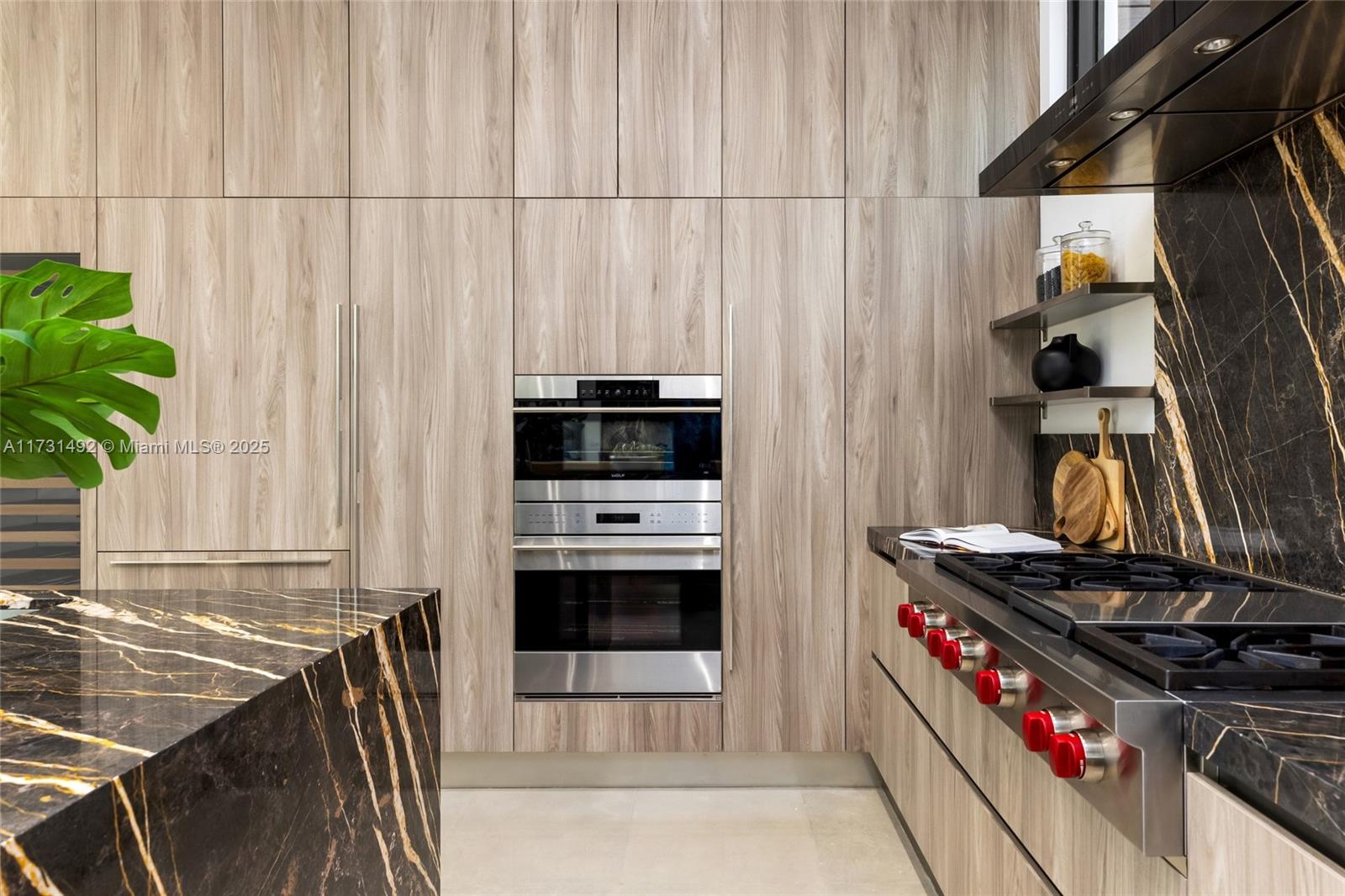 Modern and warm villa with unparalleled levels of luxury in guard gated Eastern Shores. Completed in 2017, this refined waterfront estate is a short drive to the beach and fine dining. Oversized 12,313 SF lot boasts 6 beds, 7.5 baths and spa. With over 5,000 SF under A/C, featuring stunning Italian kitchen with Subzero & Wolf appliances. Italian designer custom bathrooms, doors and closets. Exotic marble floor and stone slabs imported from Africa. Imported Brazilian wood ceiling, custom lighting with Lutron controls. Automated smart home with surround system. $120K exotic master shower with a stone that has millions years old fossils. Lavish salt water, heated pool. Custom boat parking. No fixed bridges out to the open ocean. Can be sold fully furnished and with lot next door.