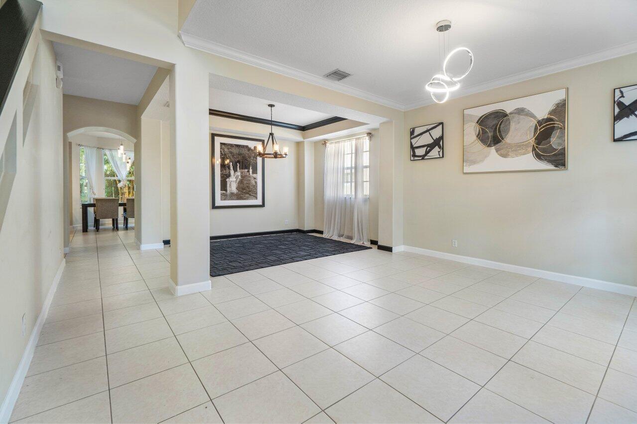 Welcome to this stunning 5-bedroom + loft, 3-bathroom, 2-car garage single-family home in the highly sought-after gated community of Hamilton Bay. Offering a perfect blend of elegance, comfort, and modern convenience, this home is ideal for families and entertainers alike. As you step inside, you're greeted by gorgeous tile flooring throughout the main living areas, setting the stage for an inviting and stylish atmosphere. The formal living room features elegant crown molding, an upgraded light fixture, and large windows that flood the space with natural light--an ideal spot for welcoming guests. The formal dining room, also adorned with crown molding and an upgraded light fixture, provides the perfect setting for family dinners and special occasions. The expansive family room boasts