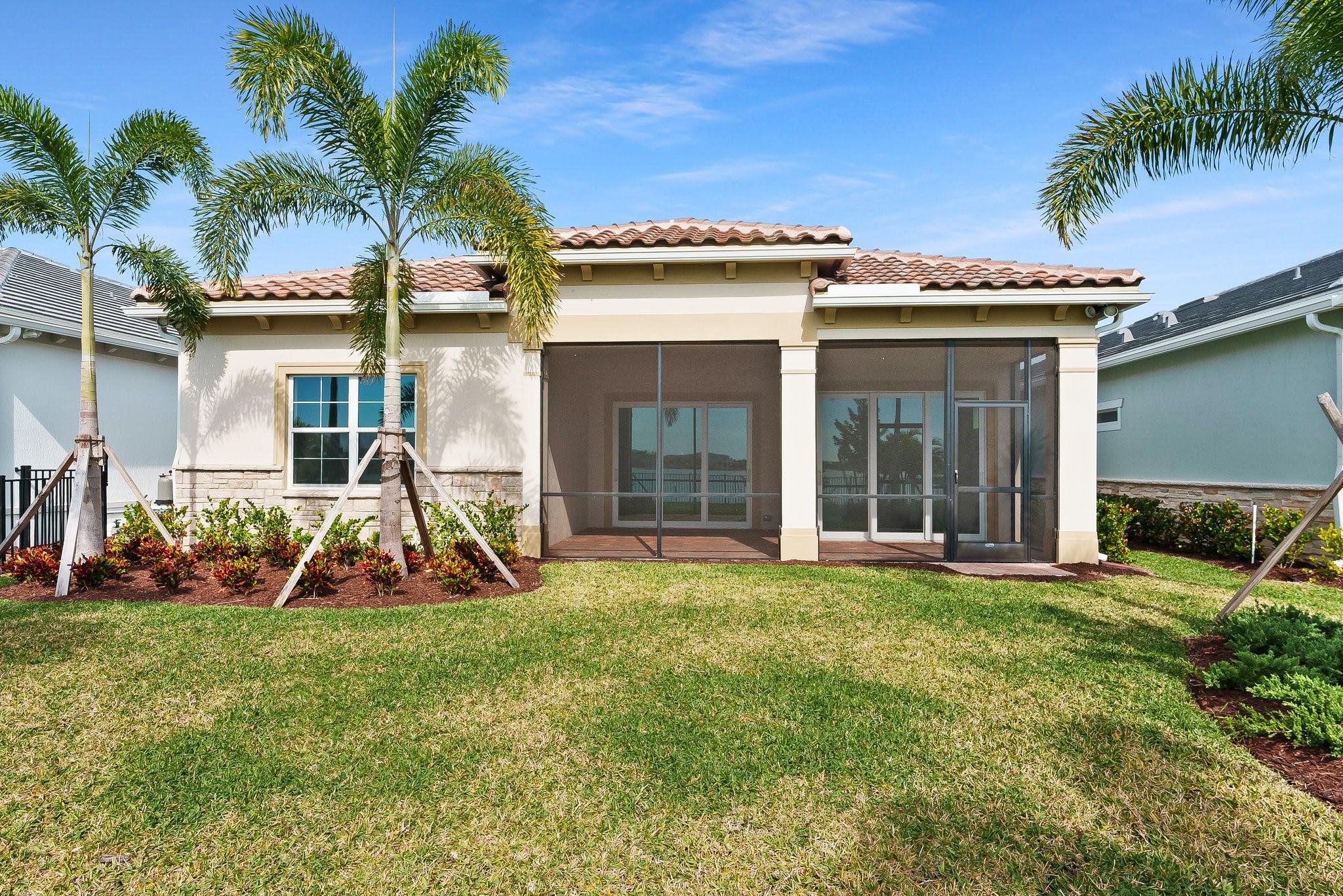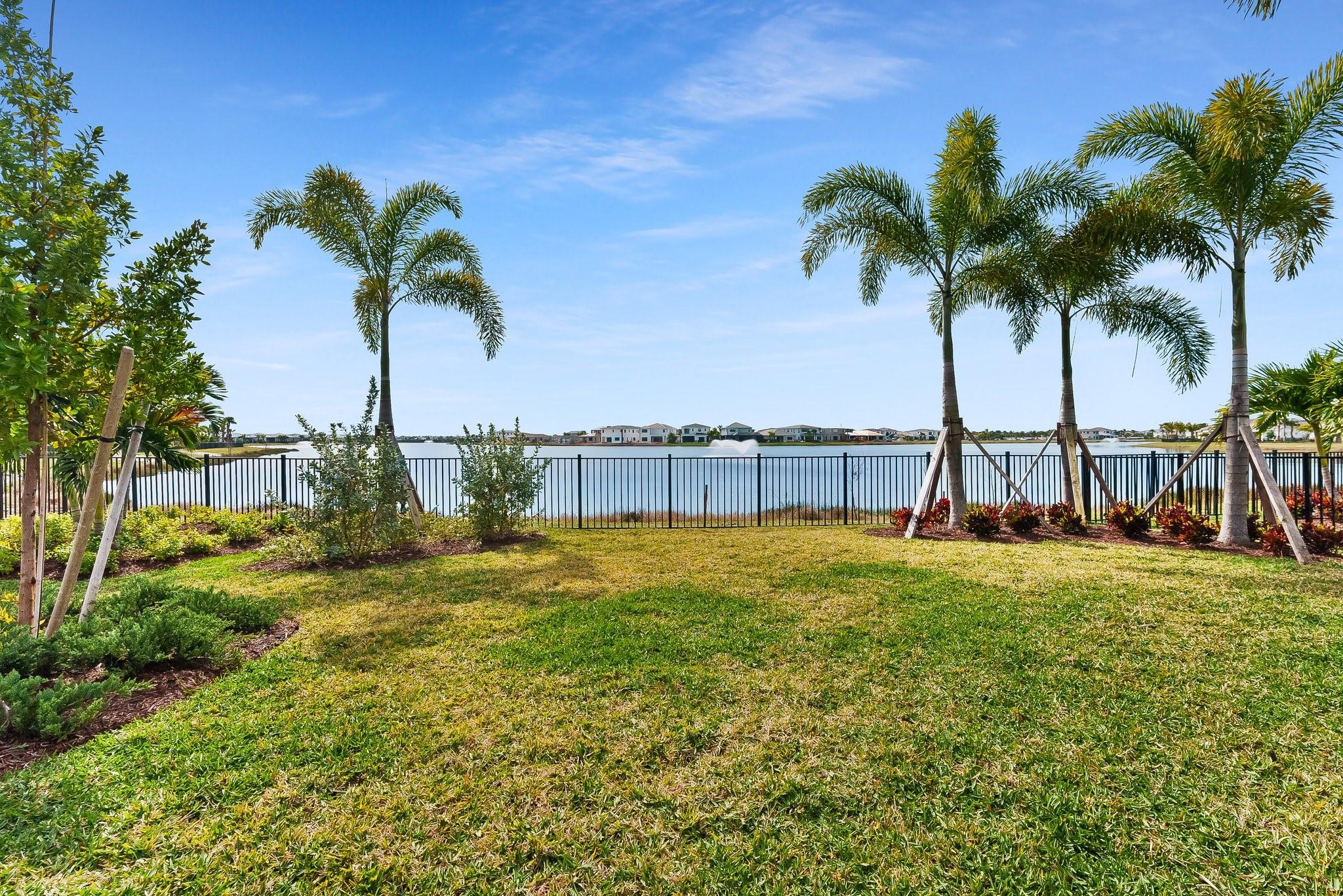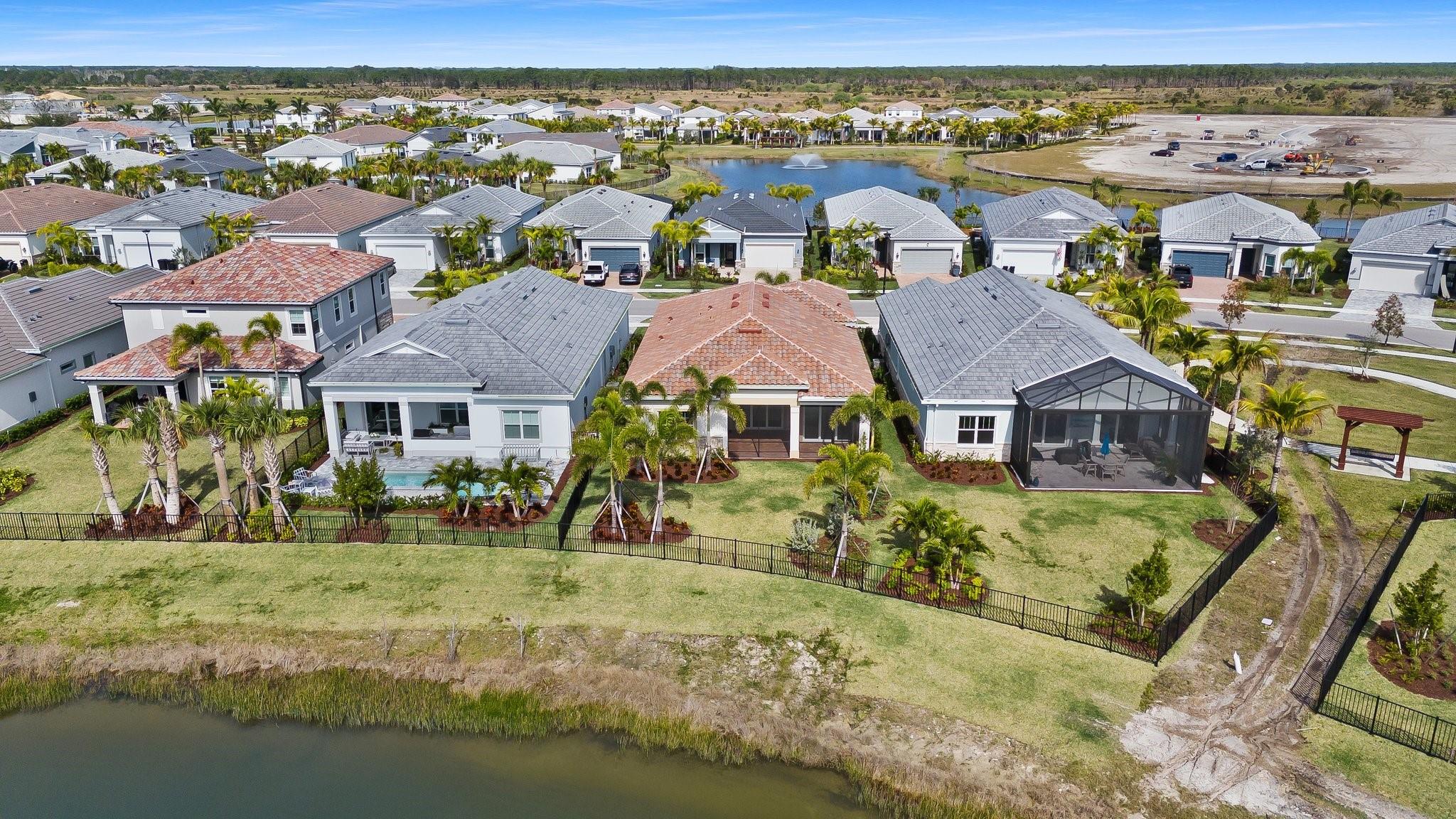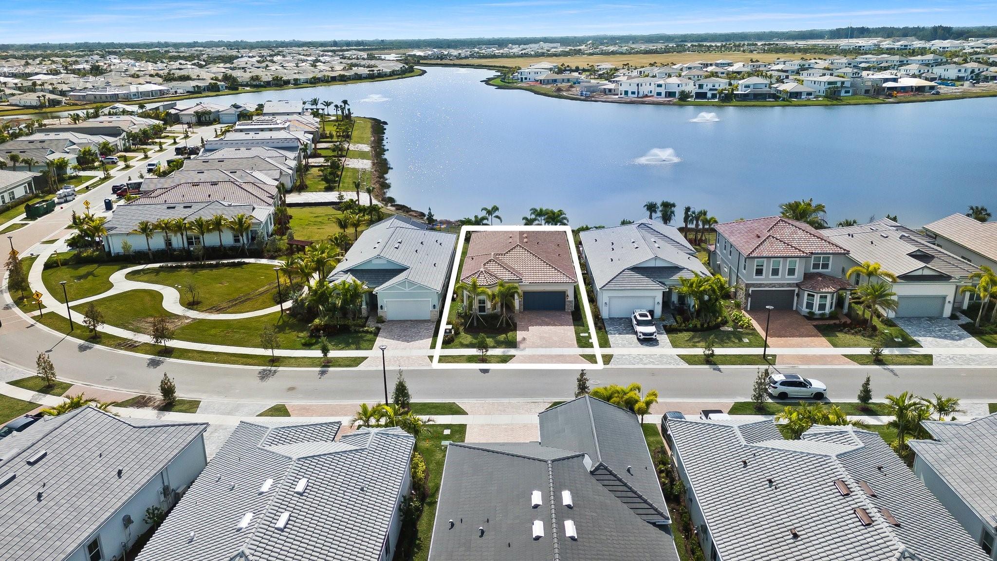 Welcome to a rarely available new construction waterfront home in the sought-after gated Avenir community of Palm Beach Gardens. Built in 2024, never lived in, this pristine residence offers 3 bedrooms, 2.5 baths, and 2,114 sq ft of thoughtfully designed living space with panoramic lake views. Enjoy bright, open-concept living with expansive ceilings and abundant natural light from south-facing windows. The elegant white shaker kitchen features quartz countertops, a large pantry, and premium finishes. Relax on your screened lanai overlooking serene water views, perfect for morning coffee or sunsets. Additional highlights include a built-in laundry room with utility sink, 2-car garage, and access to Avenir’s clubhouse, pool, and tennis courts.
