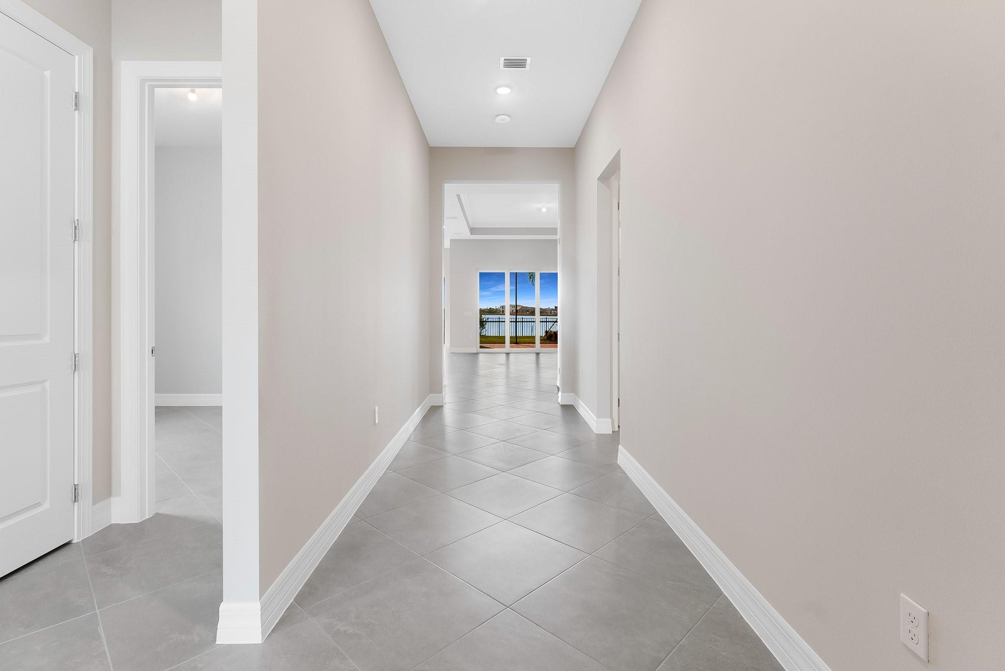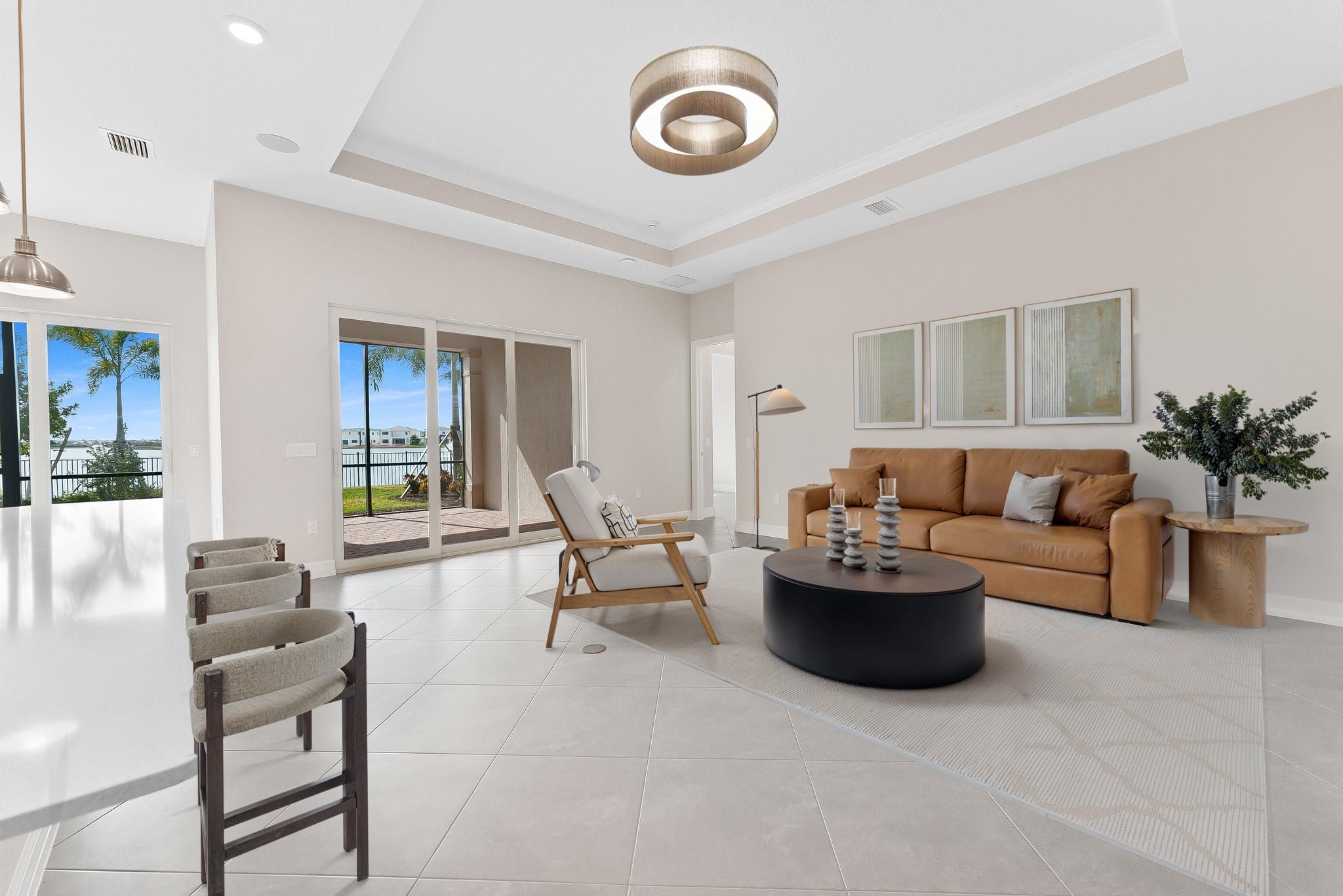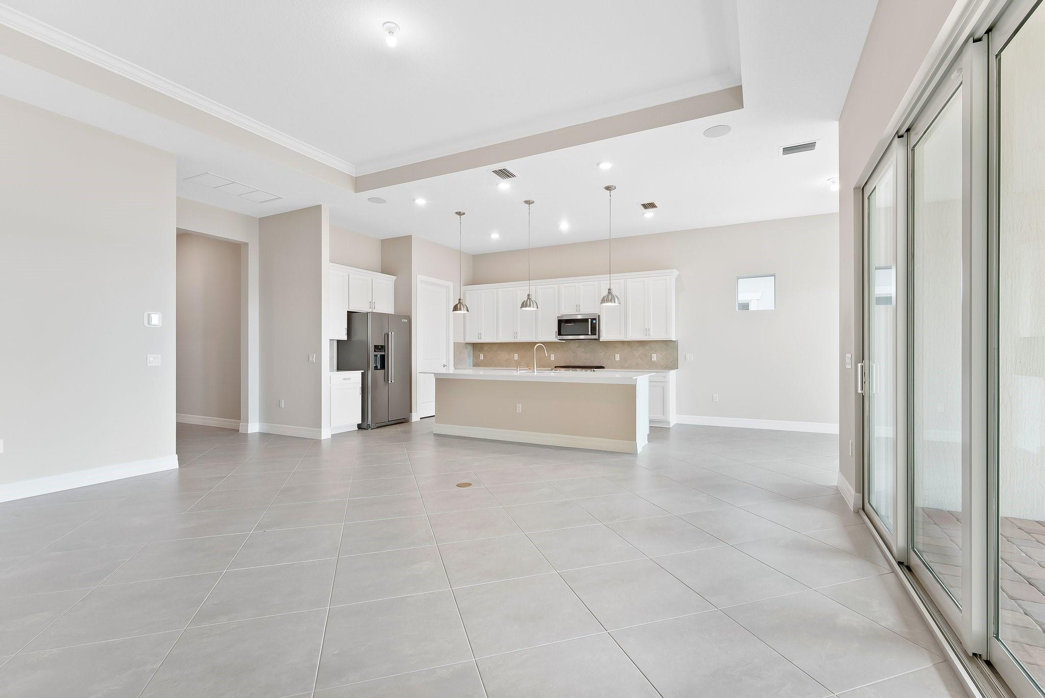 Welcome to a rarely available new construction waterfront home in the sought-after gated Avenir community of Palm Beach Gardens. Built in 2024, never lived in, this pristine residence offers 3 bedrooms, 2.5 baths, and 2,114 sq ft of thoughtfully designed living space with panoramic lake views. Enjoy bright, open-concept living with expansive ceilings and abundant natural light from south-facing windows. The elegant white shaker kitchen features quartz countertops, a large pantry, and premium finishes. Relax on your screened lanai overlooking serene water views, perfect for morning coffee or sunsets. Additional highlights include a built-in laundry room with utility sink, 2-car garage, and access to Avenir’s clubhouse, pool, and tennis courts.