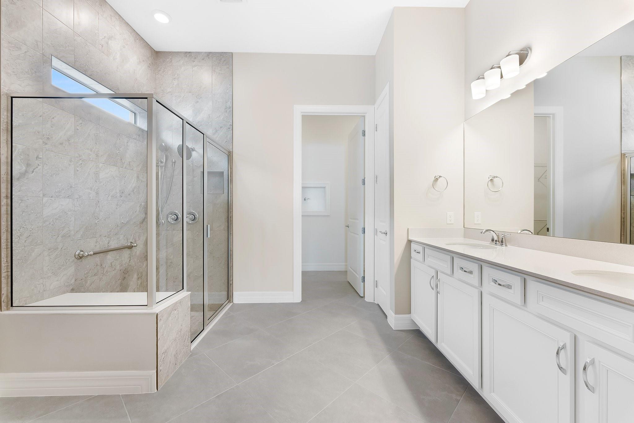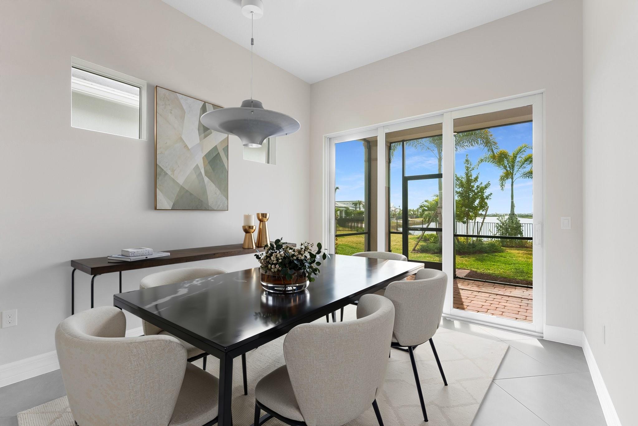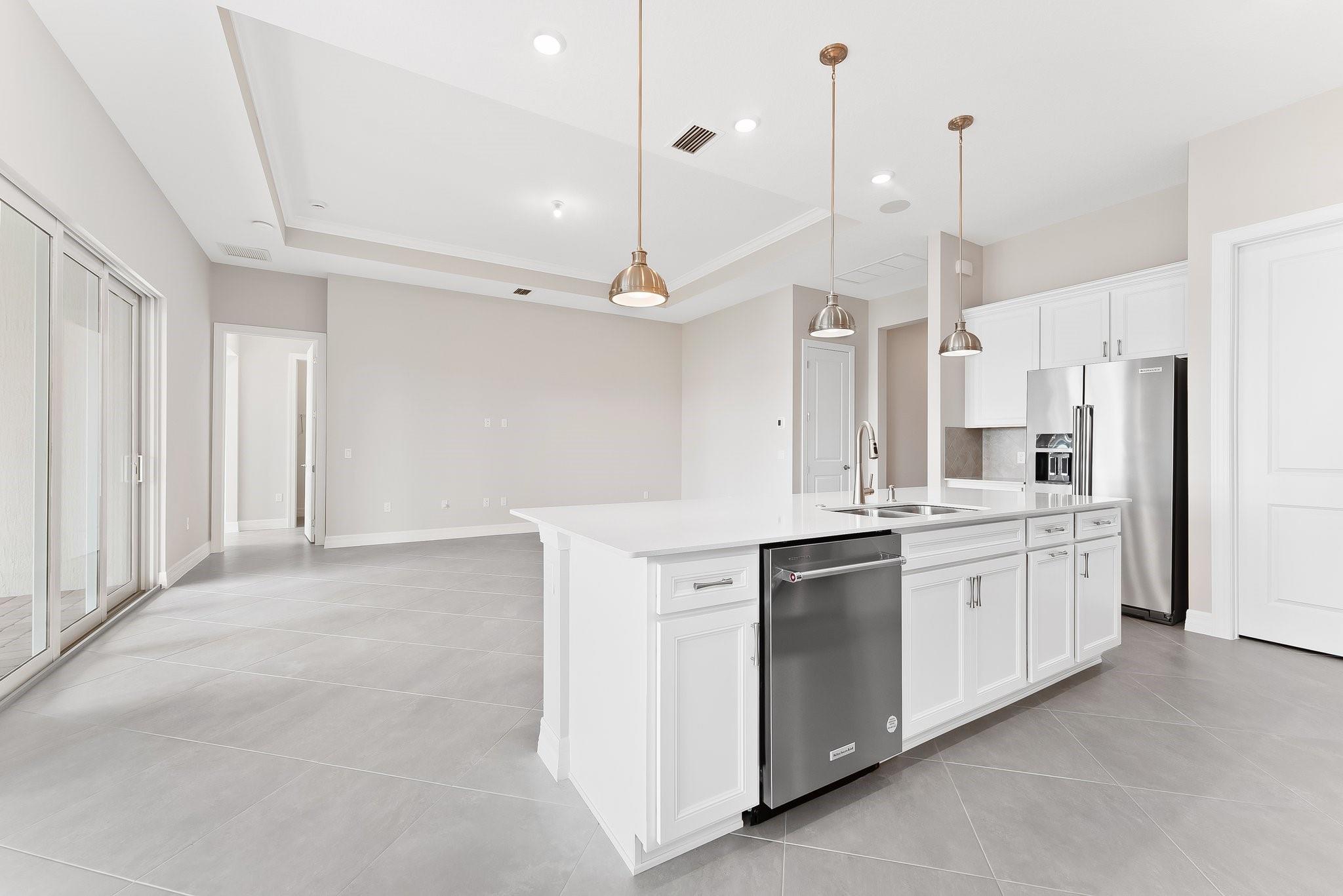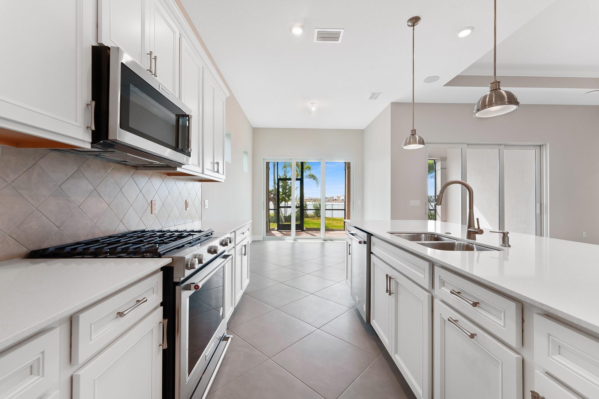 Welcome to a rarely available new construction waterfront home in the sought-after gated Avenir community of Palm Beach Gardens. Built in 2024, never lived in, this pristine residence offers 3 bedrooms, 2.5 baths, and 2,114 sq ft of thoughtfully designed living space with panoramic lake views. Enjoy bright, open-concept living with expansive ceilings and abundant natural light from south-facing windows. The elegant white shaker kitchen features quartz countertops, a large pantry, and premium finishes. Relax on your screened lanai overlooking serene water views, perfect for morning coffee or sunsets. Additional highlights include a built-in laundry room with utility sink, 2-car garage, and access to Avenir’s clubhouse, pool, and tennis courts.