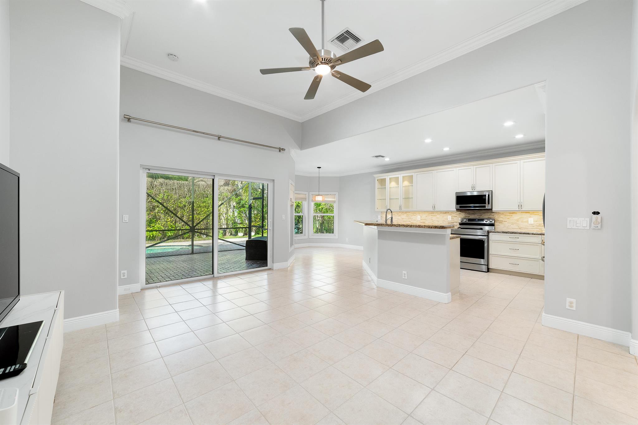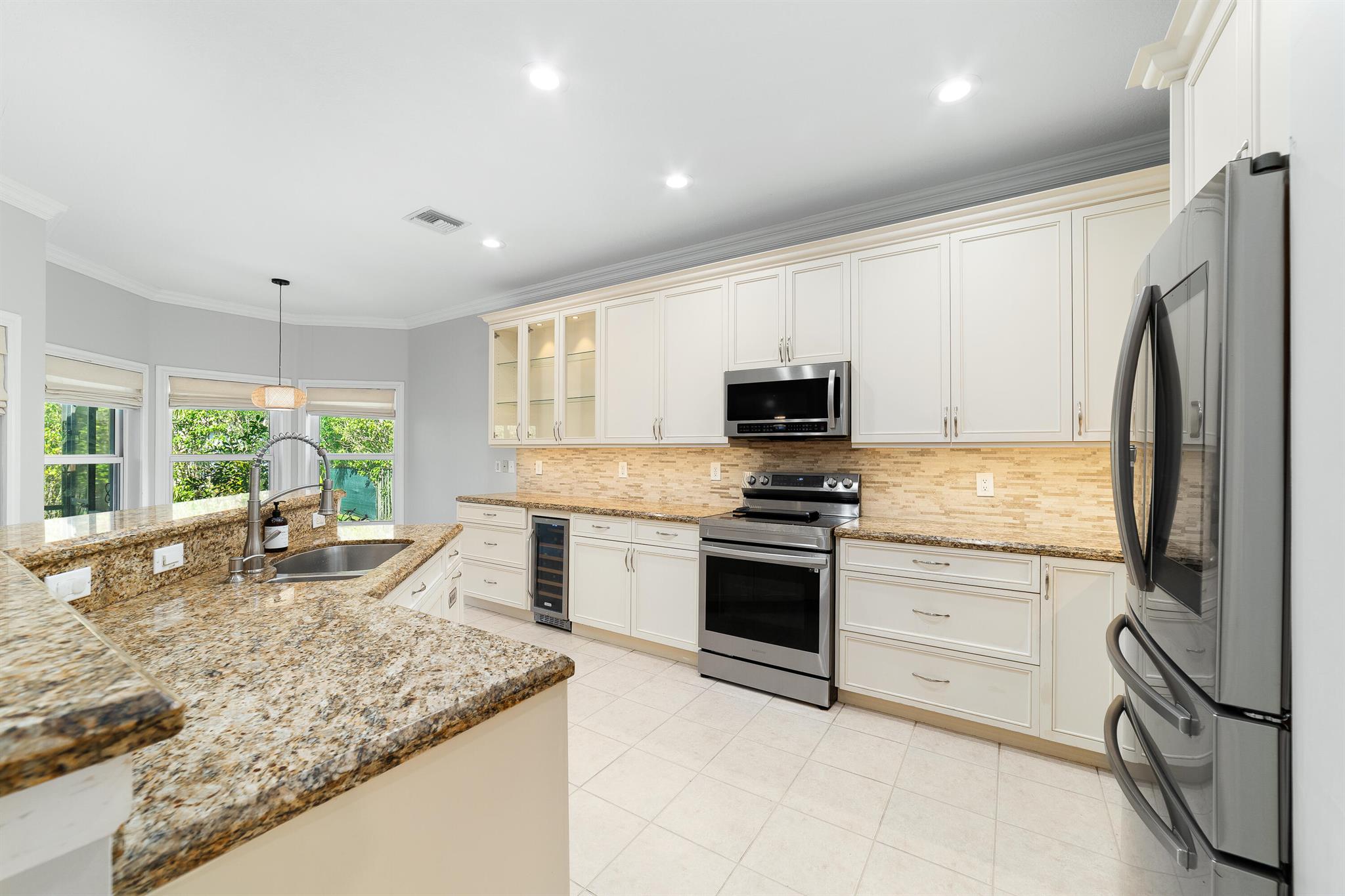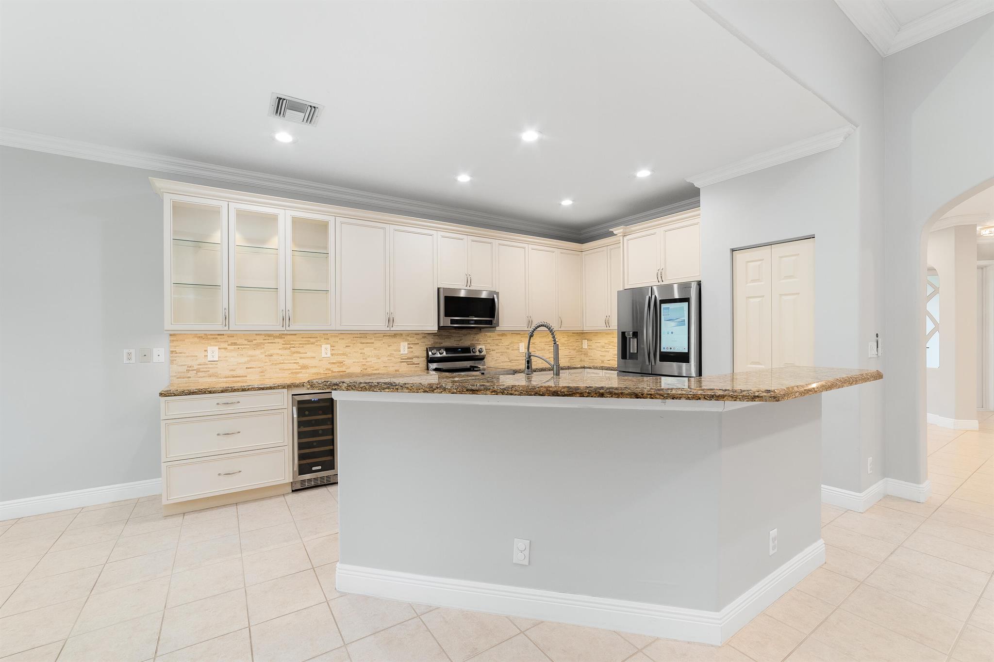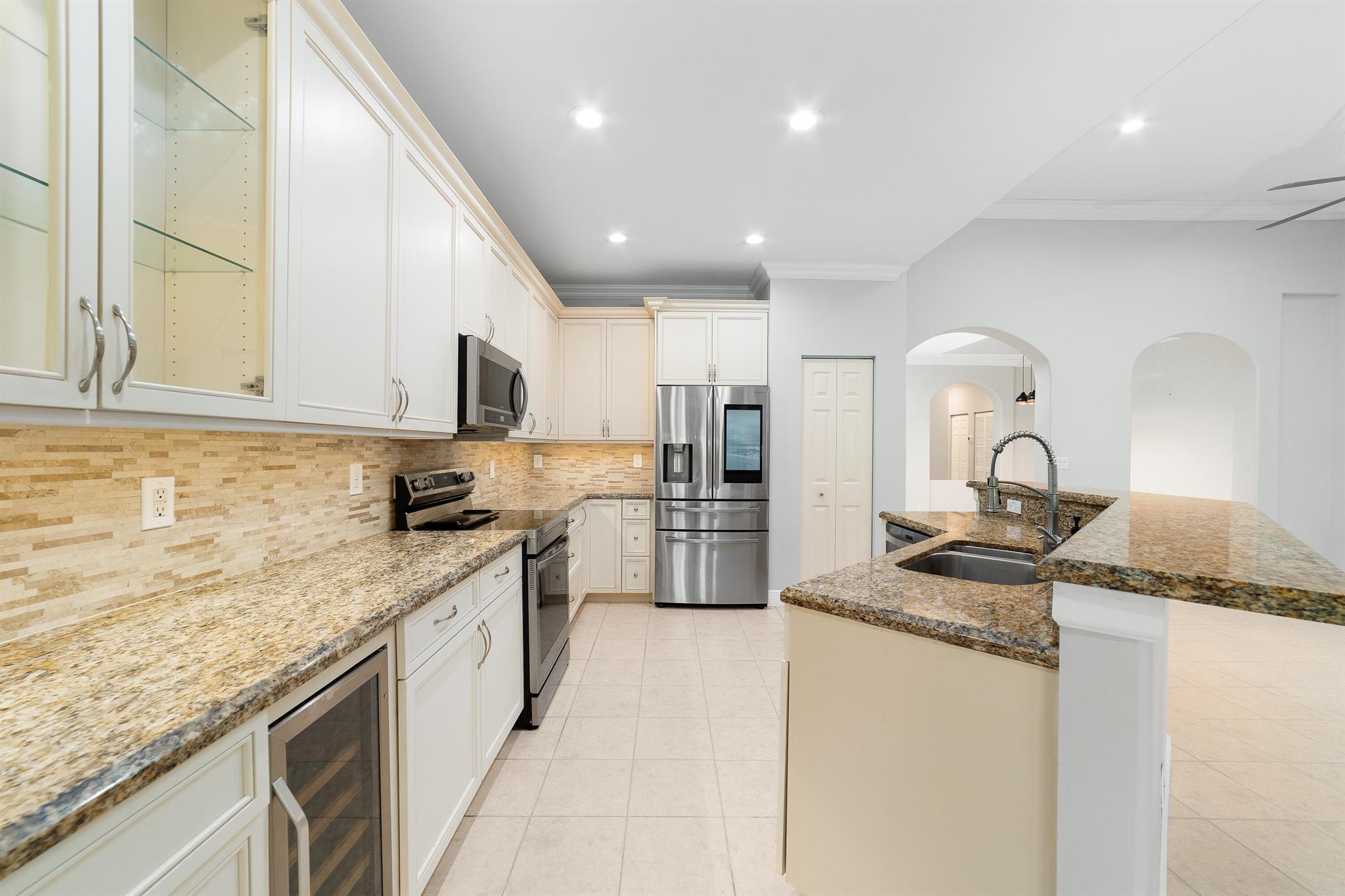 Exceptionally beautiful updated 4-bedroom, 3-bath pool home in Parkland Isles is showcasing modern living at its finest. The open floor plan seamlessly connects the kitchen, casual dining, and large formal dining spaces, perfect for entertaining. The remodeled kitchen features new soft-close cabinets, additional glass door cabinetry, under-counter lighting, a wine cooler, and stainless steel appliances. The spacious primary suite boasts custom closets and a spa-like bath with a separate tub, shower, and dual sinks. Impact windows and doors provide security and energy efficiency, while crown molding adds elegance throughout. The split-bedroom layout offers privacy, complemented by a recently remodeled bathroom.