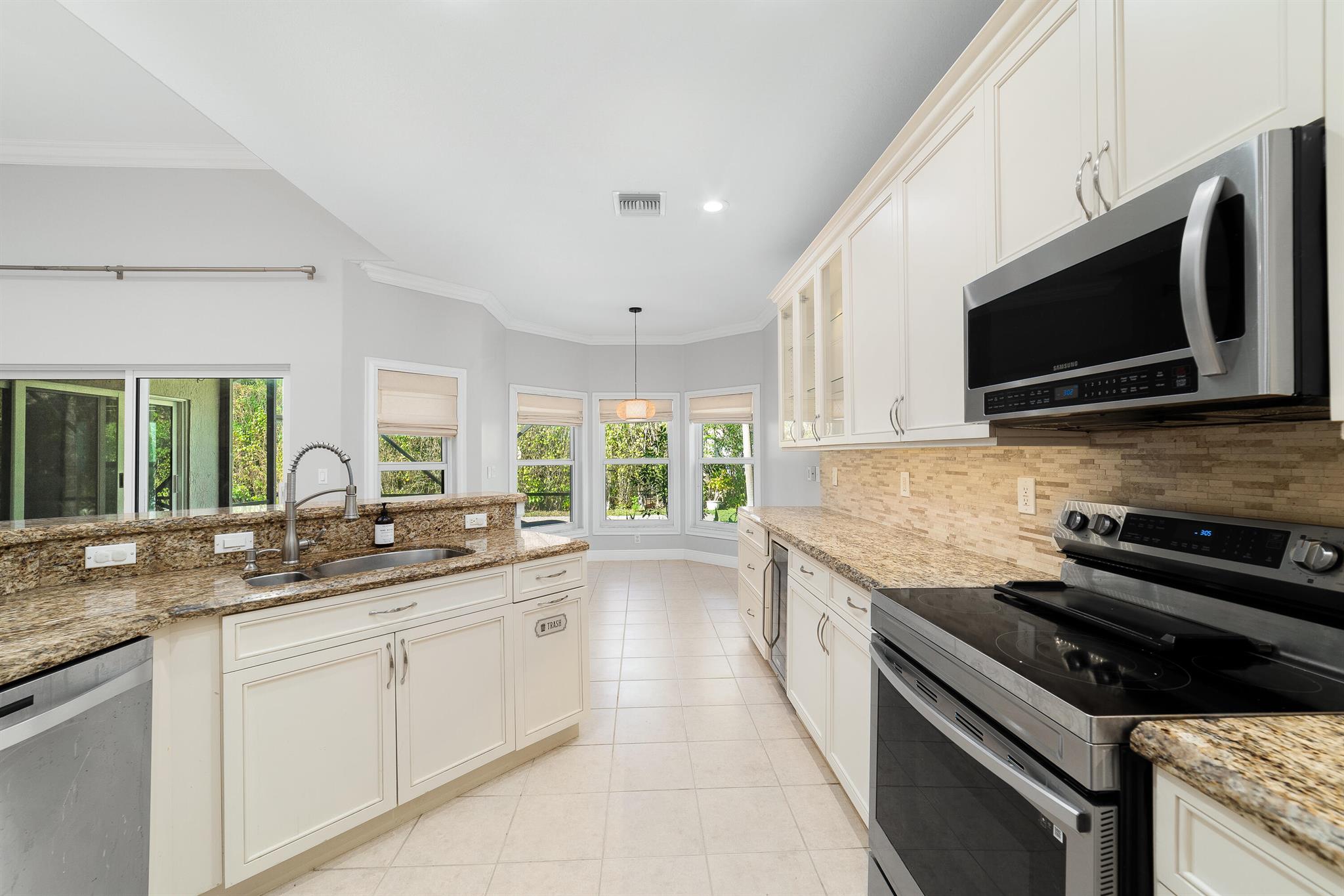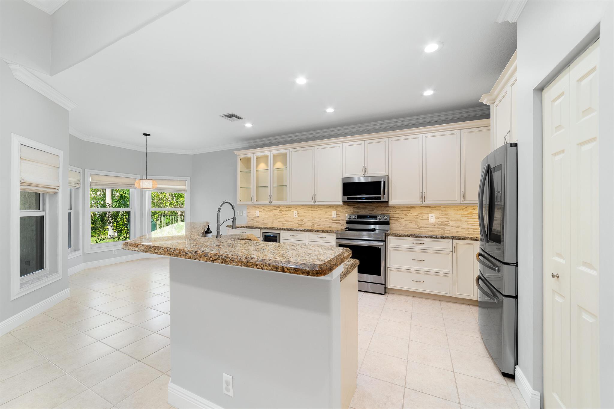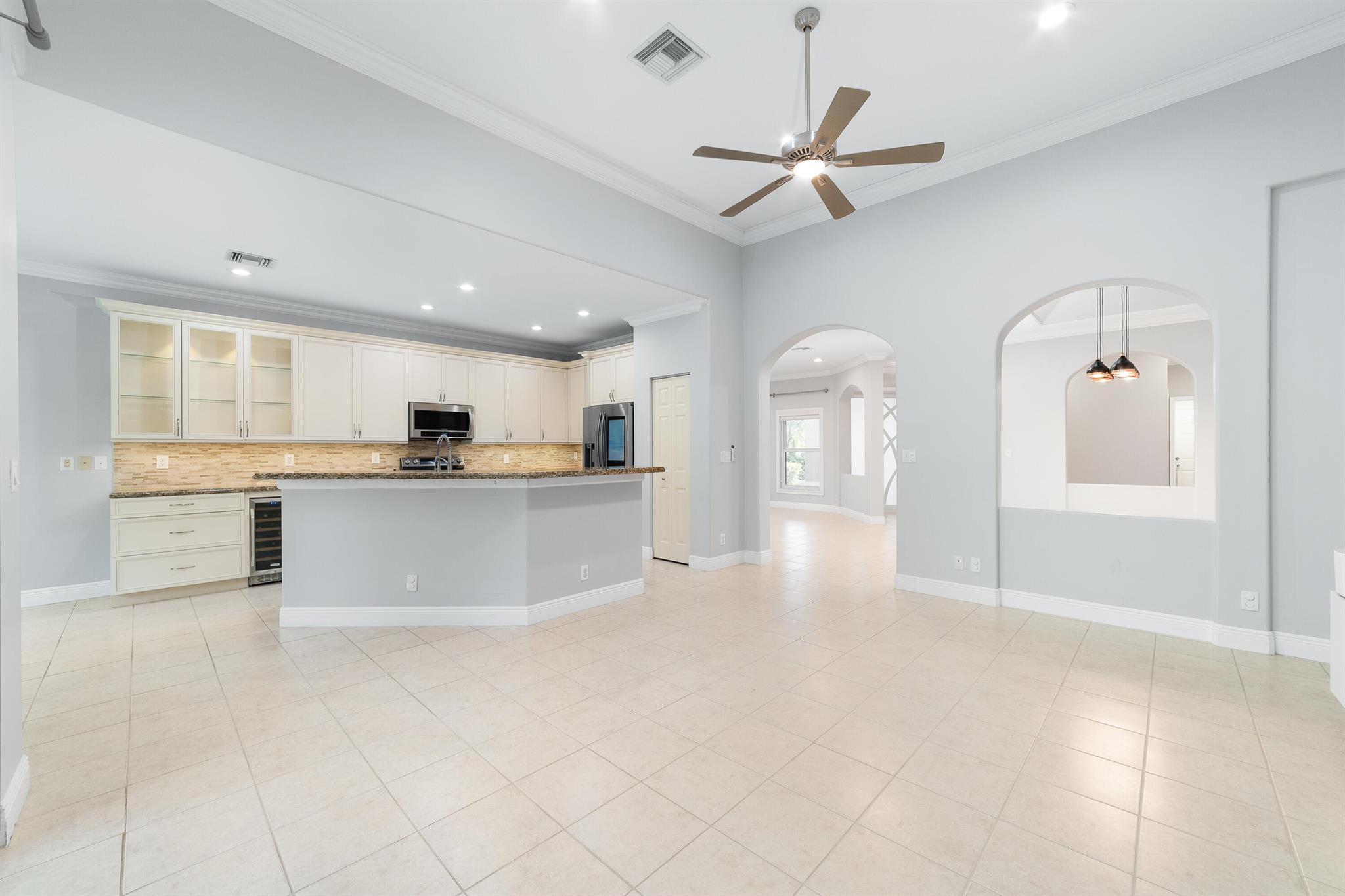 Exceptionally beautiful updated 4-bedroom, 3-bath pool home in Parkland Isles is showcasing modern living at its finest. The open floor plan seamlessly connects the kitchen, casual dining, and large formal dining spaces, perfect for entertaining. The remodeled kitchen features new soft-close cabinets, additional glass door cabinetry, under-counter lighting, a wine cooler, and stainless steel appliances. The spacious primary suite boasts custom closets and a spa-like bath with a separate tub, shower, and dual sinks. Impact windows and doors provide security and energy efficiency, while crown molding adds elegance throughout. The split-bedroom layout offers privacy, complemented by a recently remodeled bathroom.