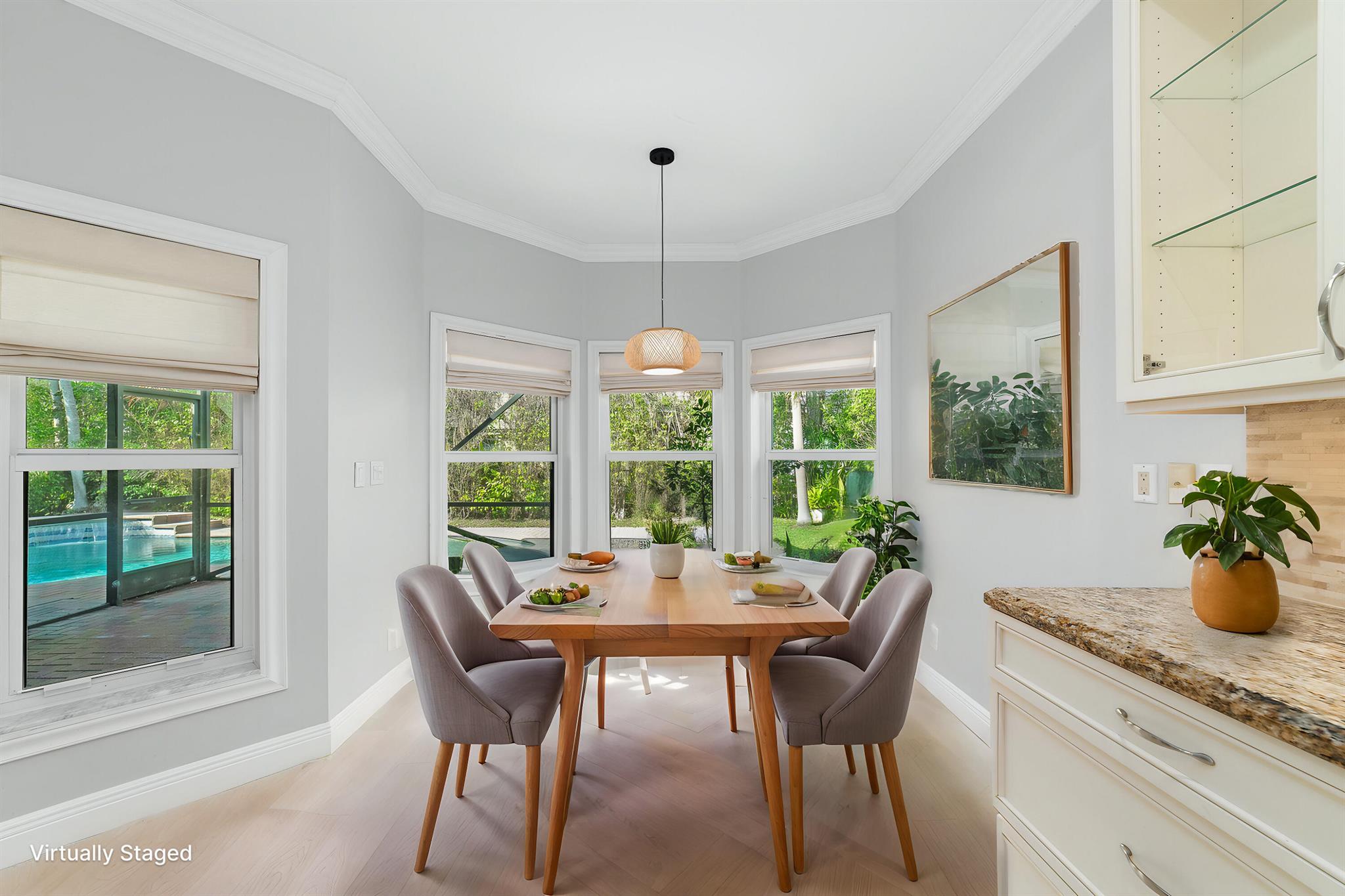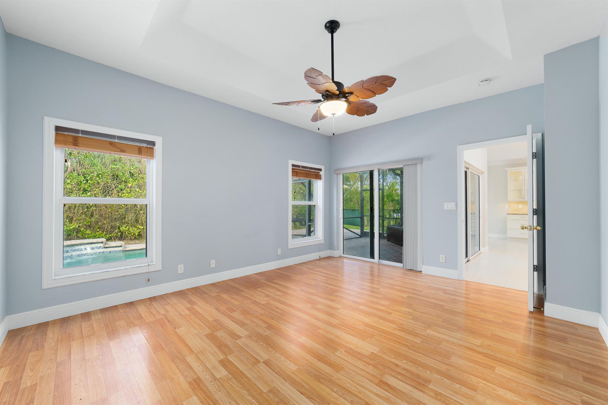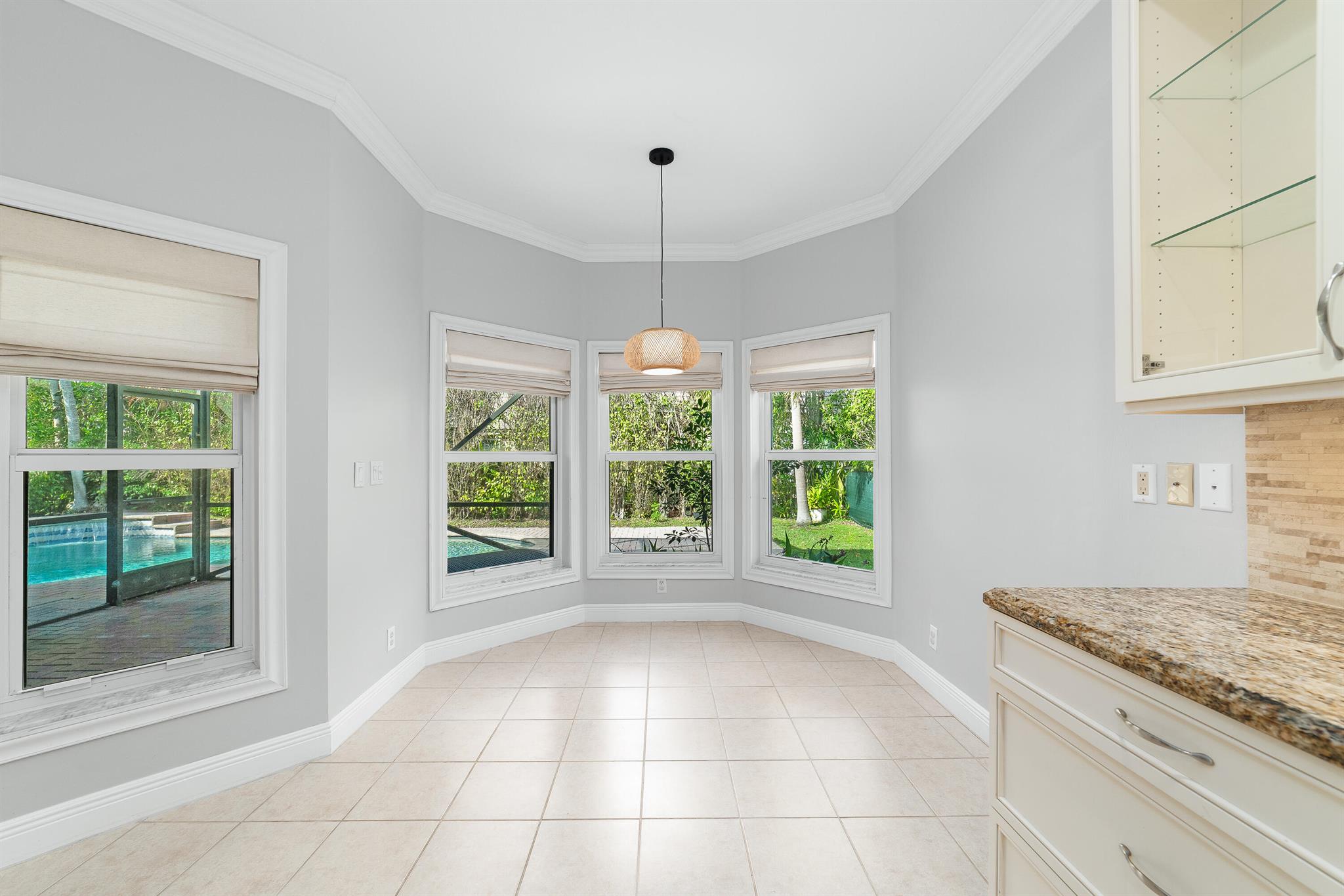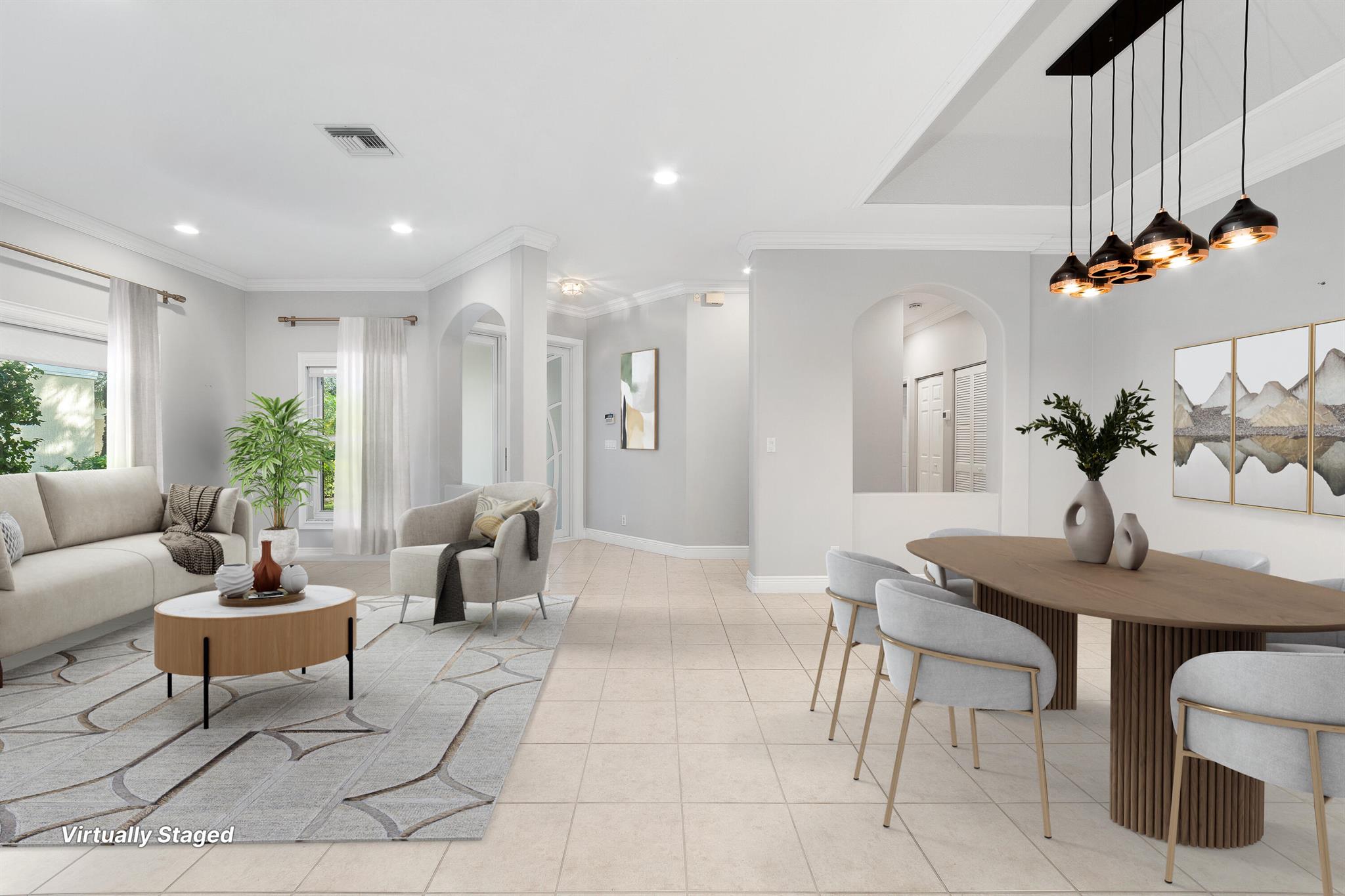 Exceptionally beautiful updated 4-bedroom, 3-bath pool home in Parkland Isles is showcasing modern living at its finest. The open floor plan seamlessly connects the kitchen, casual dining, and large formal dining spaces, perfect for entertaining. The remodeled kitchen features new soft-close cabinets, additional glass door cabinetry, under-counter lighting, a wine cooler, and stainless steel appliances. The spacious primary suite boasts custom closets and a spa-like bath with a separate tub, shower, and dual sinks. Impact windows and doors provide security and energy efficiency, while crown molding adds elegance throughout. The split-bedroom layout offers privacy, complemented by a recently remodeled bathroom.
