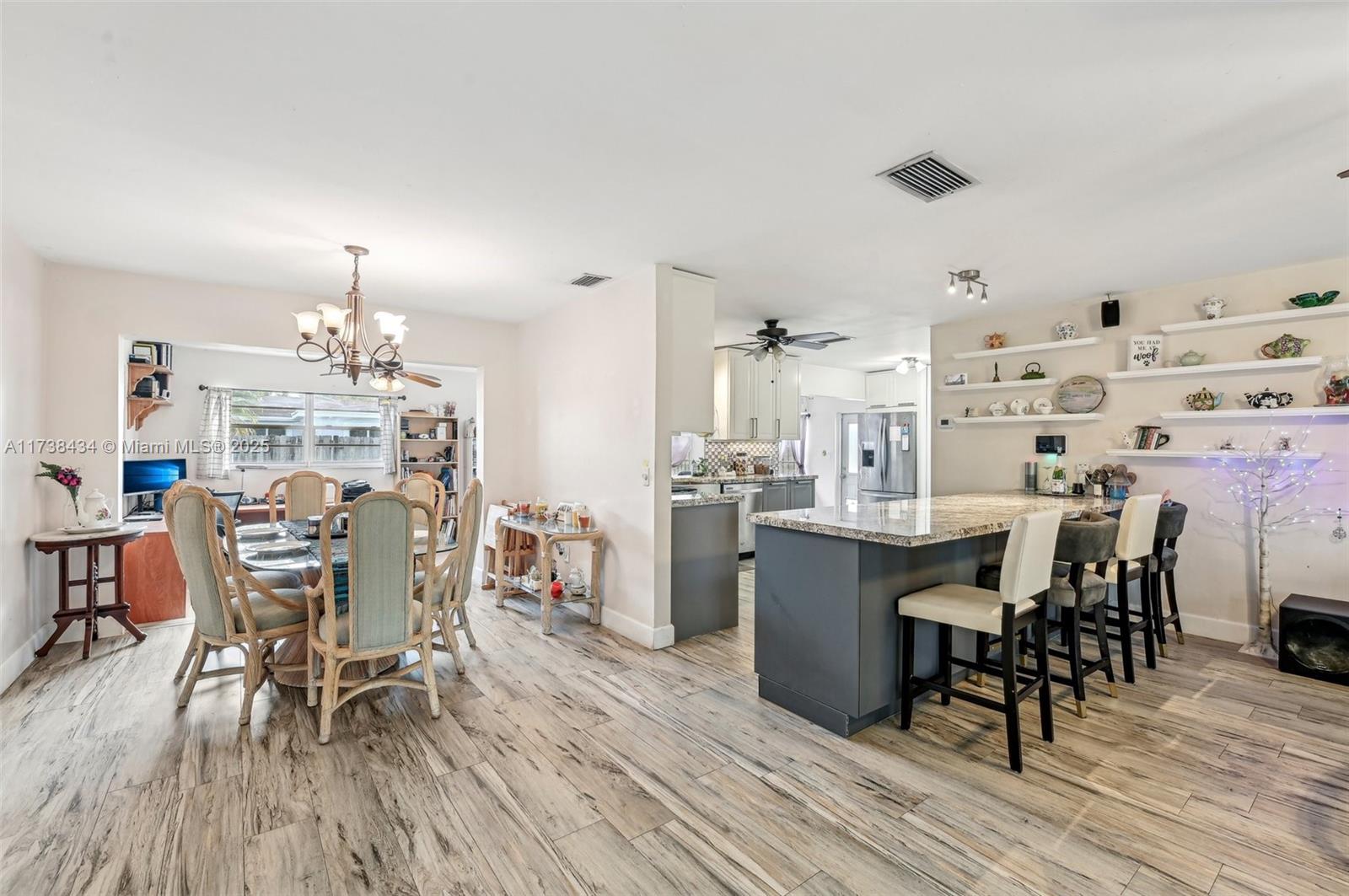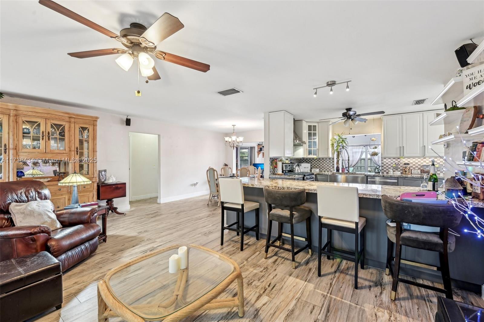 Charming 2-bedroom, 2-bathroom home located in desirable Sunrise Golf Village neighborhood. The property features a spacious layout with large Family room, Living room and separate Formal dining area. A Modern kitchen with granite countertops, Huge Island Counter and stainless steel appliances, perfect for cooking and entertaining. A Huge enclosed Sunroom provides ample extra living space. A spacious covered patio & enclosed backyard with room for a pool provides outdoor entertaining and endless possibilities. Additional features include Roof replaced 2022, Solar panels, Impact windows & doors for energy efficiency. A 1-car garage with Laundry & storage space plus additional driveway parking. No HOA! Close to Highways, shopping & amenities. Great value! don’t miss out on making it yours!