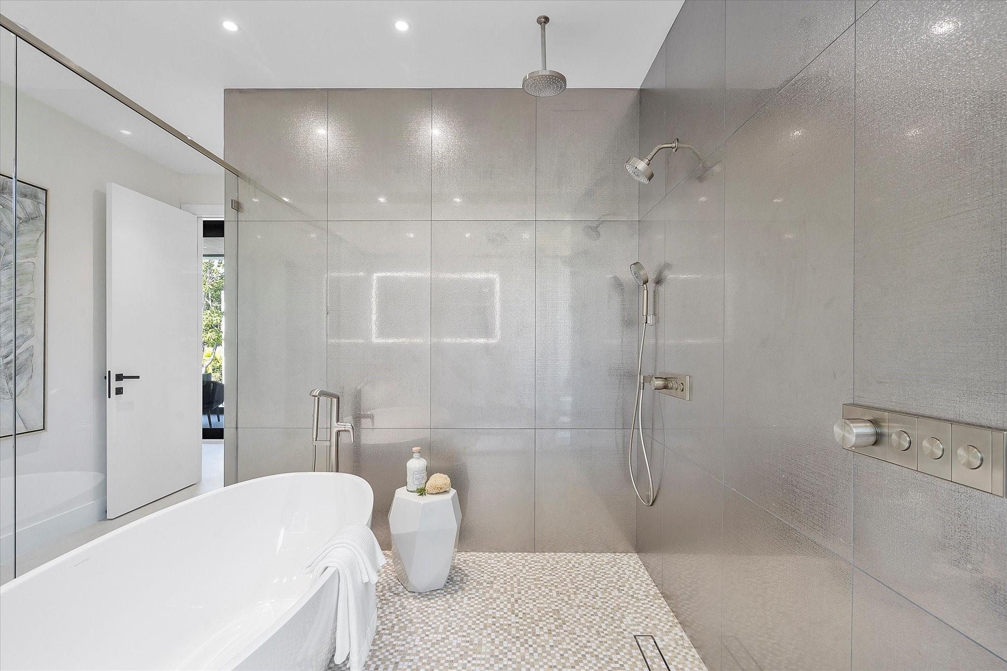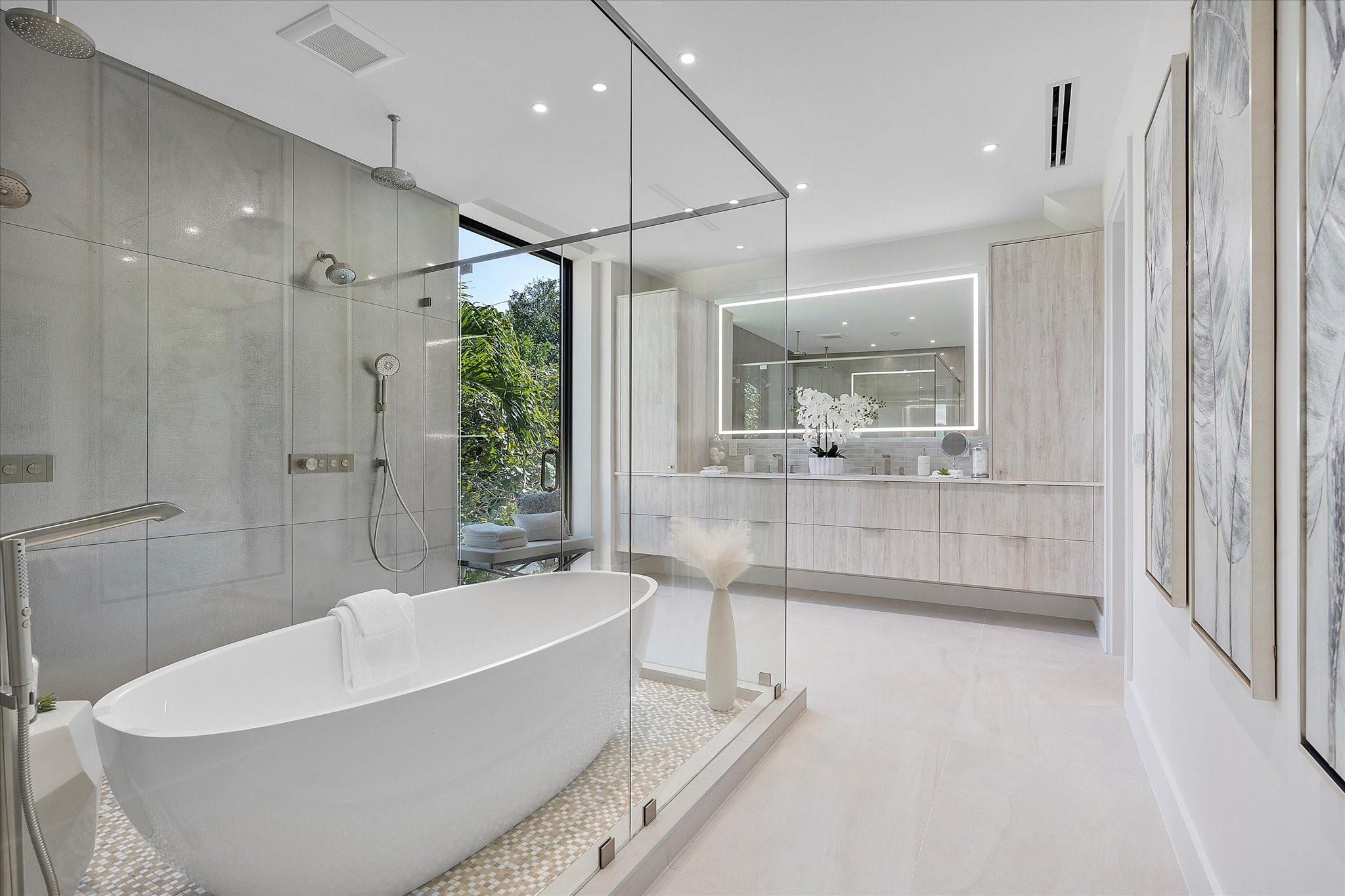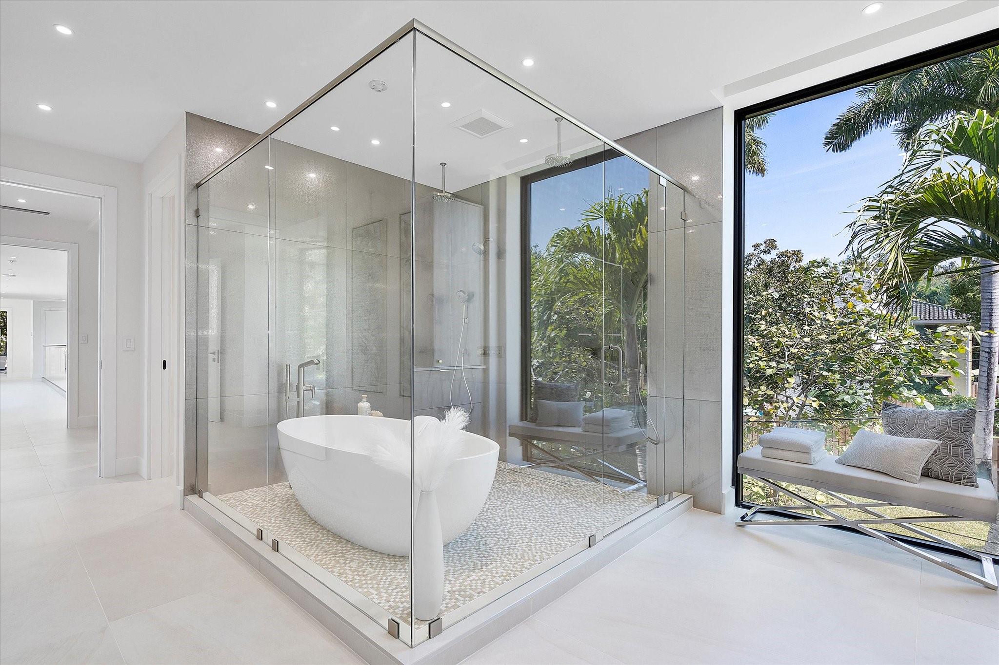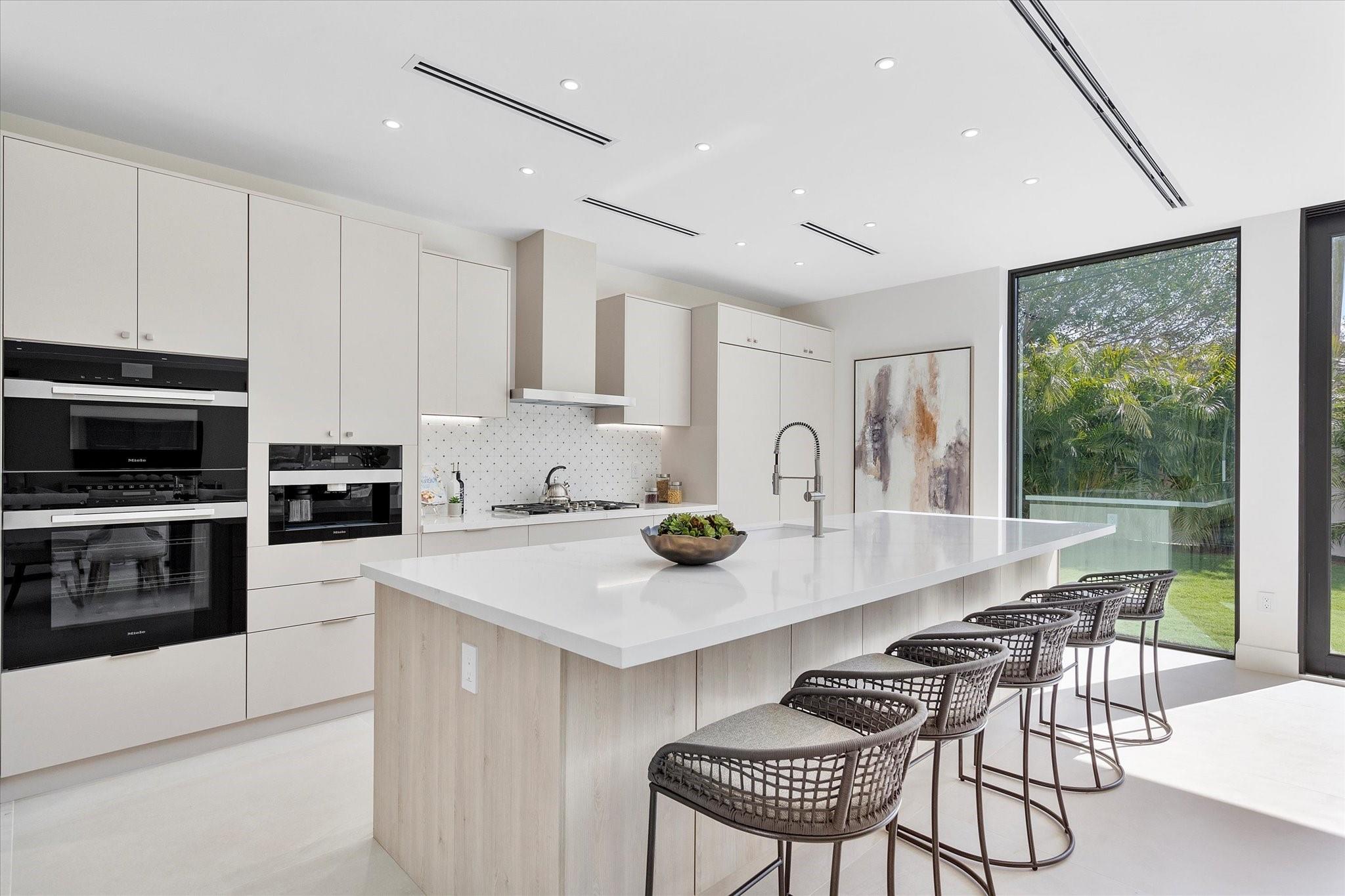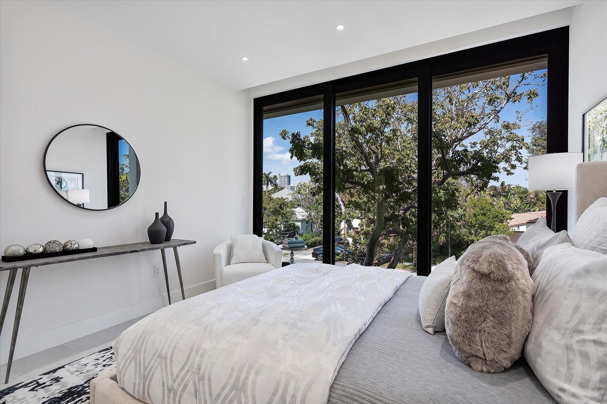 New construction architectural masterpiece in Rio Vista, Fort Lauderdale, where modern design meets luxury living. This 4,700 SF home showcases an innovative layout with a central pool as its focal point, surrounded by vast glass walls that blend indoor and outdoor spaces. The open floor plan is highlighted by a gourmet kitchen with high-end appliances and full smart home features including a built-in speaker system. Five bedrooms and five bathrooms provide ample space for family and guests. Unique elements include an accent wall along the atrium below the floating custom walnut staircase. Built with a solid concrete roof, this home offers exceptional durability and style. The expansive backyard is perfect for Florida's outdoor lifestyle. Just minutes from the beach and the vibrant LasOlas