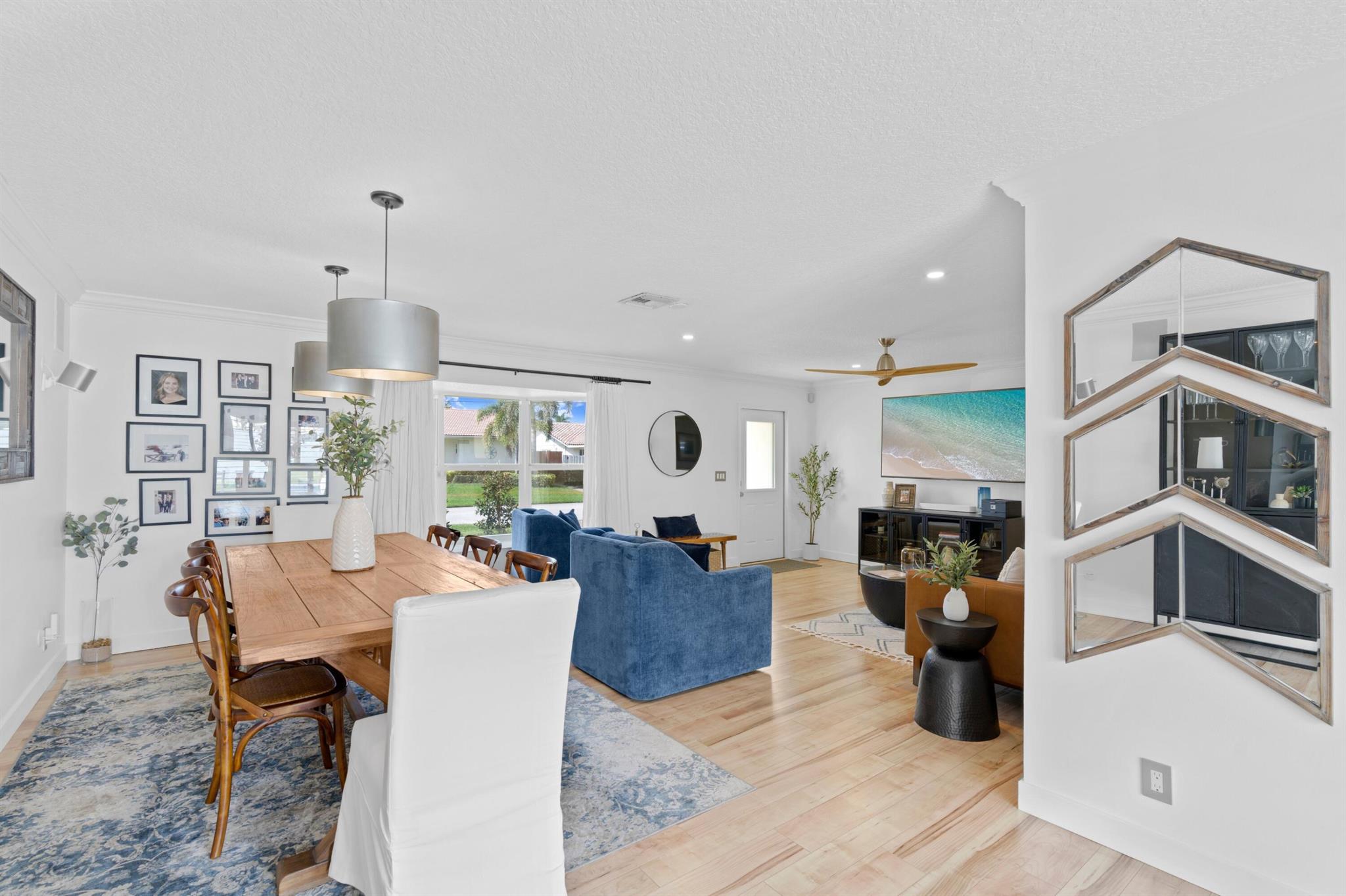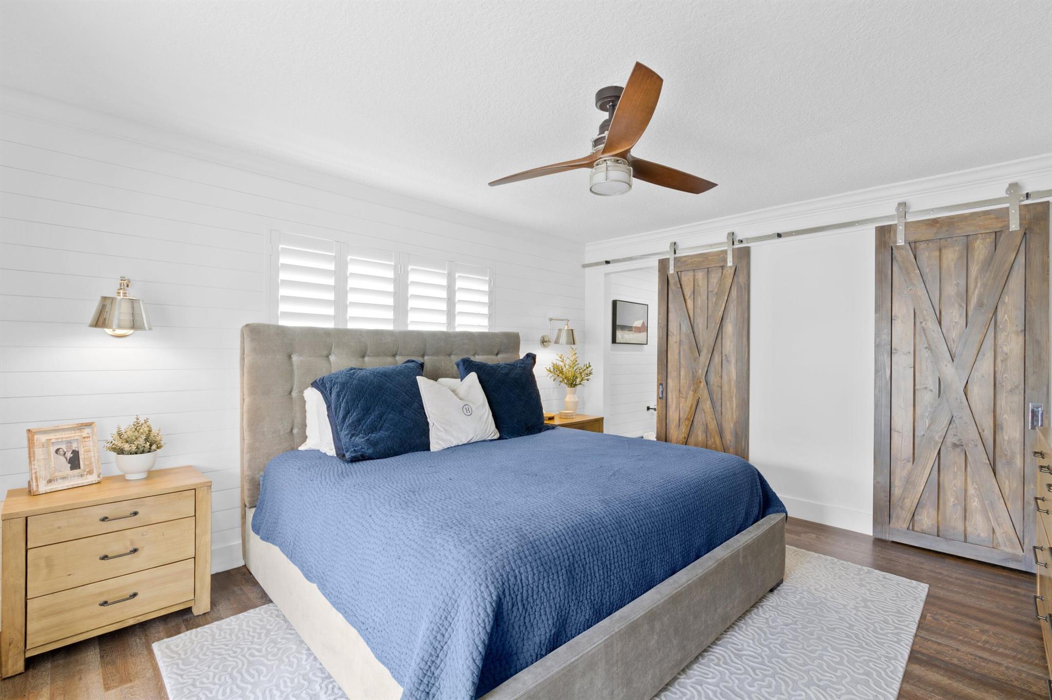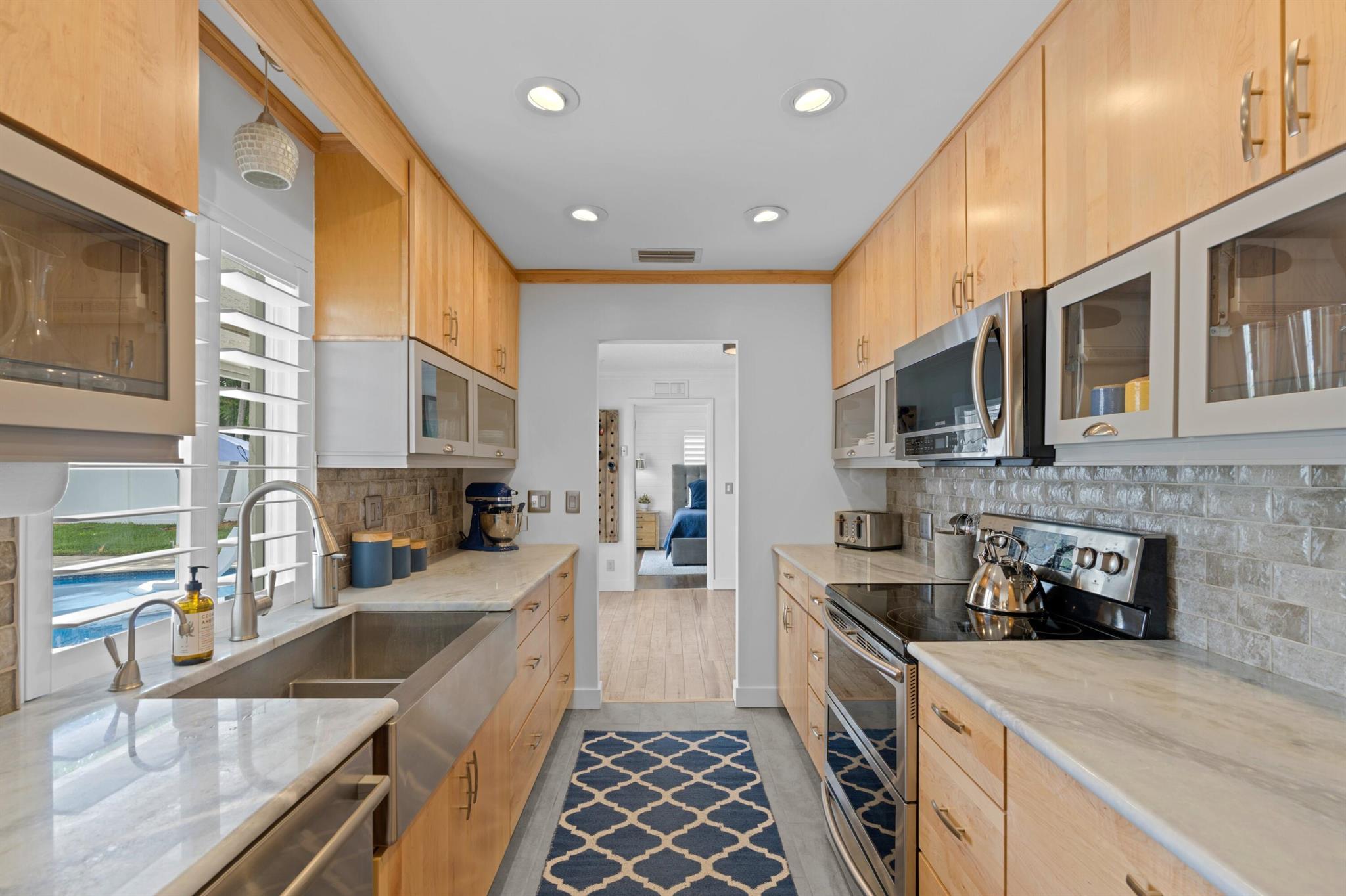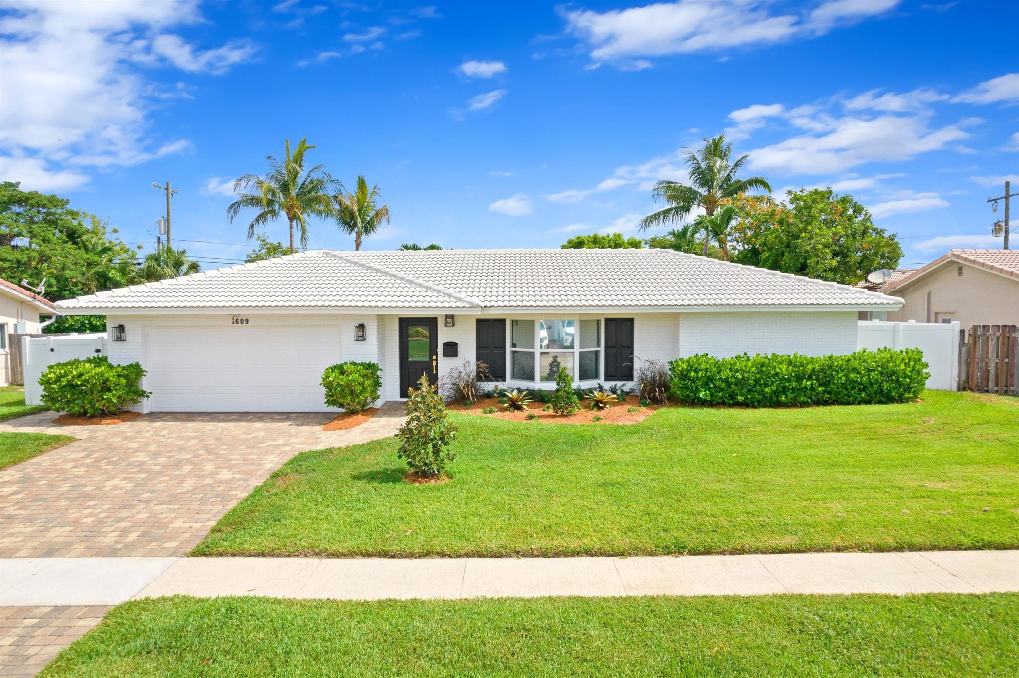 Gorgeous turnkey pool home in east Boca Raton with a completely fenced in yard on a large lot. This 3/2 home has been updated with a new primary bedroom and bathroom, custom barn doors, a walk-in closet with custom built-ins and all new flooring. The primary bath was completely renovated with double sinks, quartz countertops, shiplap and separate walk-in shower with a custom quartz built-in bench. The interior has been freshly painted with new moldings, baseboards, new ceiling fans throughout, all new a/c ducts (2023), new hardware throughout, new flooring in all the bedrooms and a new full-size washer/dryer inside. Water softener system (2021) and new AC (2019). The updated large extended eat-in kitchen with granite countertops, an oversized island, custom maple cabinetry with