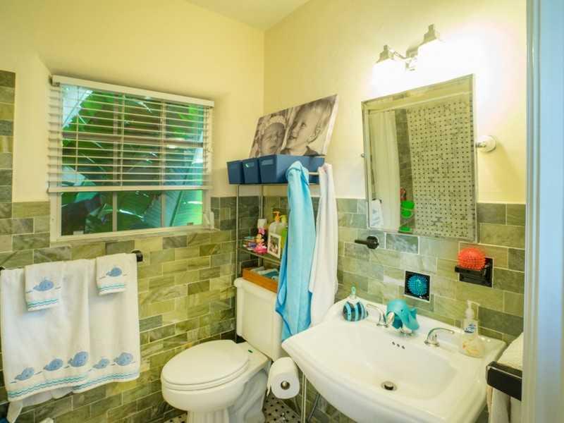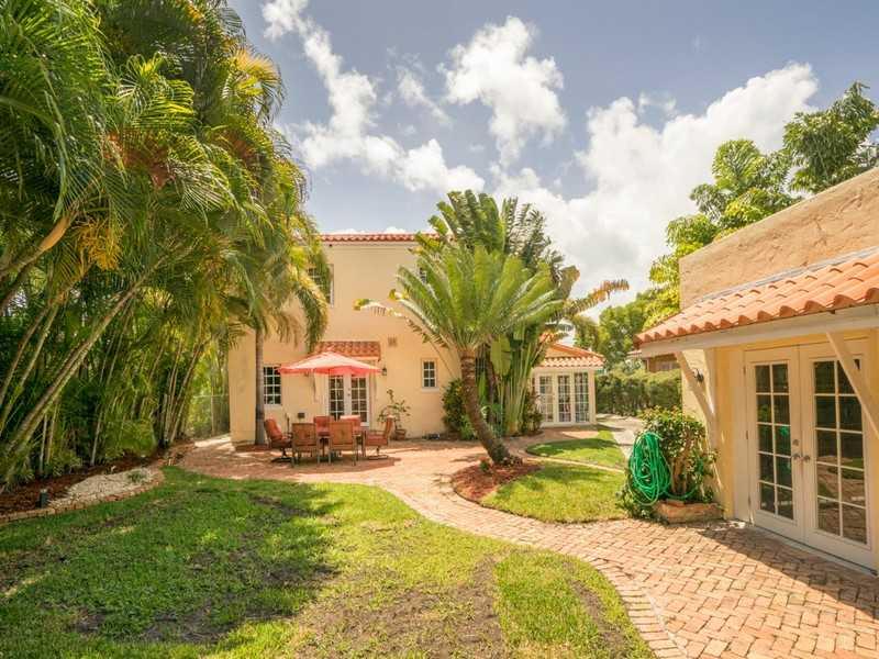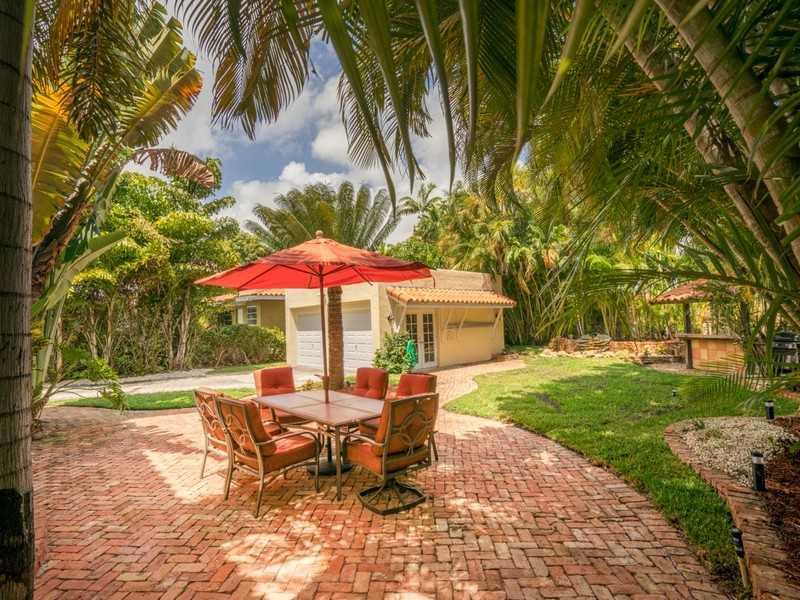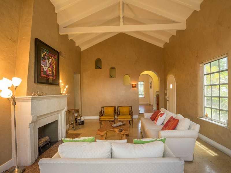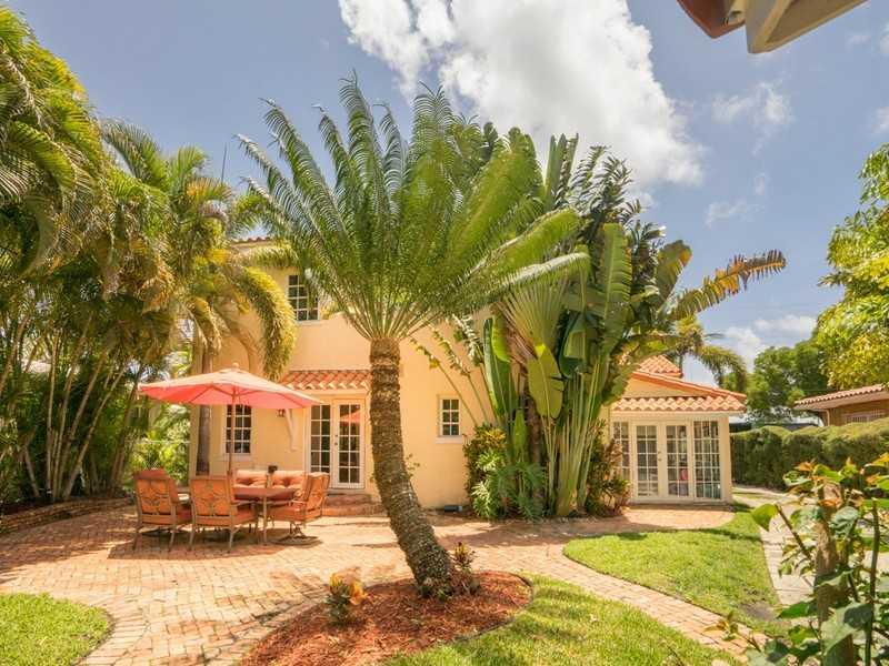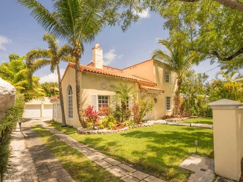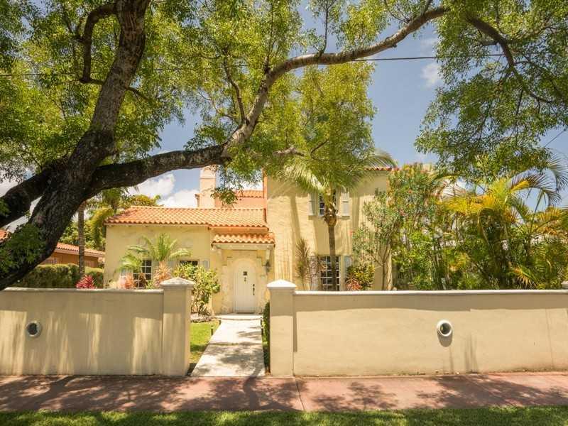 Walk to everything: golf, shopping & Lincoln Rd. Renovated w/the best! This 3BD/5BA has hardwood flrs & marble thru-out, cathedral ceiling, fireplace in living rm, gourmet kitchen w/professional gas range, luxury BAs w/Jacuzzi in master, Chicago bricks, l ushly landscaped & room for pool. 3BD/3BA upstairs, 2BA down w/ 2-car garage, patio, pond, & Tiki. 4th BD converted to library w/French doors & lots of light.