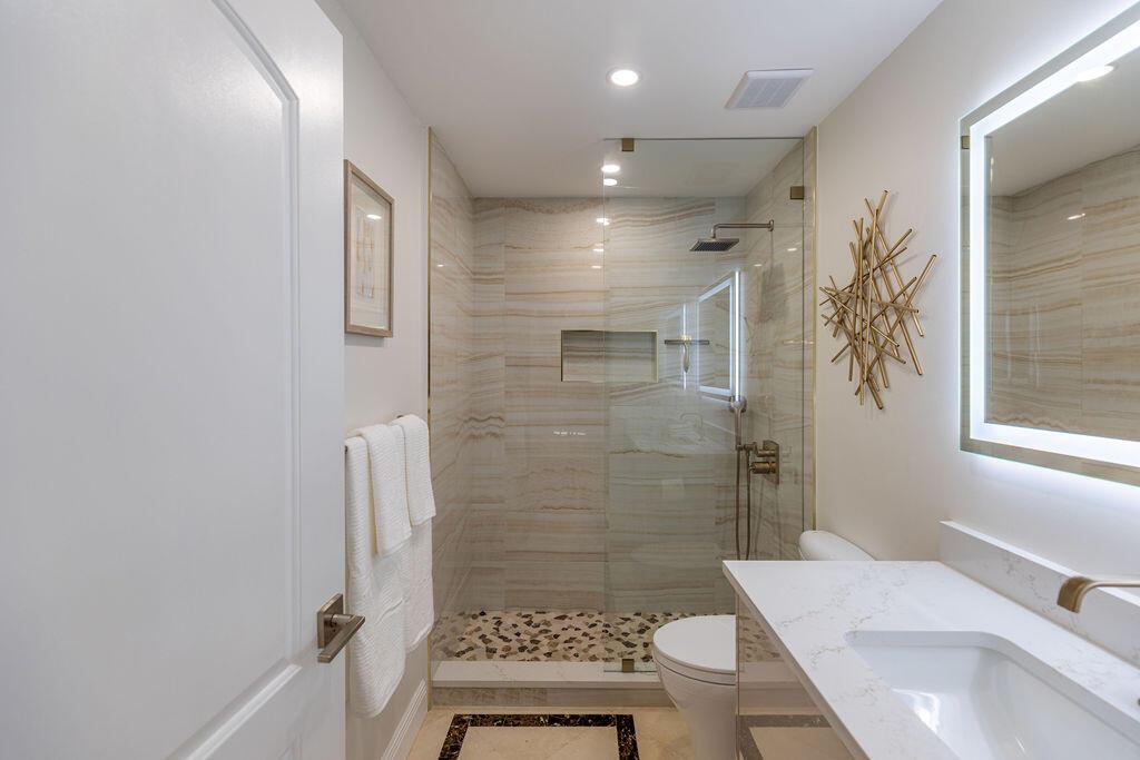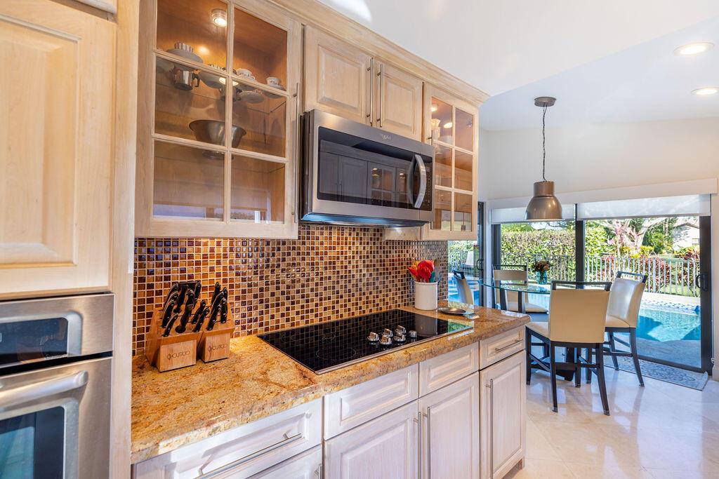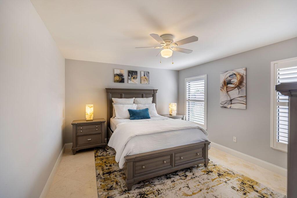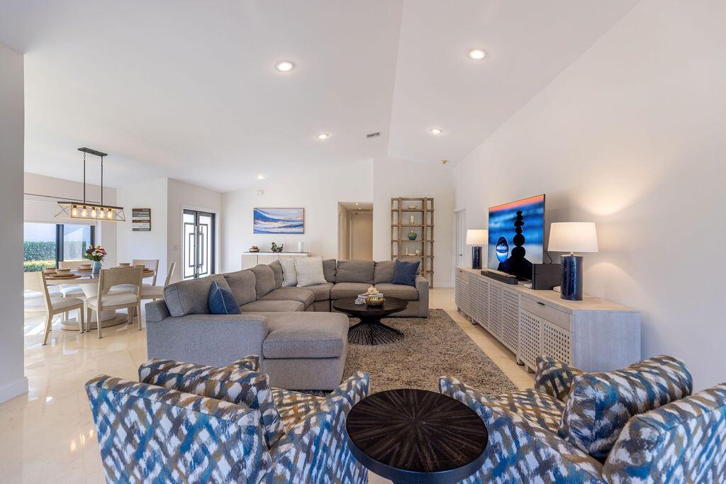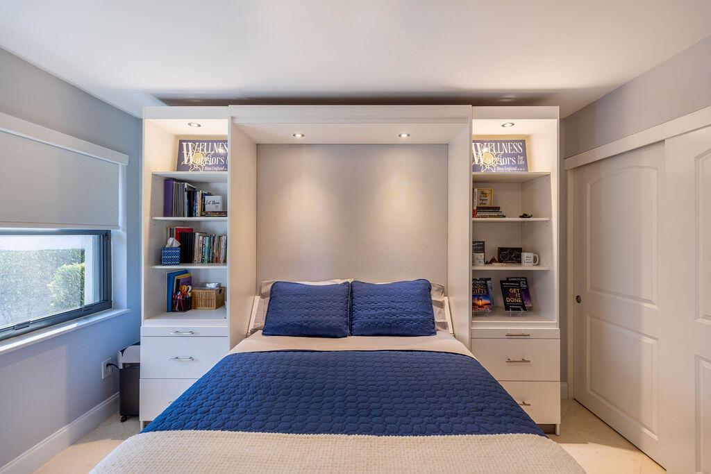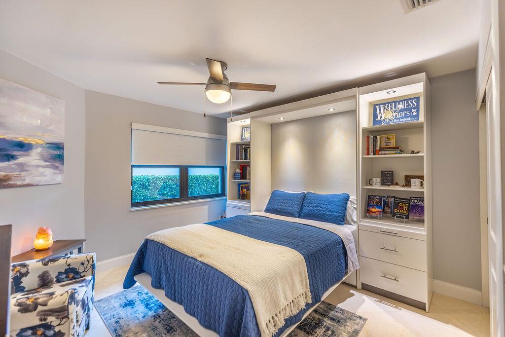 Come see this beautifully updated ranch home in Boca Woods Country Club; one of Palm Beach County's exclusive golf communities. This home was originally a 2 BR & 2BA, that was brilliantly converted to a true 3 BR with a top-of-the-line Murphy bed. This home has beautiful marble floors, a fully updated main bathroom, hurricane impact windows and doors throughout the home, custom shelving in many closets, a new AC unit, plenty of storage, and an in-ground pool. The back patio area is a total oasis with an amazing view of the lake and golf course. The golf cart and outdoor patio furniture come with the home! This will not last, you don't want to miss it!