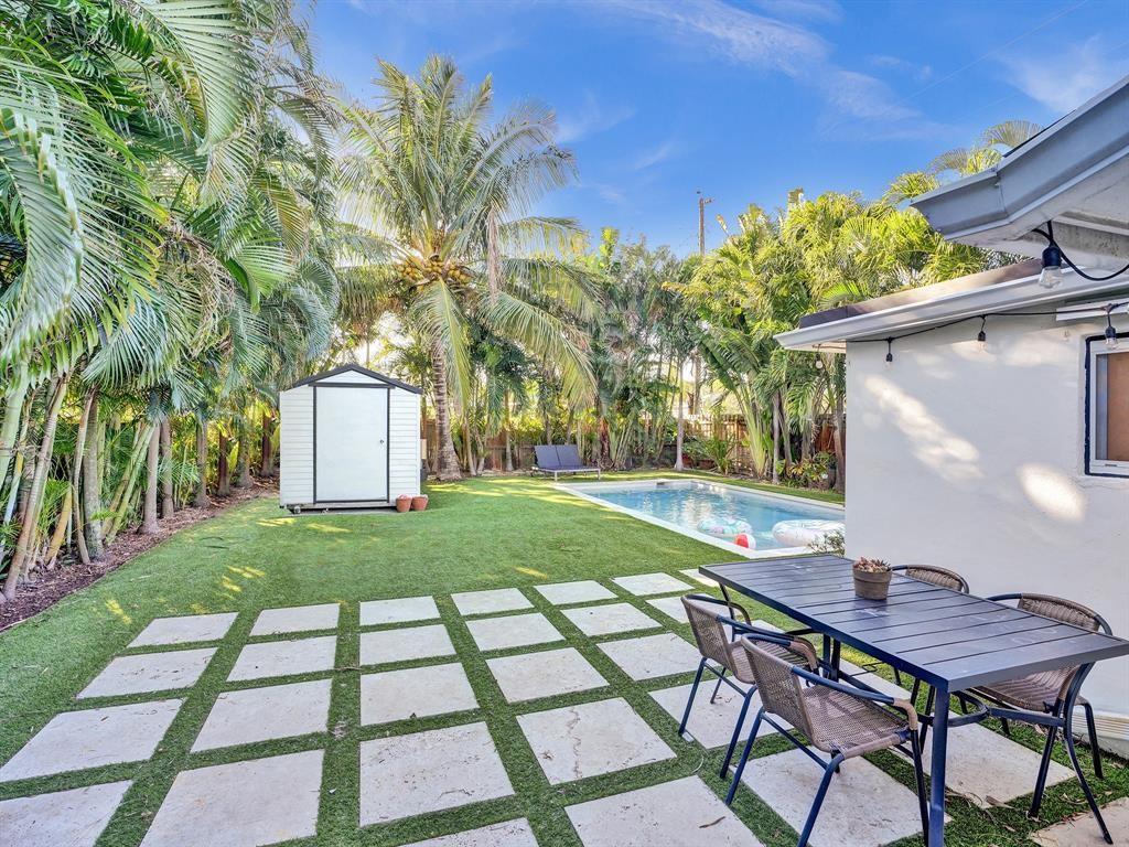This is a 3-bedroom, 2-bathroom POOL HOME with a tropical oasis in the fenced-in backyard, complete with a hot tub. It features a private covered front patio ideal for entertaining, an updated kitchen with granite countertops, soft-close cabinets, and stainless steel appliances. The bathrooms have been updated, and the home includes porcelain tile throughout. The third bedroom is versatile and can serve as an in-law suite. Additional highlights include impact windows, updated electrical, and a shed for extra storage. The property is conveniently located near Wilton Manors, downtown, beaches, shops, restaurants, and the airport.