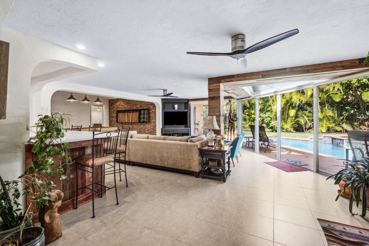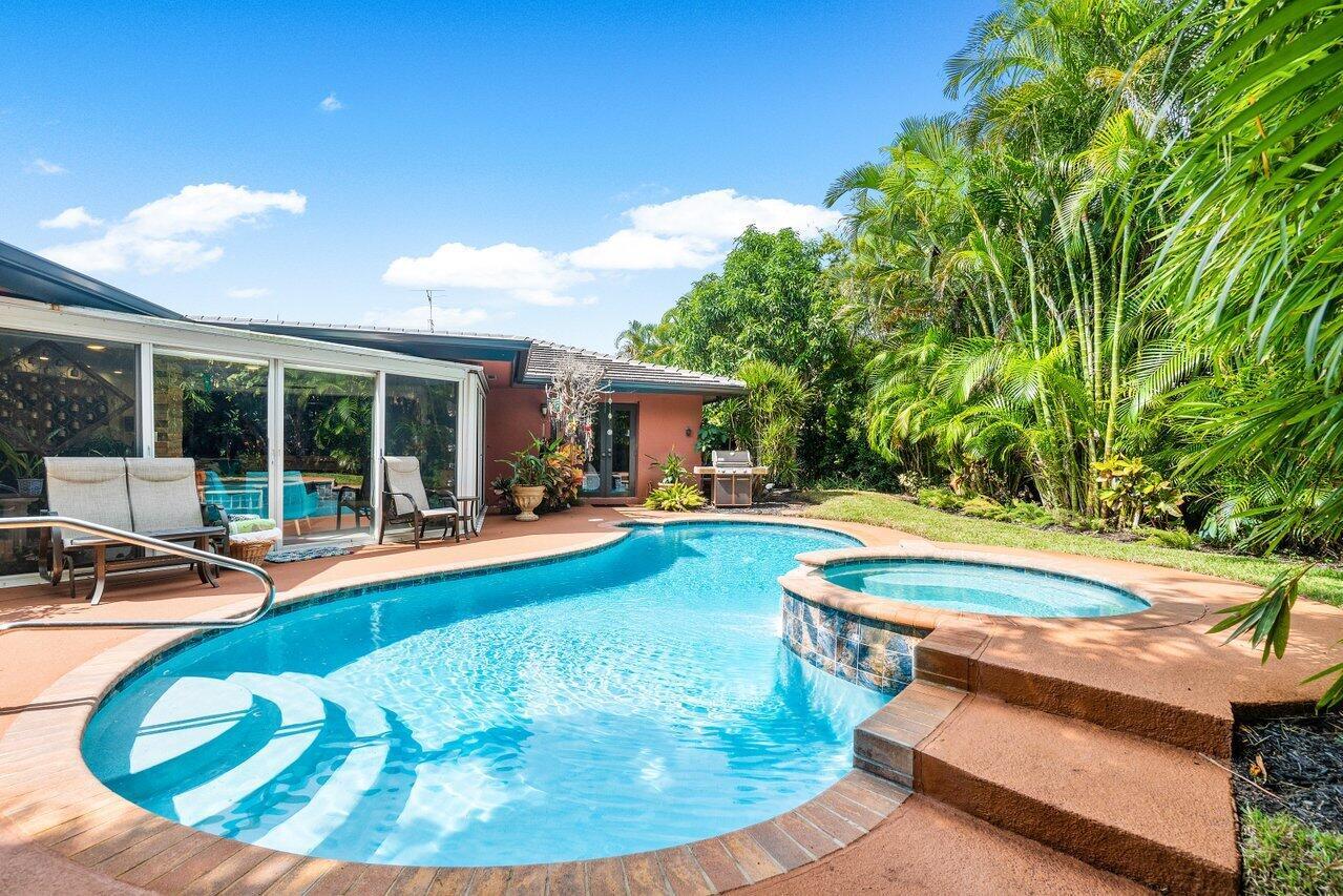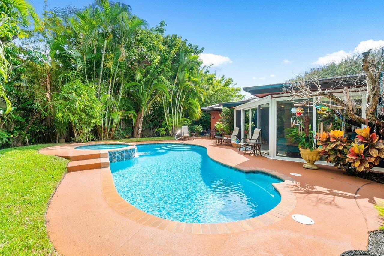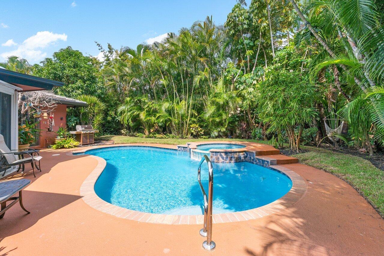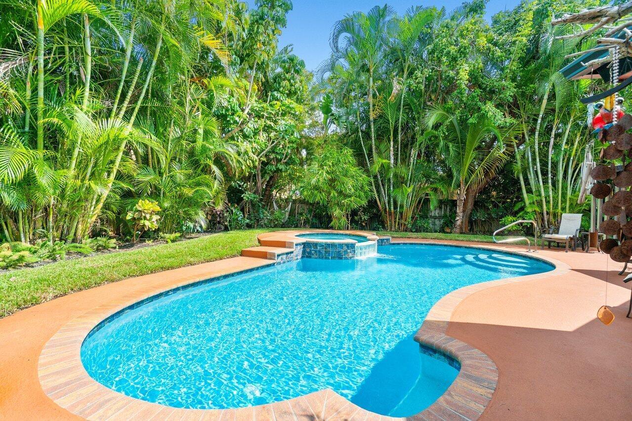 Wow! Drive over the bridge to Singer Island and you can FEEL yourself relaxing as you approach this island oasis! 323 steps from the sand-this home is MADE for fun & relaxation. Home features 3 bedrooms (one currently being used as an office), 3 ensuite baths. & 1 half bath Improvements include a new roof & AC in 2021, mostly impact windows and garage door,storage galore (!) new quartz countertops, new appliances, tankless GAS water heater, reverse osmosis drinking water, GAS heated pool AND SPA, fruit trees & a primary bath that you'll want to spend hours in! Like the fish tank and the pool table? They can be yours too- just ask! Palm Beach Shores is a lovely town with restaurants, walking paths, Macarthur park-all minutes from the airport & all the shopping you can imagine. Call today!