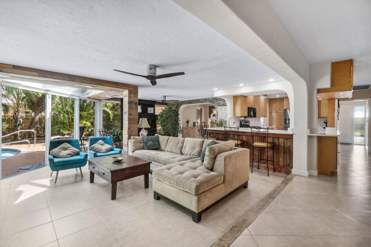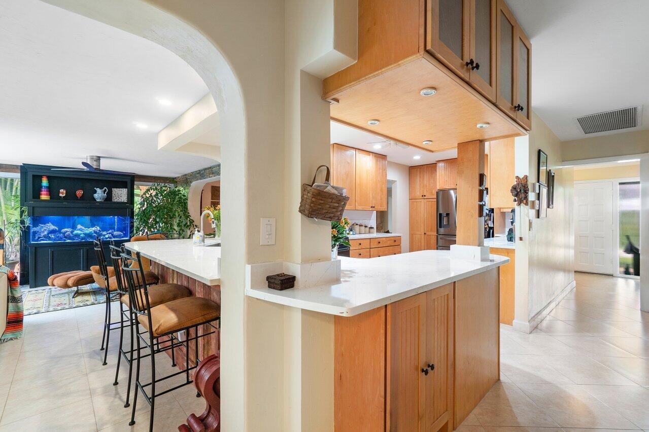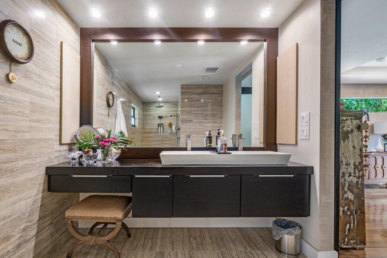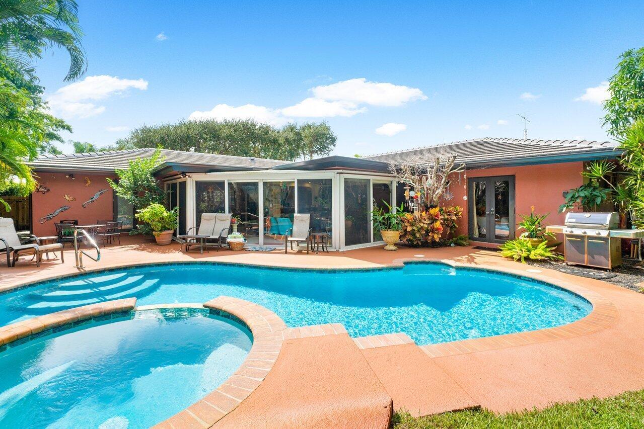 Wow! Drive over the bridge to Singer Island and you can FEEL yourself relaxing as you approach this island oasis! 323 steps from the sand-this home is MADE for fun & relaxation. Home features 3 bedrooms (one currently being used as an office), 3 ensuite baths. & 1 half bath Improvements include a new roof & AC in 2021, mostly impact windows and garage door,storage galore (!) new quartz countertops, new appliances, tankless GAS water heater, reverse osmosis drinking water, GAS heated pool AND SPA, fruit trees & a primary bath that you'll want to spend hours in! Like the fish tank and the pool table? They can be yours too- just ask! Palm Beach Shores is a lovely town with restaurants, walking paths, Macarthur park-all minutes from the airport & all the shopping you can imagine. Call today!