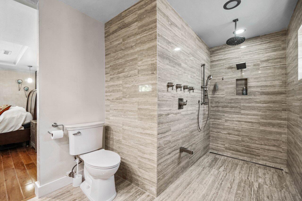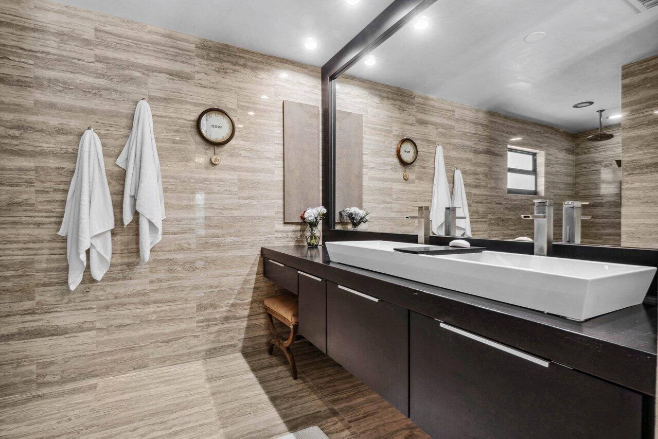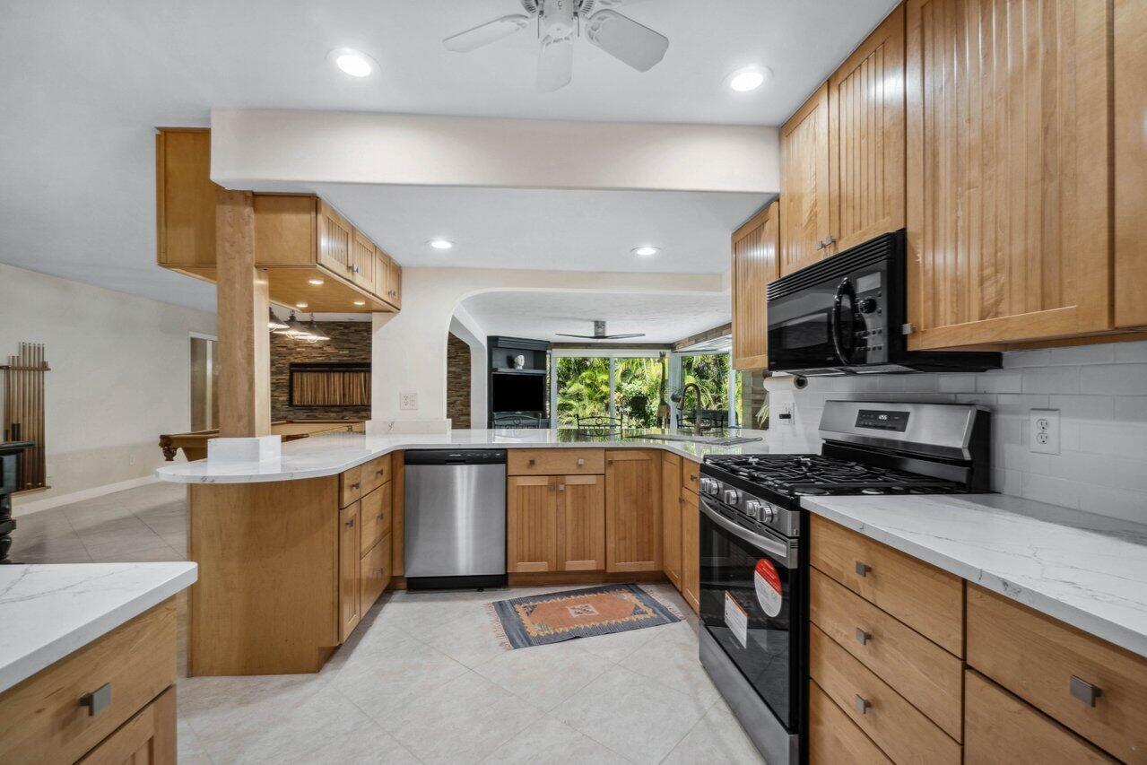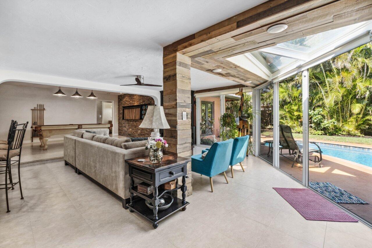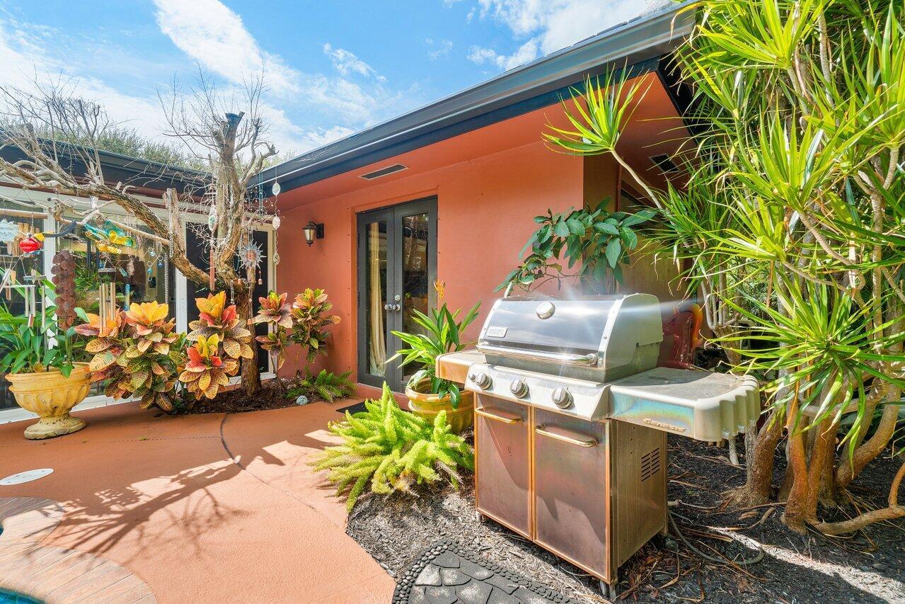 Wow! Drive over the bridge to Singer Island and you can FEEL yourself relaxing as you approach this island oasis! 323 steps from the sand-this home is MADE for fun & relaxation. Home features 3 bedrooms (one currently being used as an office), 3 ensuite baths. & 1 half bath Improvements include a new roof & AC in 2021, mostly impact windows and garage door,storage galore (!) new quartz countertops, new appliances, tankless GAS water heater, reverse osmosis drinking water, GAS heated pool AND SPA, fruit trees & a primary bath that you'll want to spend hours in! Like the fish tank and the pool table? They can be yours too- just ask! Palm Beach Shores is a lovely town with restaurants, walking paths, Macarthur park-all minutes from the airport & all the shopping you can imagine. Call today!