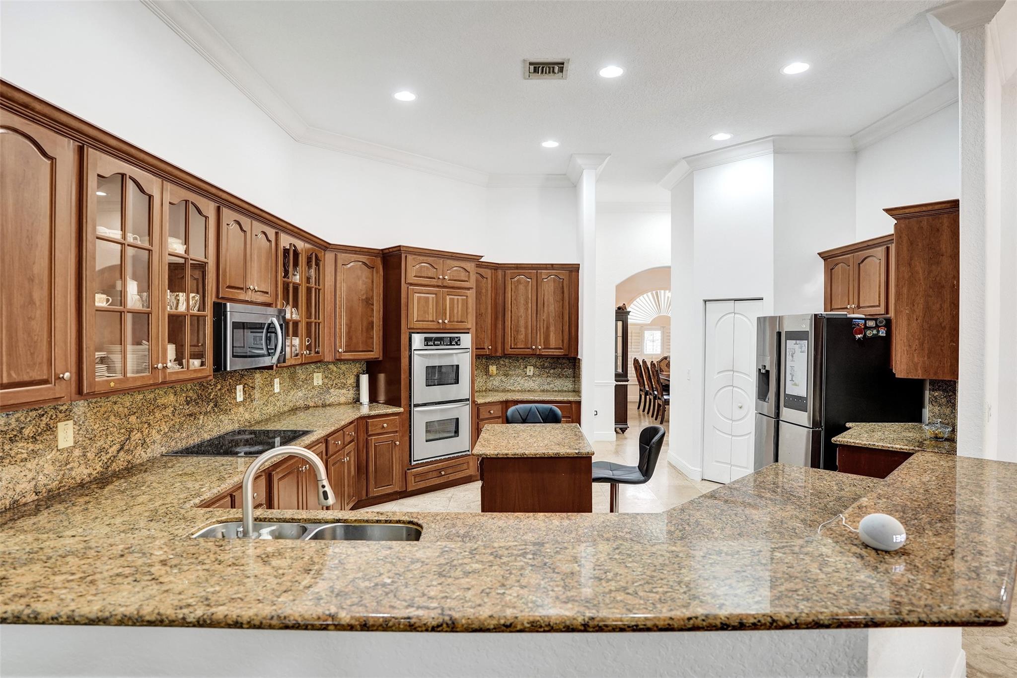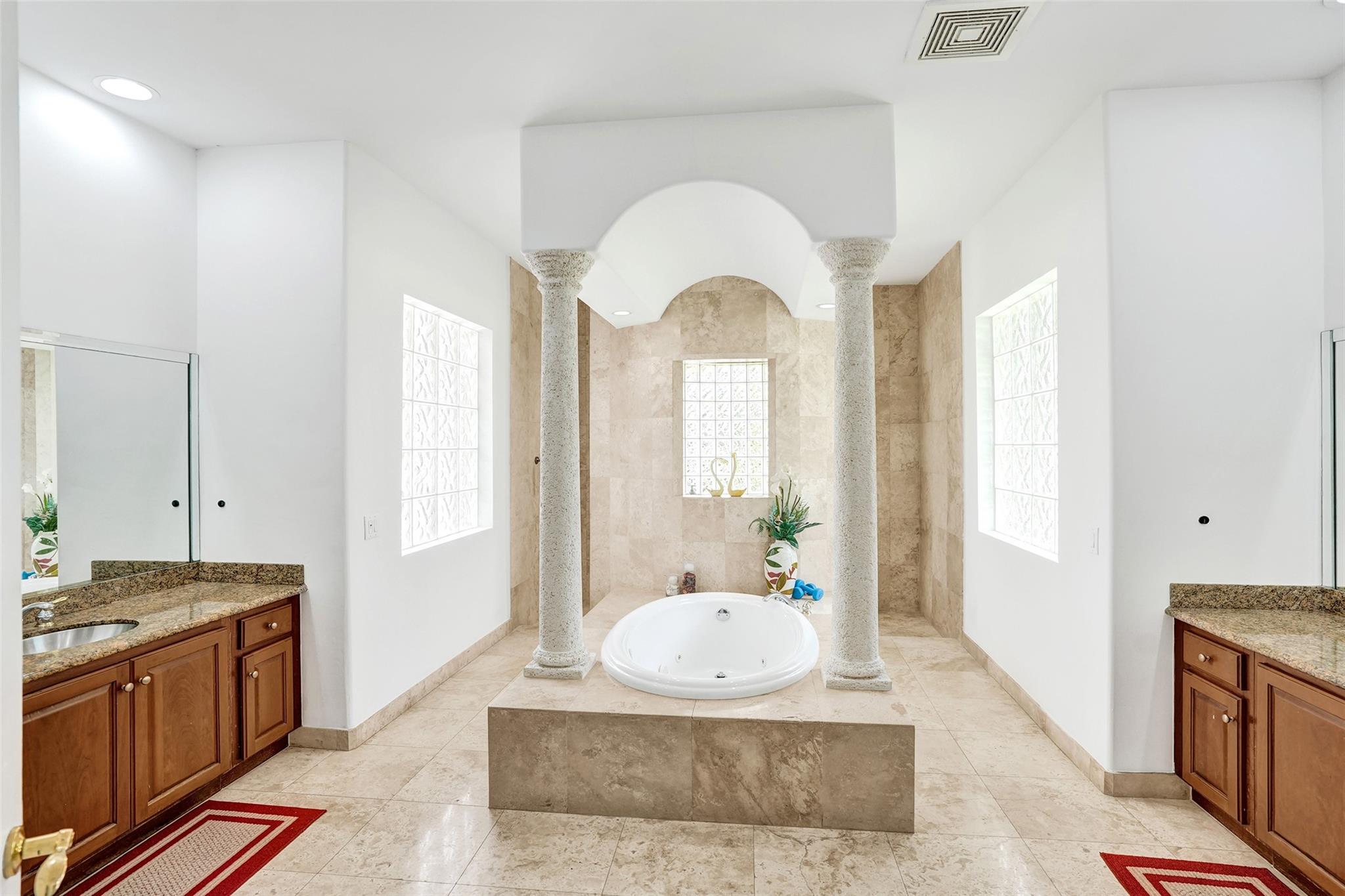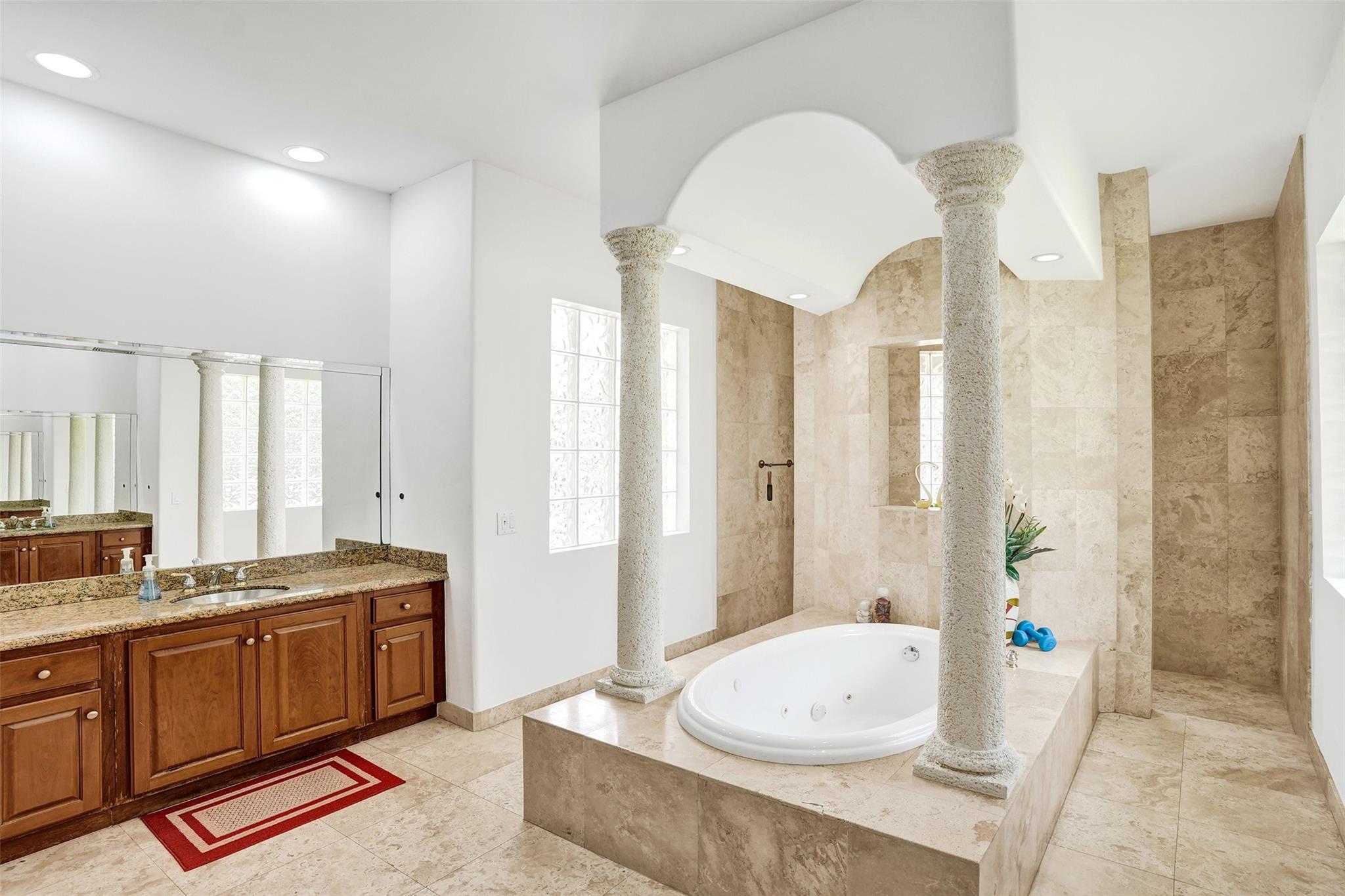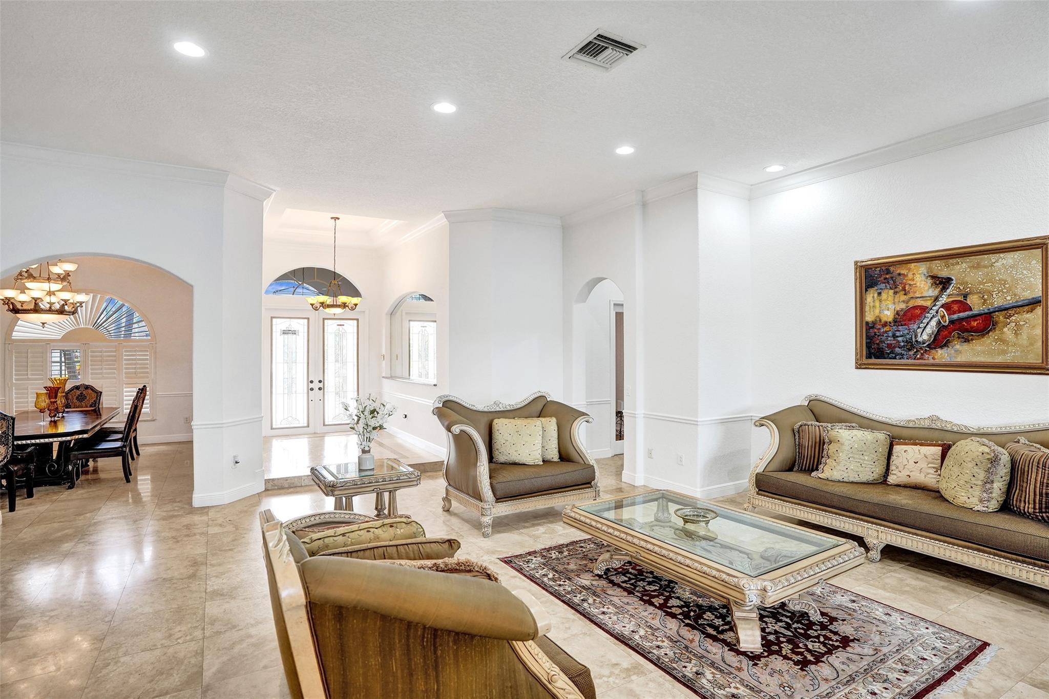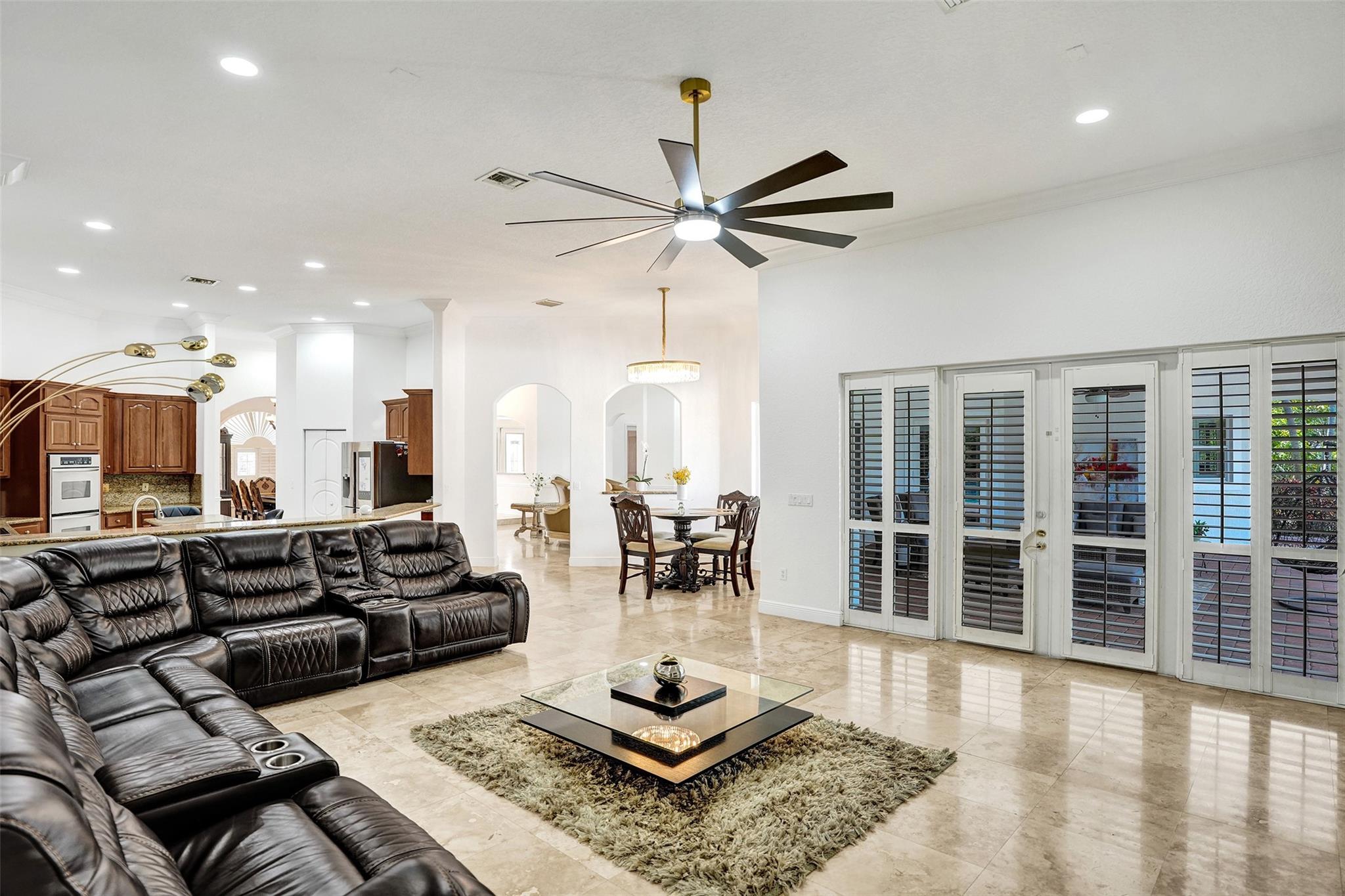 Welcome to this stunning 5-bedroom + office, 6,000+ sq. ft. estate in the prestigious Plantation Acres community. Designed for those who appreciate luxury and space, this home boasts soaring volume ceilings and elegant marble flooring, creating an ambiance of grandeur. The expansive master suite features a private sitting room, offering the perfect retreat for relaxation. The living and dining areas flow seamlessly outside to your private outdoor oasis, where a huge covered patio and summer kitchen set the stage for unforgettable gatherings. Lounge by the sparkling pool or enjoy the expansive private backyard. Experience the best of Plantation Acres living. Don’t miss this rare opportunity to own a home of this caliber!