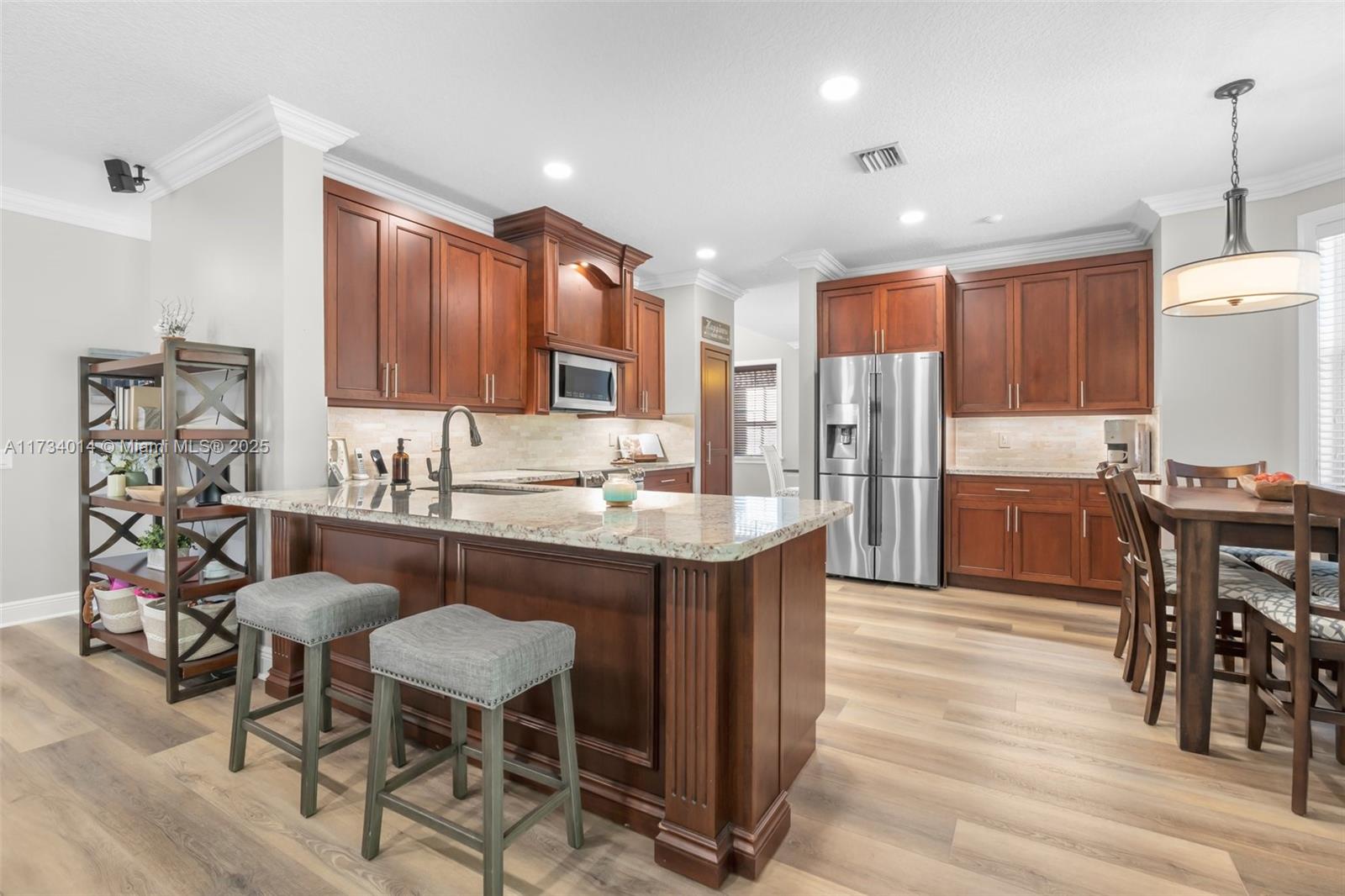 Welcome to your dream home in the highly sought- after Cypress Ridge community of Weston! This stunning 4-bedroom, 3 bath boast an array of luxurious features. Step inside to discover elegant crown molding throughout,.the upgraded kitchen is a chefs delight,showcasing beautiful granite counter tops and modern stainless steel appliances.the interior features luxury vinyl flooring throughout combing style and durability .Enjoy peace of mind with a new roof and new a/c system, 24 hour gated security . the 2 car garage is equipped with custom cabinets and epoxy floor, providing ample storage. Relax and entertain in your private oasis , complete with a sparkling pool and spa.resort style amenities: tennis,basketball,pickleball courts, tot lot , swimming pool !schedule your showing today