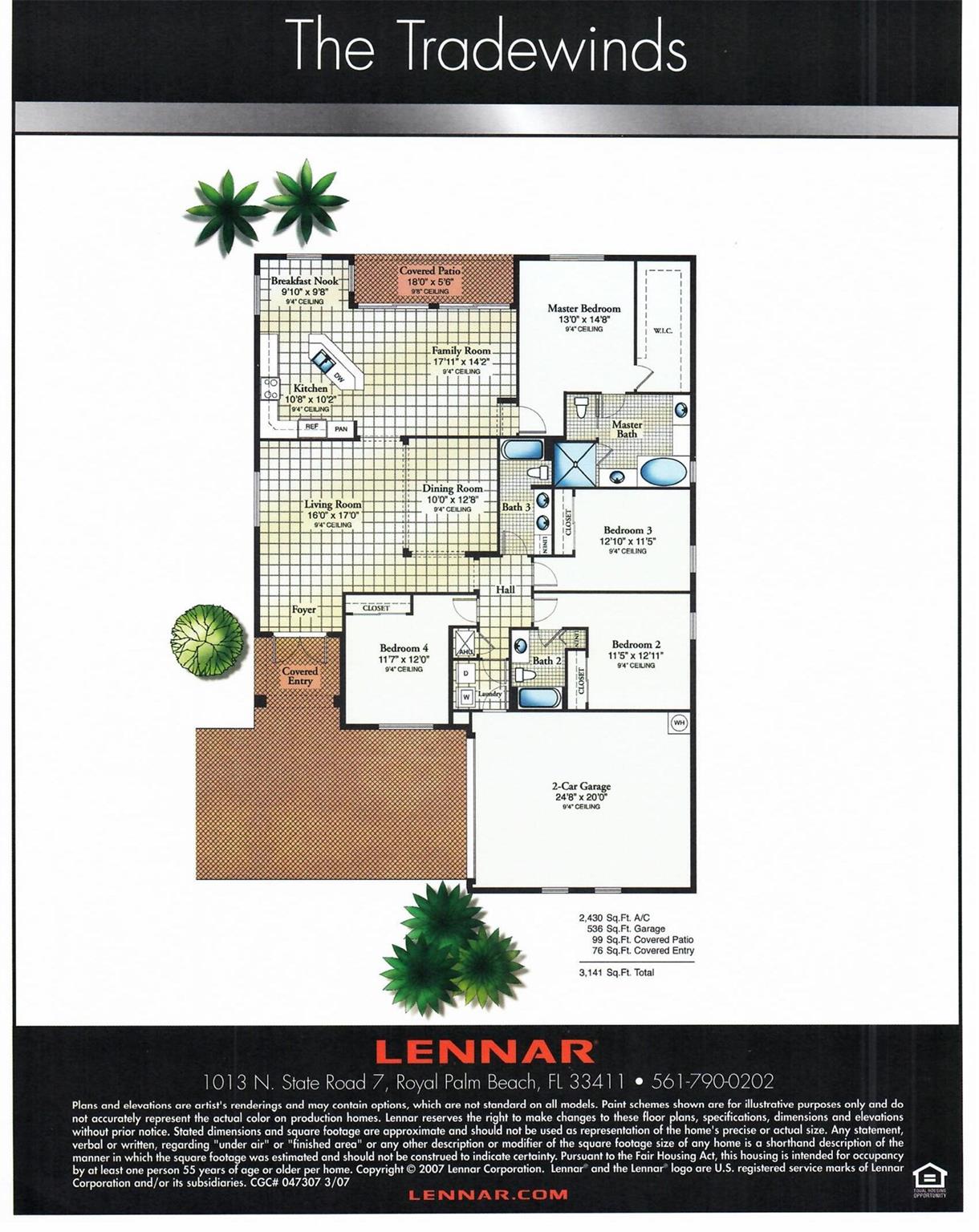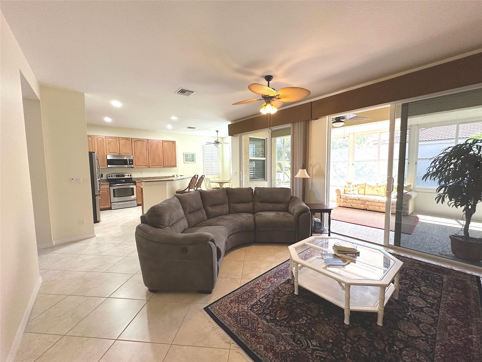 Discover your dream home in vibrant Woodfield 55+ community. Stunning 4 bedrooms, 3 baths. Tradewinds model, built 2008 boasts 2510 square feet of elegant living space. Enjoy the open concept layout with granite kitchen counters, spacious primary suite, Roman tub and separate shower, large walk-in closet. 1 bedroom is a suite with a private bathroom. Impact windows, freshly painted exterior 2025. Relax in the enclosed Florida room (with impact windows) or take advantage of the resort style clubhouse, heated pool, tennis courts, bocce ball, fitness, ball room and more. Pet friendly gem offers coastal living, easy access to beaches, dining, cultural attractions. Don't miss out on this perfect blend of luxury and community.