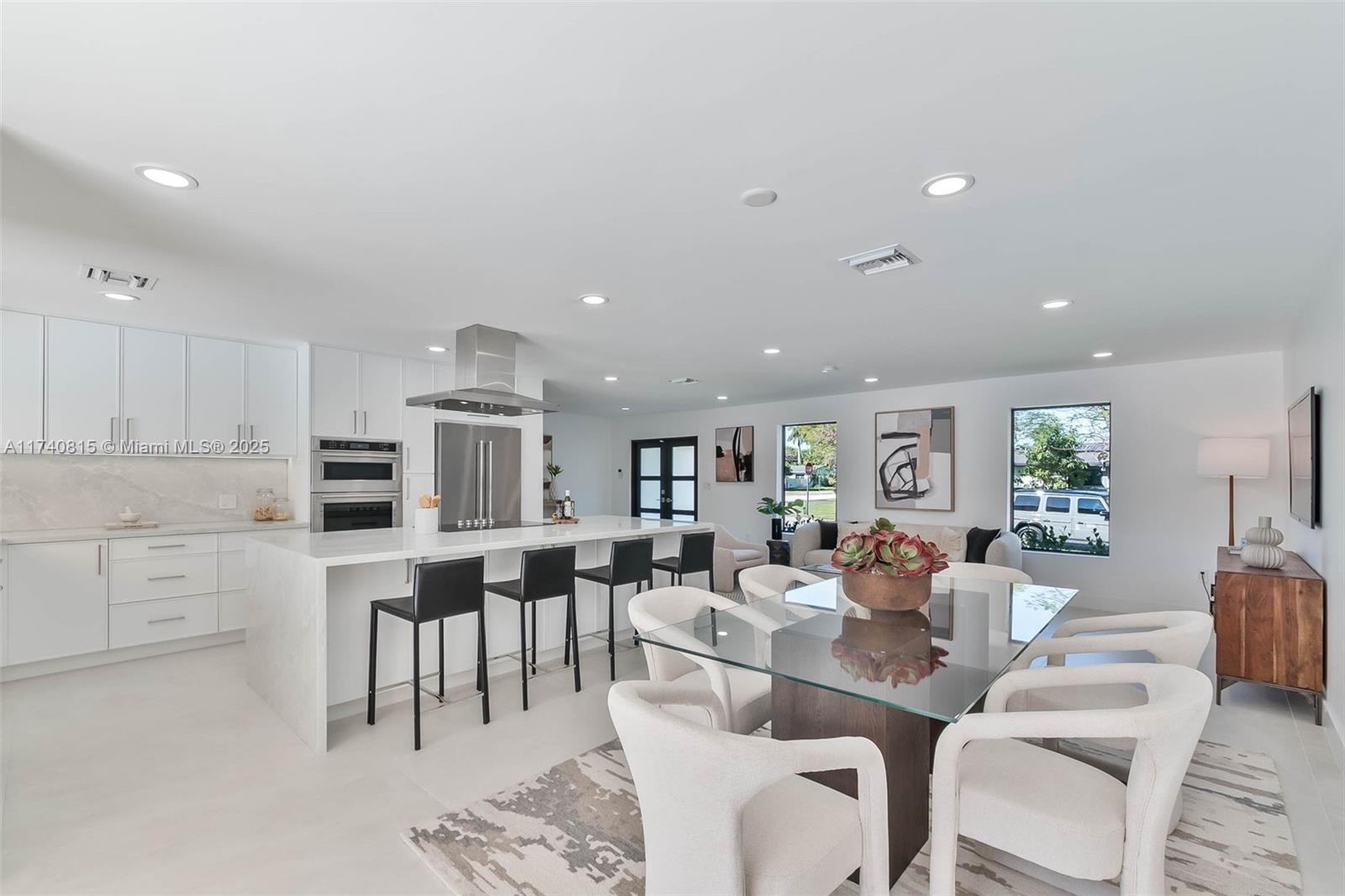 Complete Renovation (with permits) in N Palmetto Bay! Stunning 4 bedroom 3 bath smart home features open concept design. Eat in kitchen showcases center island with quartz countertops, custom wine bar, and Kitchenaid appliances. Porcelain tile floors throughout. Impact windows and doors. Luxurious primary suite with spa like bath with soaking tub & custom closet. Split plan includes junior suite. Den easily converts to 5th bedroom. Dedicated laundry room. 2022 AC and new duct work. All new plumbing, septic system, electrical, tile roof, and paver driveway. Covered terrace, shell stone patio, pebble tech pool. Fenced corner lot on quiet cul de sac. This is a must see!