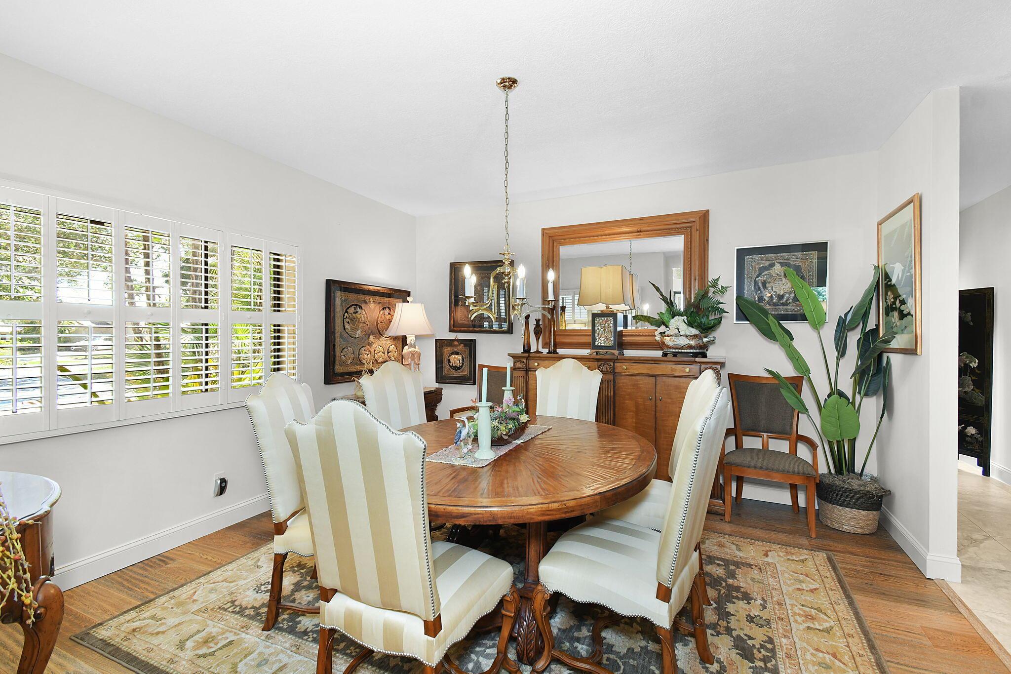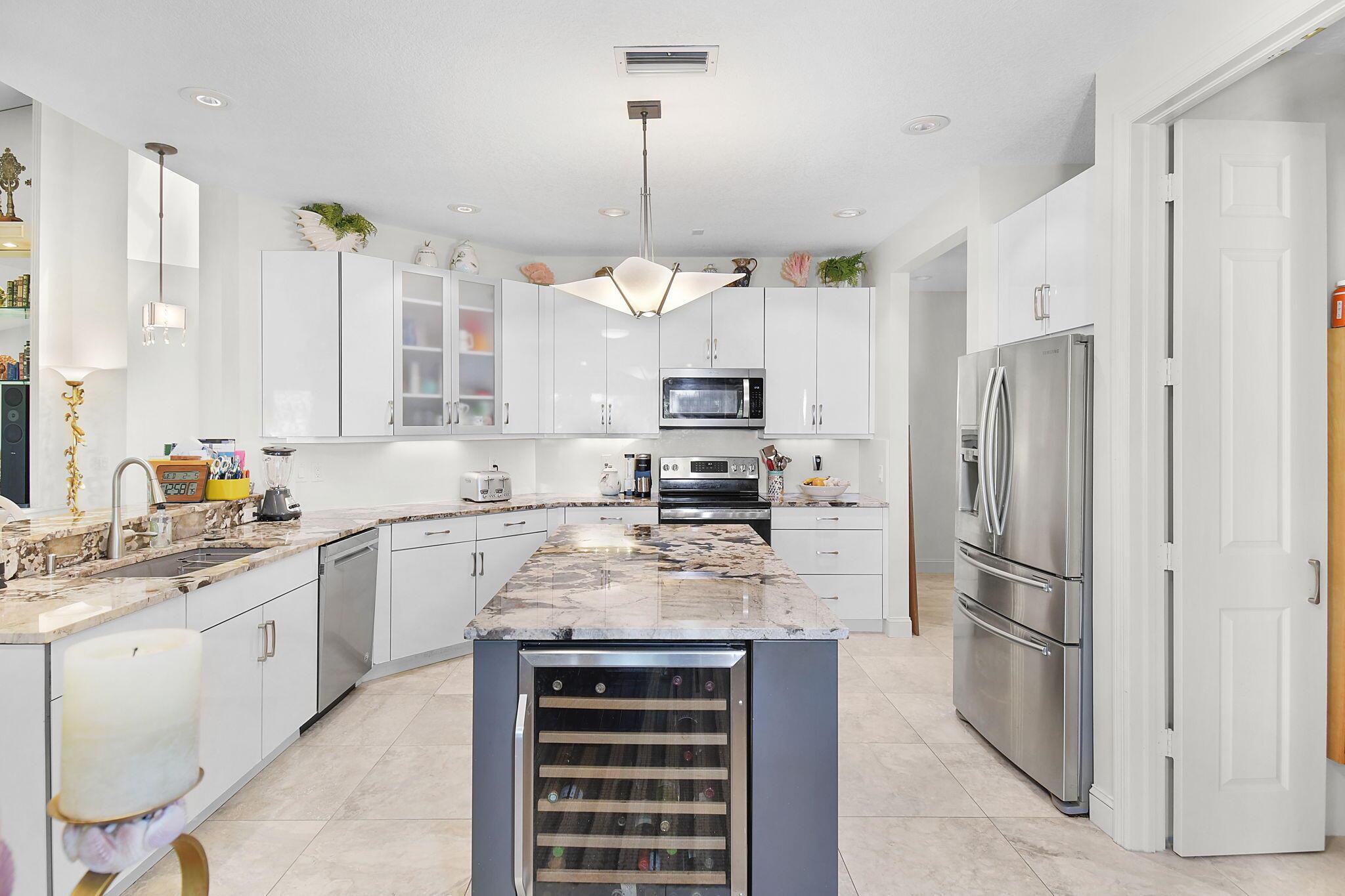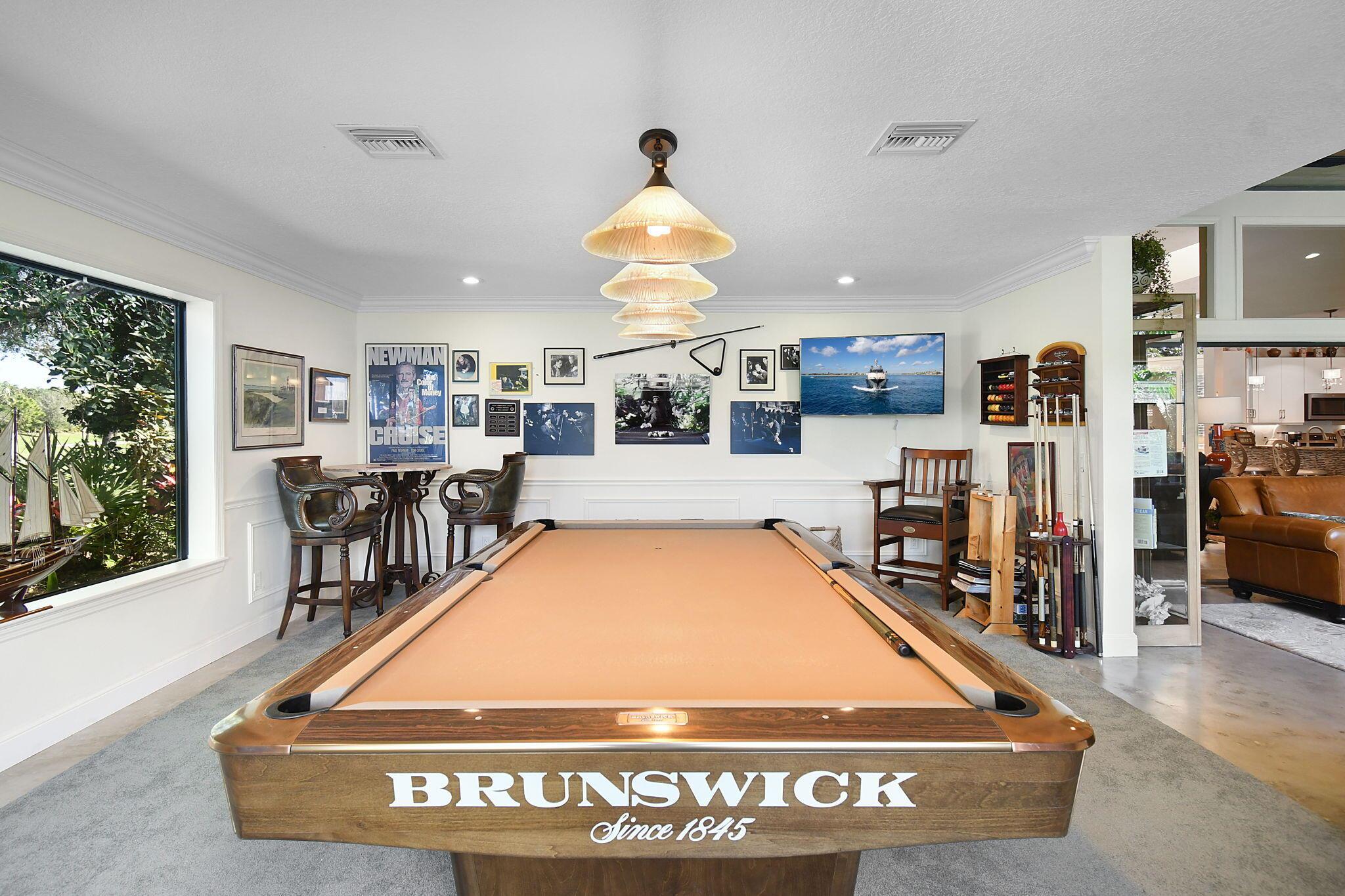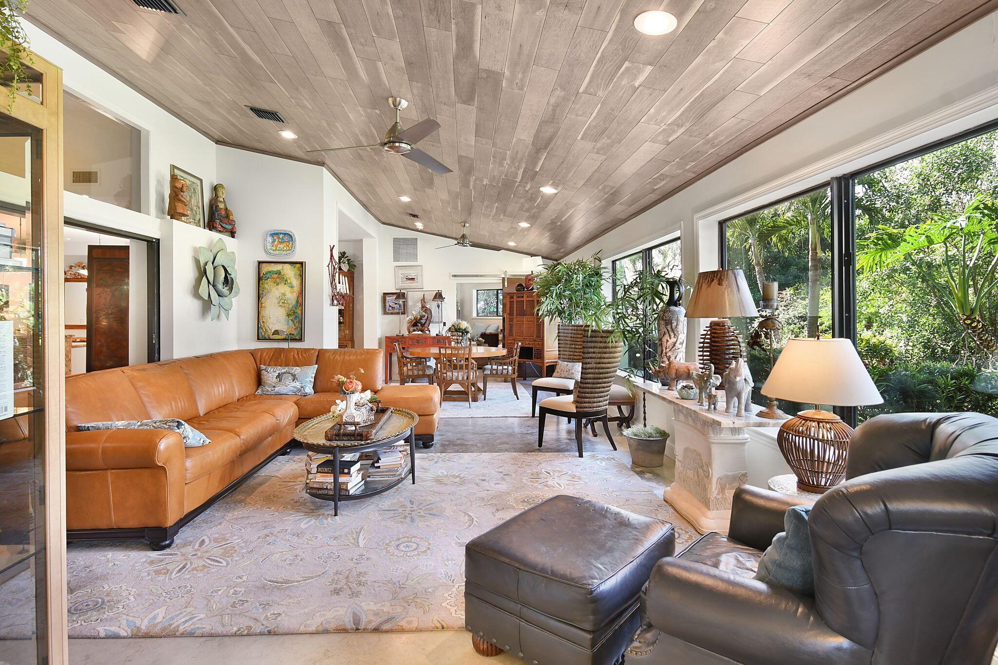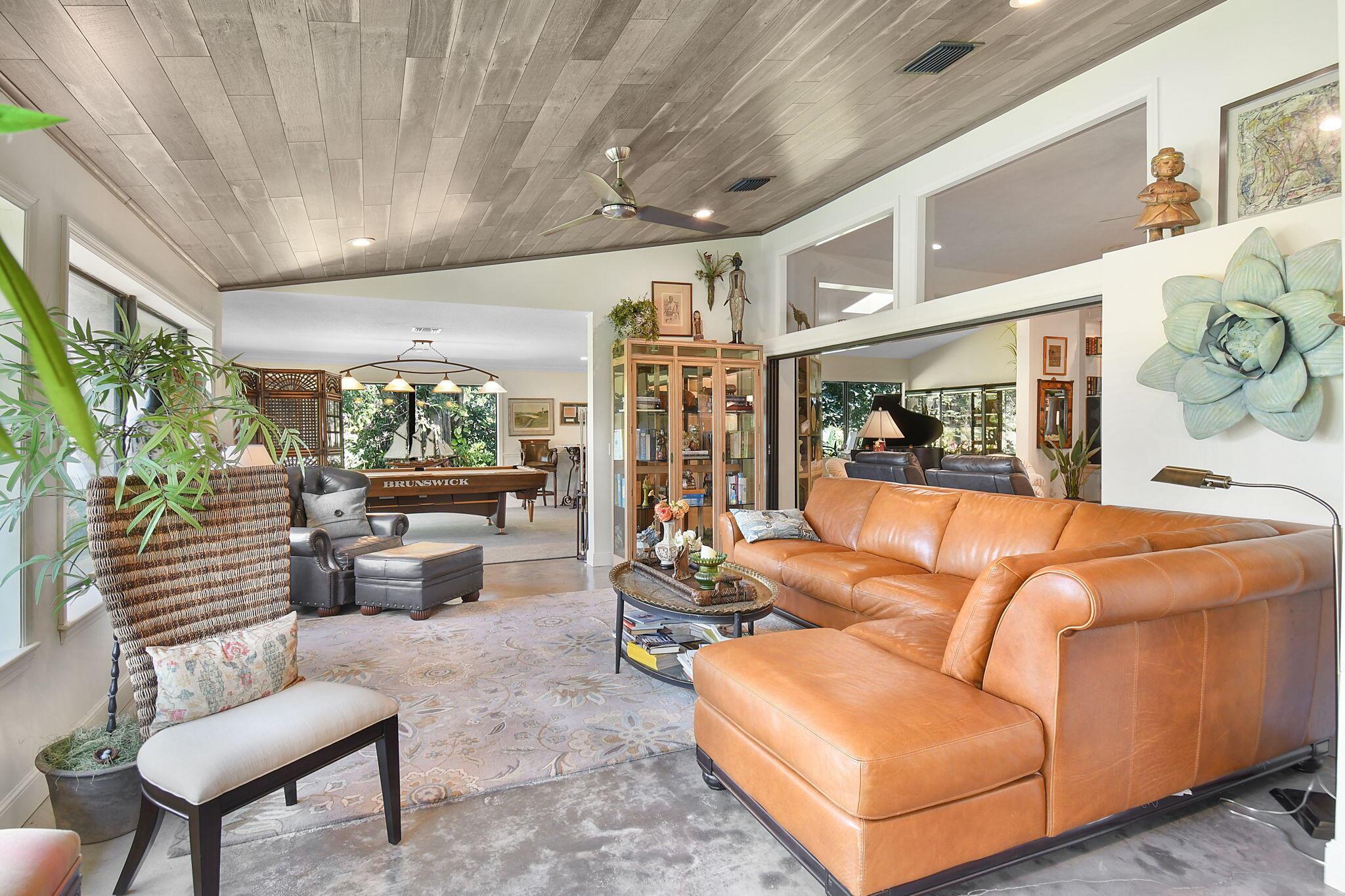 This 4 bedroom 3.5 bath home offers an expansive living space with vaulted ceilings. The recently remodeled kitchen has gorgeous granite countertops, stainless steel appliances, a large pantry & wine fridge that would please any chef. The Florida Room with wood ceilings overlooks a garden that could be easily turned into an inviting pool area. The large primary bedroom includes a sitting area & 2 walk-in closets. The massive primary bathroom has 2 vanities, step-in shower and soak tub. The Music & Recreation rooms at the rear of the home offer panoramic views of the Blue Course 14th fairway through impact glass picture windows. On the other side of the home are 3 bedrooms and 2 bathrooms. The home sits on a high & dry .58 acre lot. Garage doors replaced in 2025.