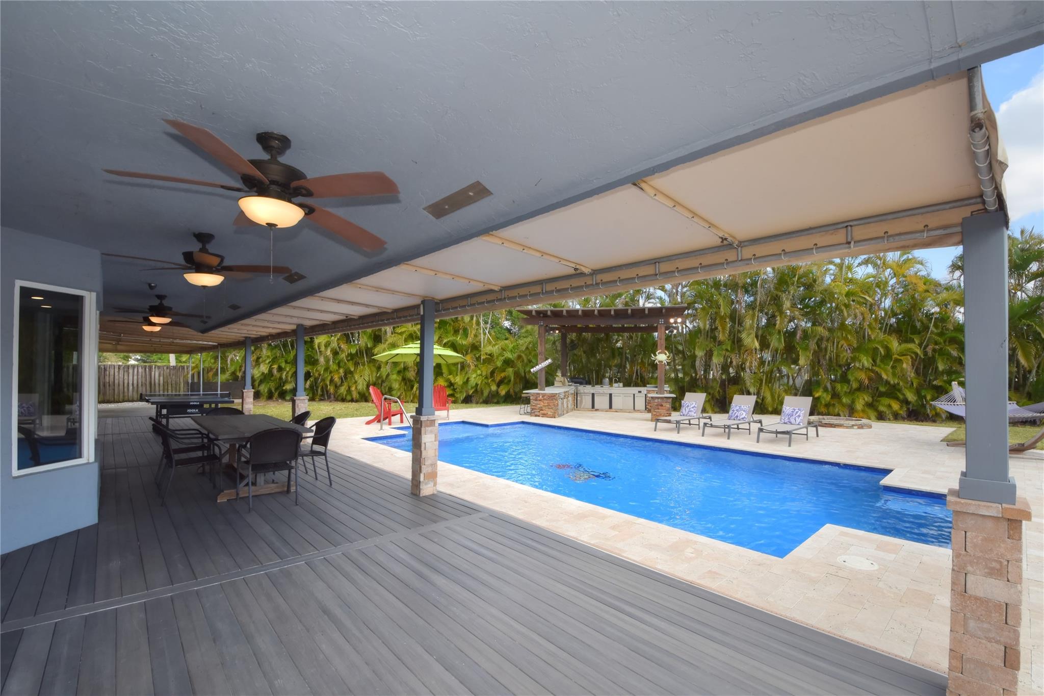THE WAVERLY HUNDRED, A CUSTOM TROPICAL MASTERPIECE WITH ALMOST A HALF ACRE OF LAND. ONE OF THE LARGEST WATER FRONT LOTS IN THE DEVELOPMENT, A DRAMATIC LAKEFRONT ESTATE, 3-BEDROOMS WITH 2-FULL BATHS, OVER-SIZED PATIO AND HUGE OPEN POOL, A ONE-STORY HOME WITH A TWO-CAR SIDE LOAD GARAGE & SIDE CARPORT/STORAGE AREA, PERFECT FOR A BOAT OR TRUCK, OVERSIZED DRIVEWAY AT THE END OF THE CUL-DE-SAC. A GOURMET DESIGNED KITCHEN WITH QUARTZ COUNTERTOPS, STAINLESS STEEL APPLIANCES, A THREE-WAY SPLIT FLOOR PLAN, EXTRAS INCLUDE, BUILT-IN SUMMER KITCHEN, BUILT-IN FIRE PIT, ENGINEERED WOOD FLOORING, CROWN MOLDING, VOLUME CEILINGS, POOL HEATER, IMPACT WINDOWS & DOORS, REMODELED BATHS, LUSH FLORIDA LANDSCAPING, OVERSIZED FRONT AND BACK YARDS, THE VERY BEST DAVIE, FLORIDA HAS TO OFFER WITH A VERY LOW HOA FEE.