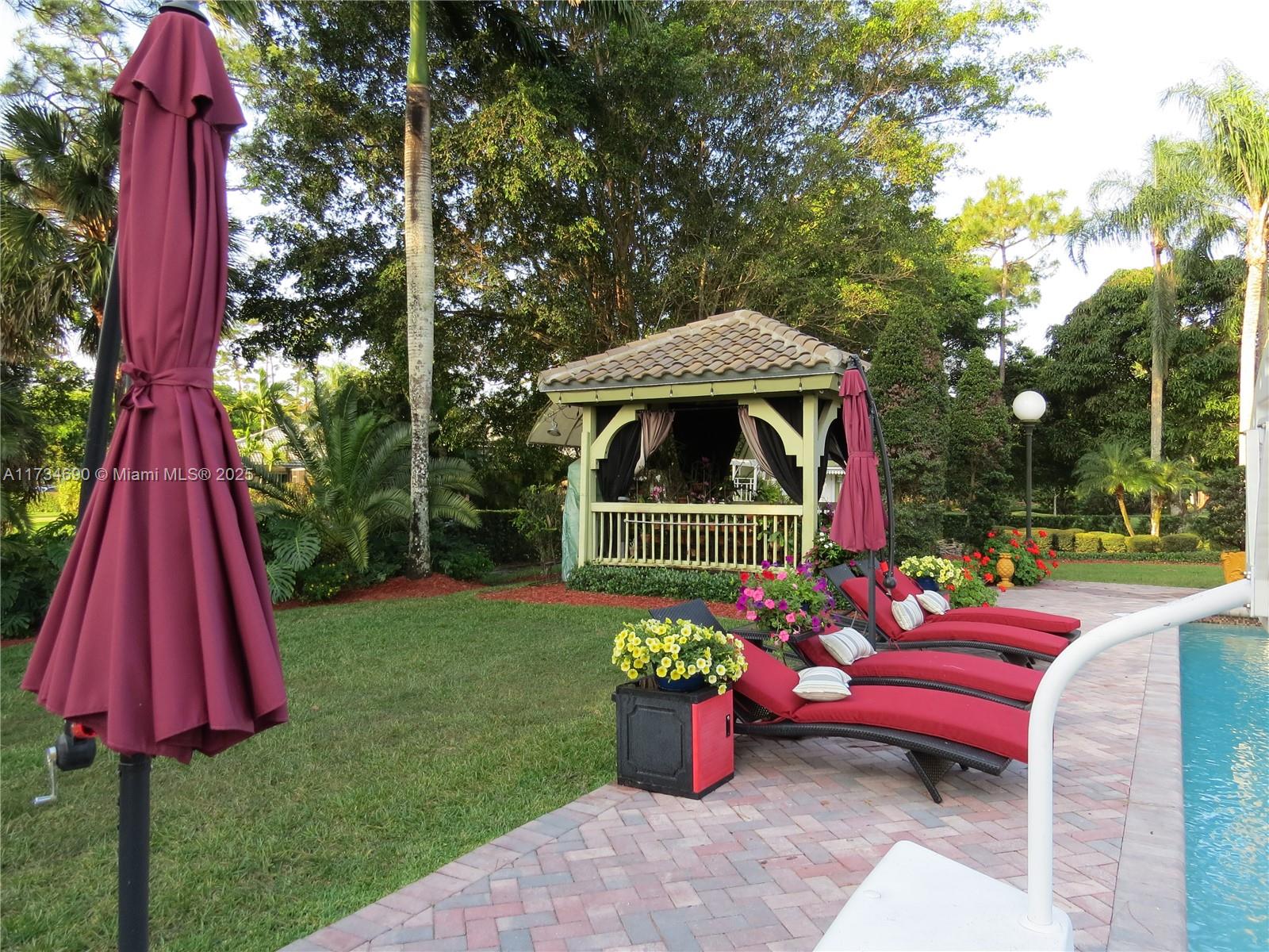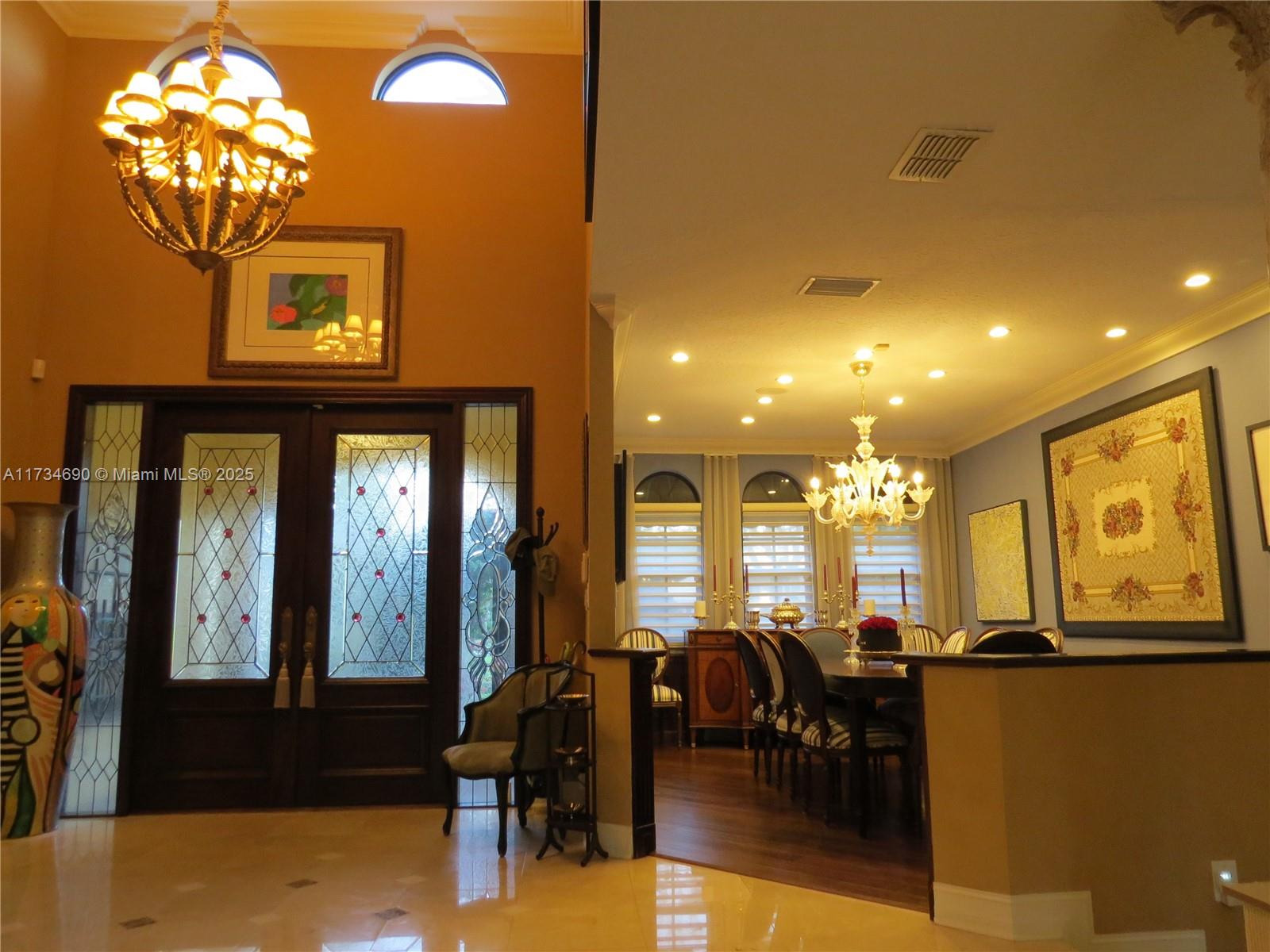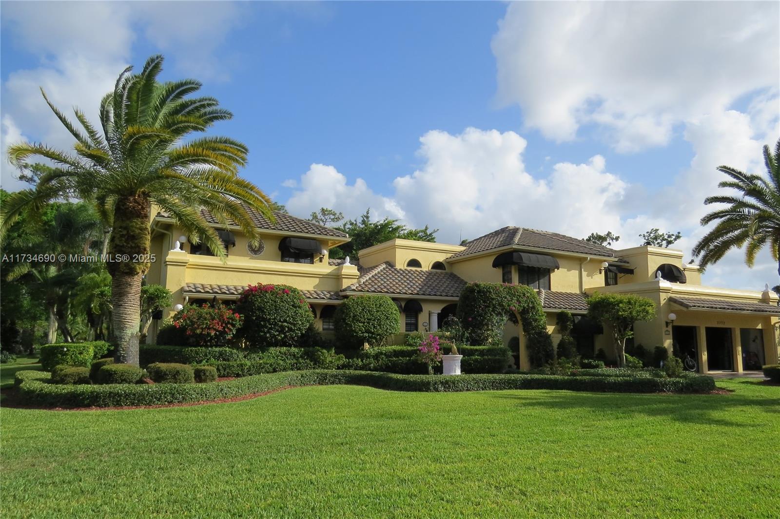 Breathtaking Mediterranean Style Mansion in Whispering Woods, 1 acre Cul De Sac Homesite. 7479 sqf living area. Magnificent gardens, stile resort pool with heater, gazebo and catio. Professionally decorated 2 stories, 7 bedrooms with walking closets and designed cabinets, 7 complete bath and 1 half bath, living room, dinning room, 2 family room, fire place, 2 offices spaces, laundry area, and extra space room used as playroom but can be used as Gym or cinema room, exceptional kitchen with huge eat in area, granite counters, SS Viking appliances ,Stove, double ovens, large center cooking island. Also Wiener room, Huge Garage with cabinets and space for 3 vehicles plus parking area. Marbel, wood fand laminated floors. The roof is just 10 years old, impact windows, new A/C, water heather.