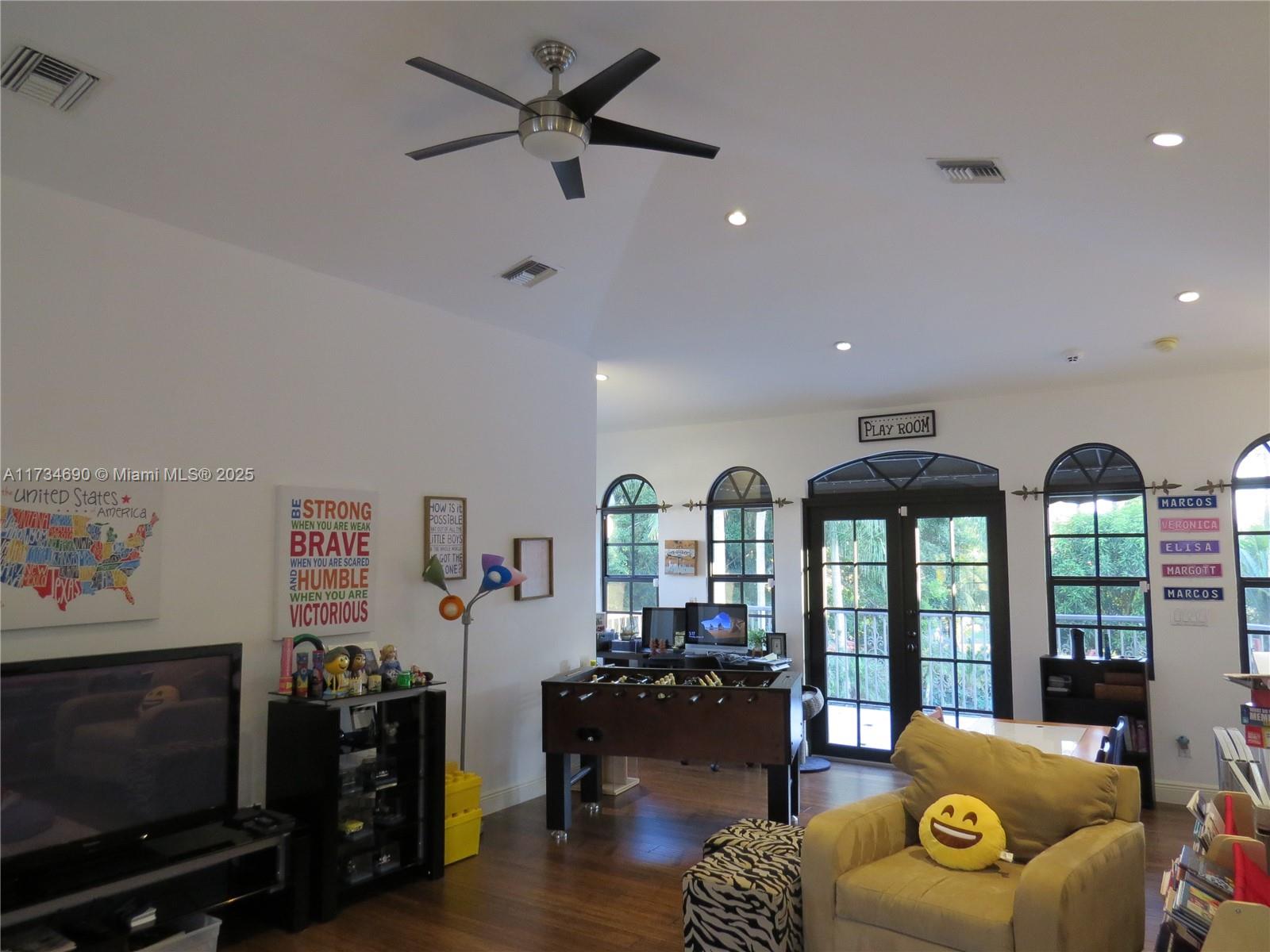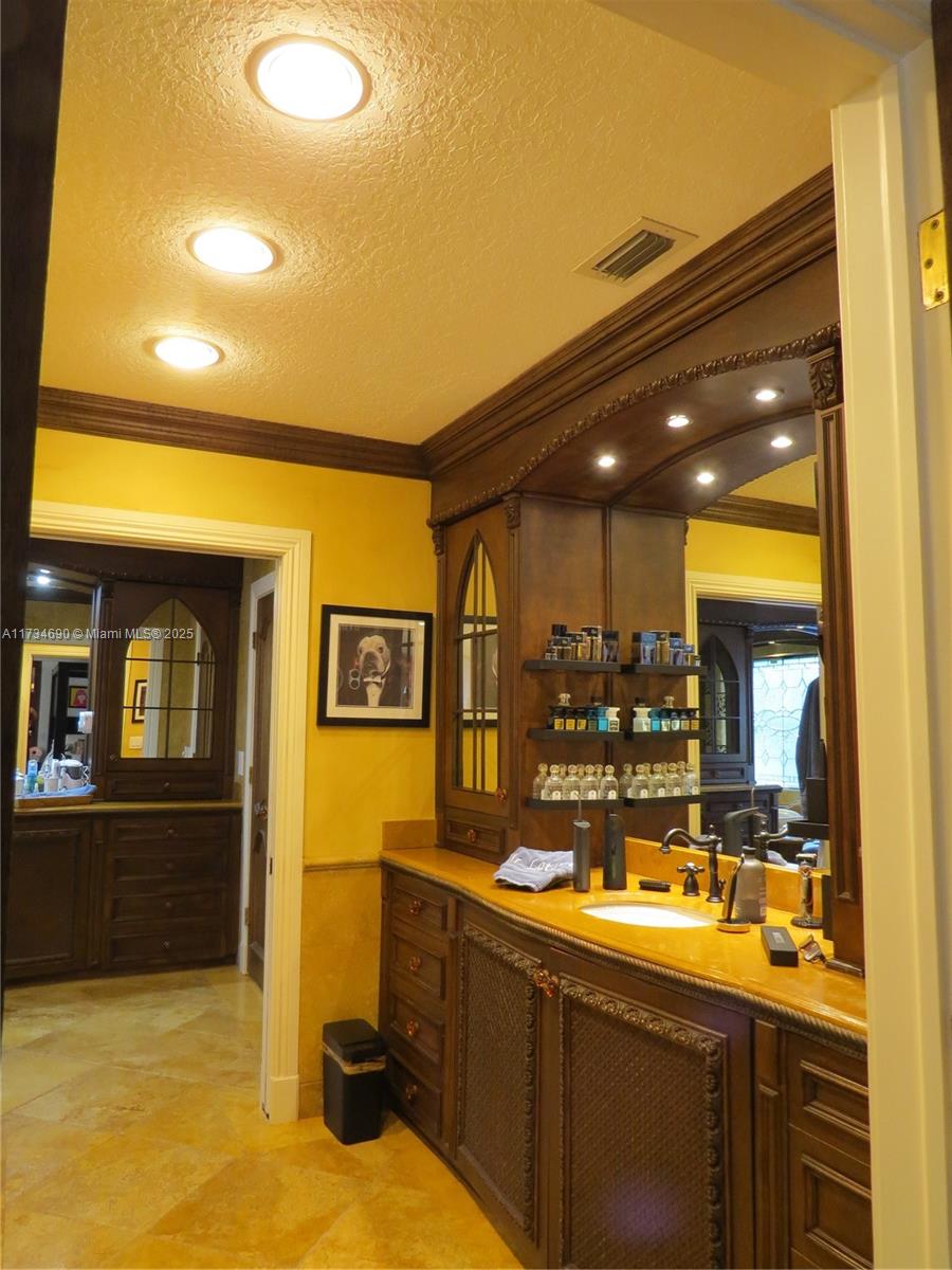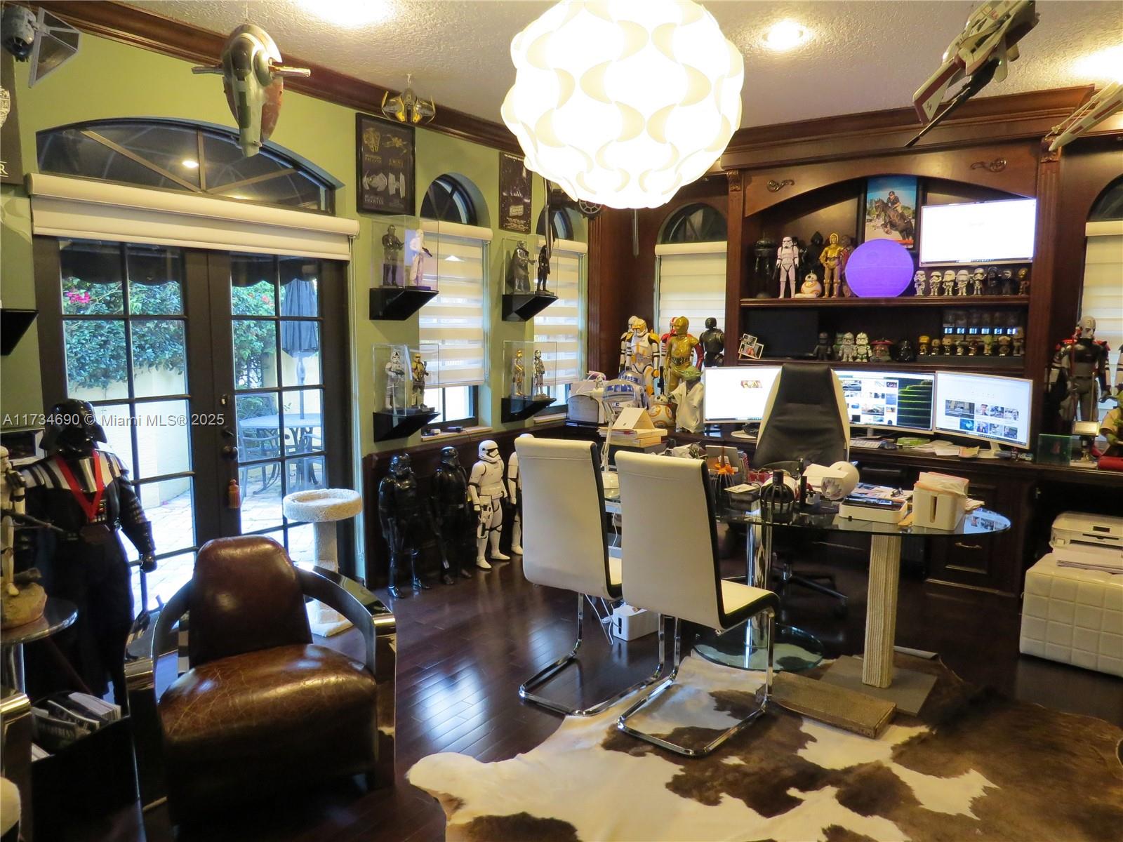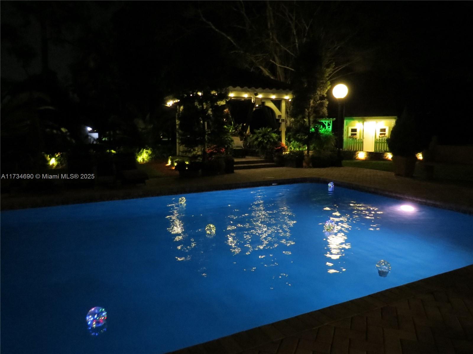 Breathtaking Mediterranean Style Mansion in Whispering Woods, 1 acre Cul De Sac Homesite. 7479 sqf living area. Magnificent gardens, stile resort pool with heater, gazebo and catio. Professionally decorated 2 stories, 7 bedrooms with walking closets and designed cabinets, 7 complete bath and 1 half bath, living room, dinning room, 2 family room, fire place, 2 offices spaces, laundry area, and extra space room used as playroom but can be used as Gym or cinema room, exceptional kitchen with huge eat in area, granite counters, SS Viking appliances ,Stove, double ovens, large center cooking island. Also Wiener room, Huge Garage with cabinets and space for 3 vehicles plus parking area. Marbel, wood fand laminated floors. The roof is just 10 years old, impact windows, new A/C, water heather.