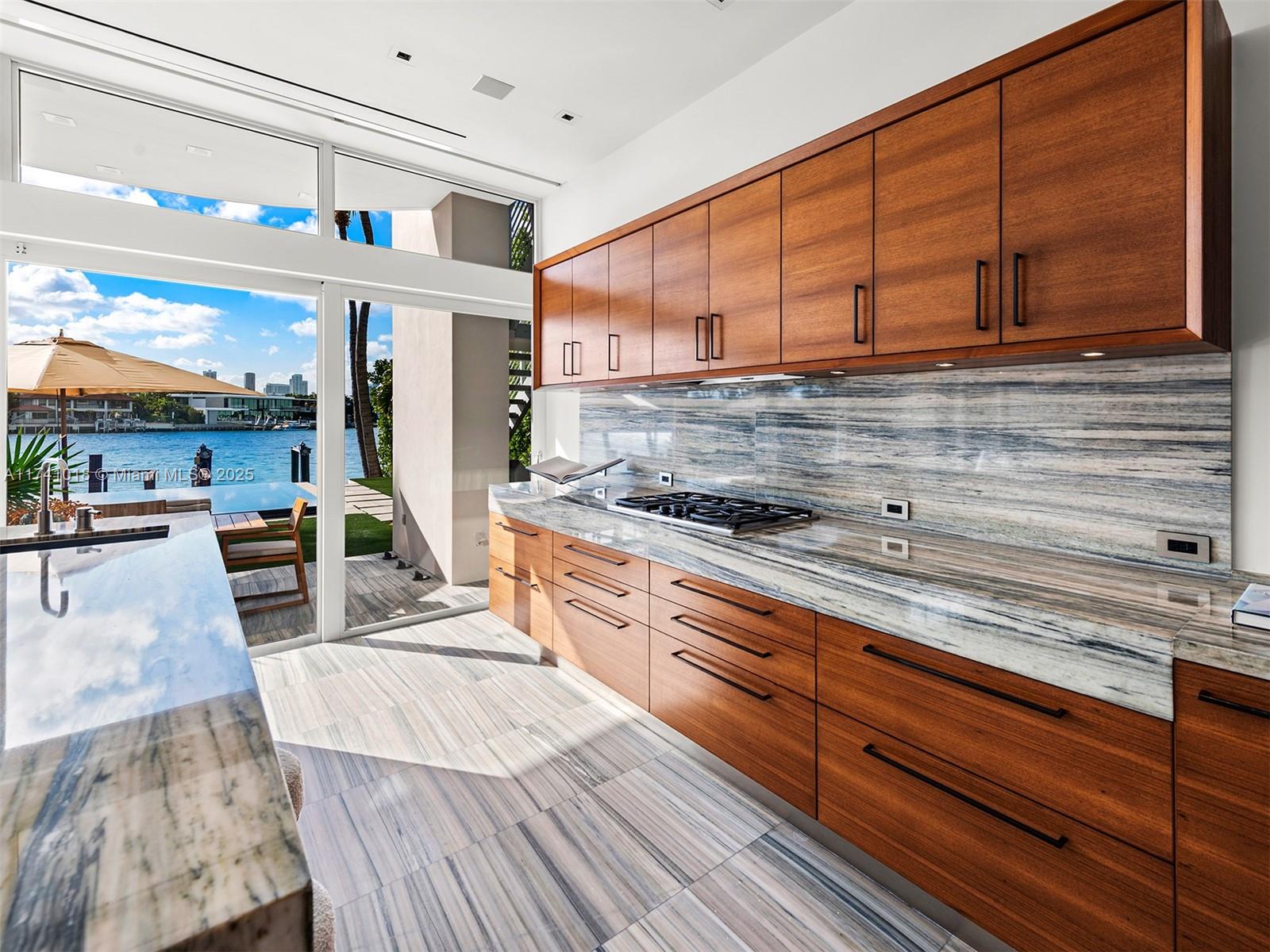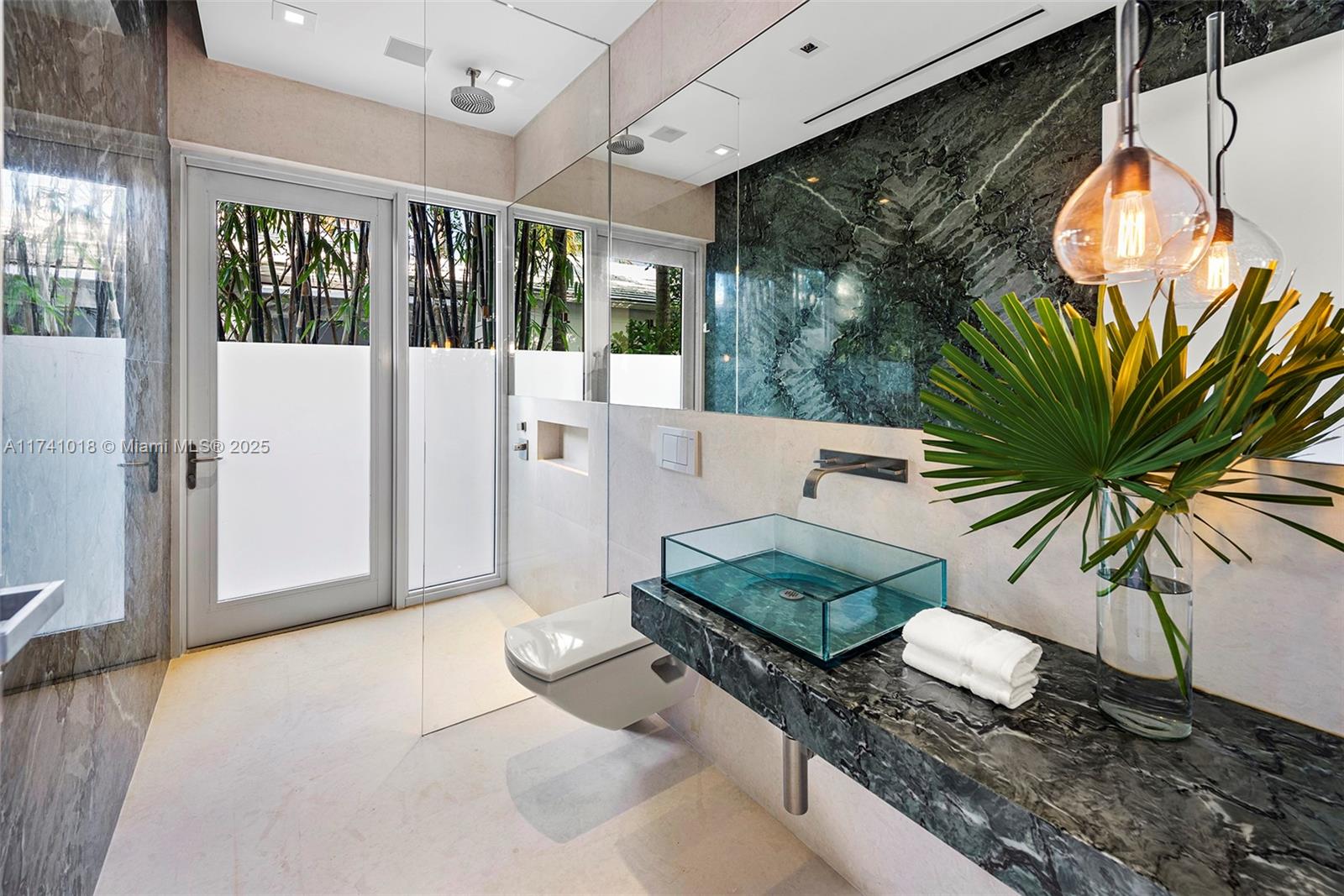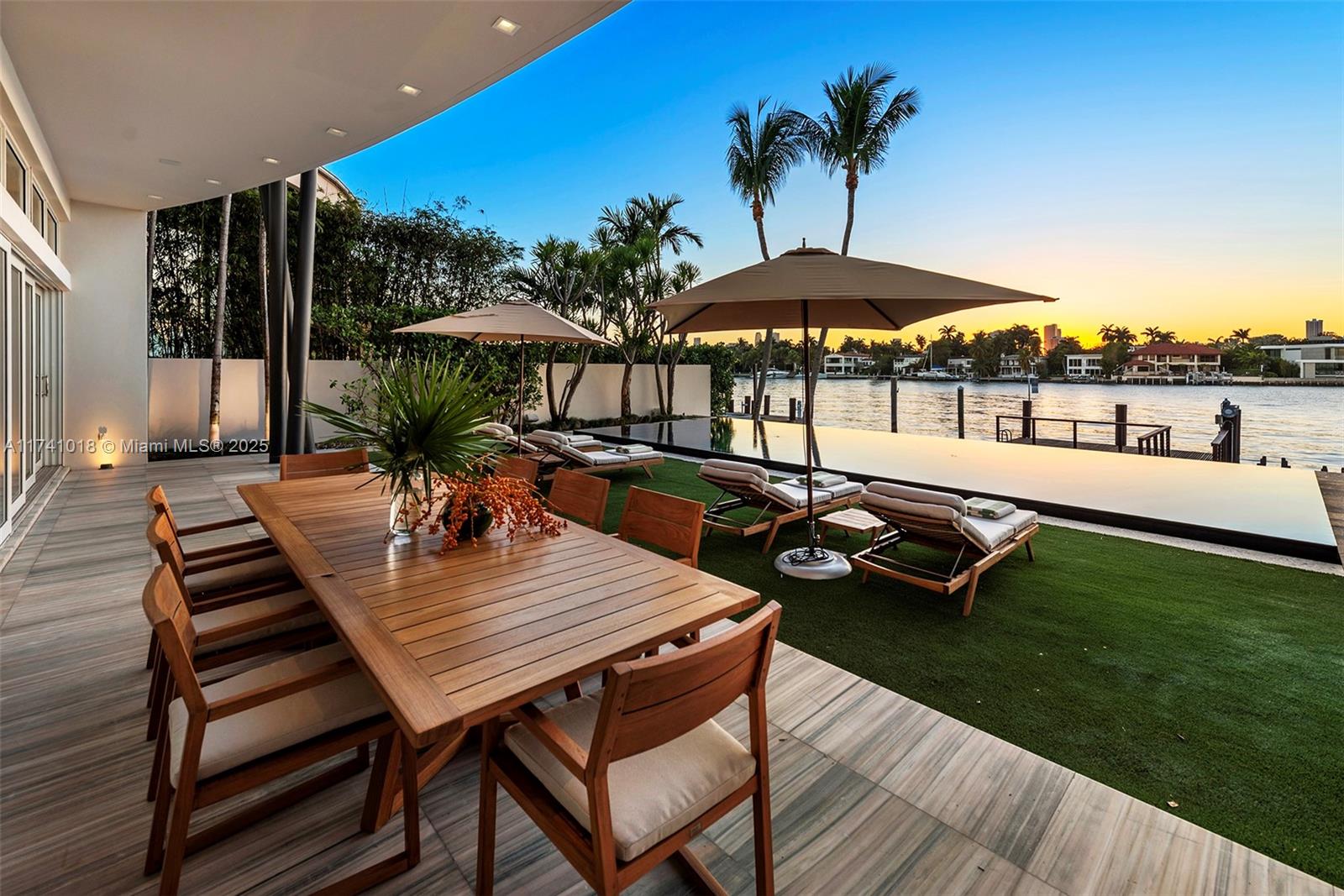 Stunning contemporary home on tropical Venetian Islands with 60-ft waterfrontage and dreamy Miami skyline and sunset views! Manicured to perfection, this luxe home features double-height foyer, sunlit living areas, gourmet kitchen, high ceilings, Crestron Control, terrazzo and marble floors, and elegant wood-paneled ceilings. Upstairs, an exceptional family room and indulgent master suite with generous walk-in closets and luxe bath. Amenities include dock, VIP guest suite, backyard oasis with saltwater infinity pool, patio for outdoor dining, sprawling rooftop with wet-bar, hot tub, and lounge beds, deep terrace with outdoor shower and access to backyard. Enjoy Miami’s waterfront lifestyle and all the best that South Beach and Miami can offer.Ideal for outdoor enthusiasts and entertainers!