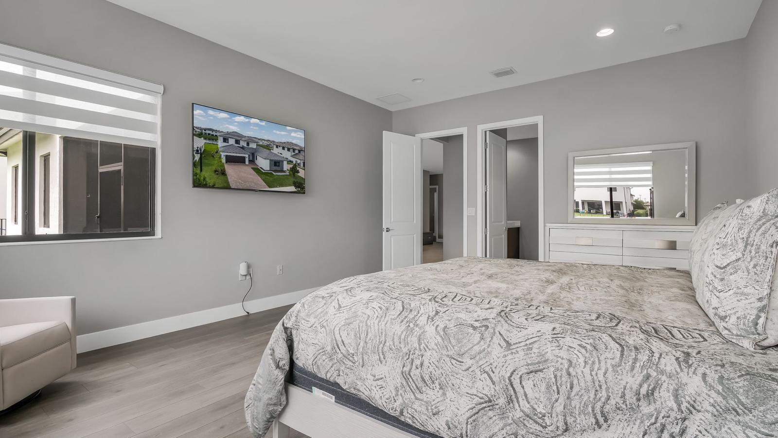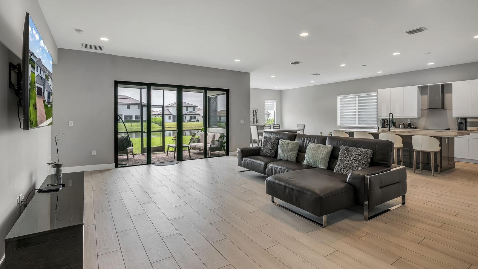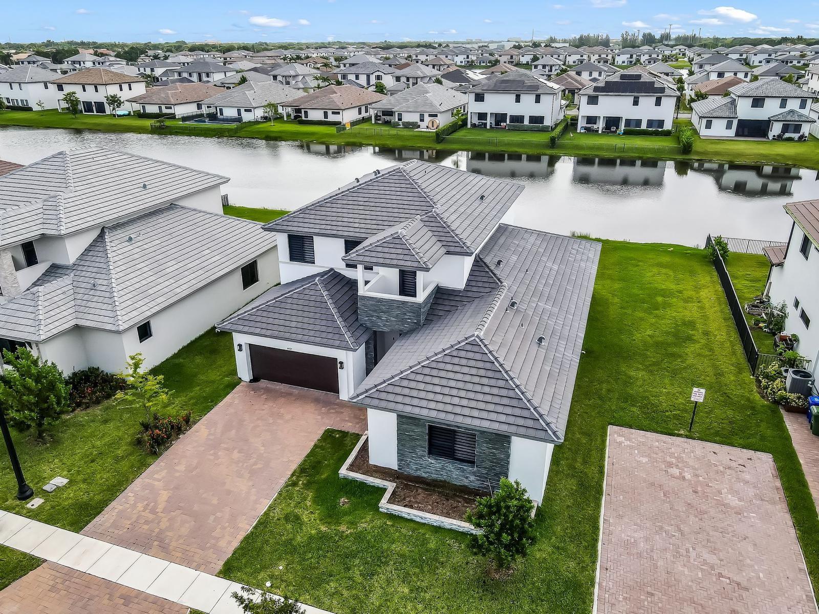 PRICE REDUCED! Brand-new community of Marbella Miramar! This stunning 5 bedrooms, 4.5 bath home offers an open concept combo living, family and kitchen space that flows seamlessly with breathtaking views of the expansive lake and state-of-the-art clubhouse. The pool and deck are ideal for entertaining guests. The home features an attached in-law's quarters complete with a private living, bedroom, bath, and its own entrance. The ground floor boasts a luxurious primary suite with a separate soaking tub & shower + a massive walk-in closet. Upgrades throughout include oversized tiles, modern, sleek custom cabinetry and features, all enhancing the brand-new construction's elegant aesthetic. Upstairs: 3 bedrooms, a loft, and bar, offering a versatility & space. Embrace a lifestyle of luxury!