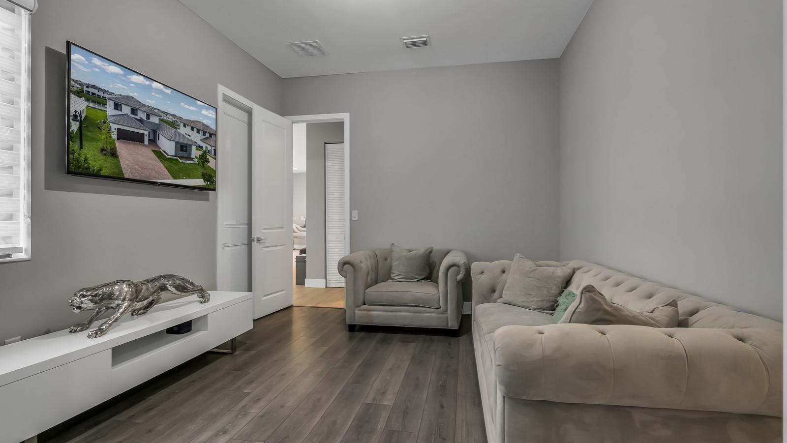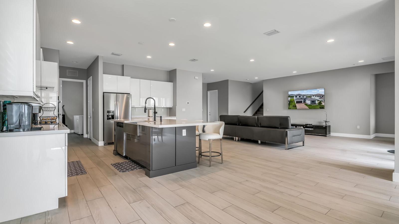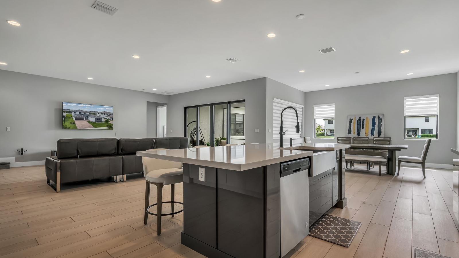 PRICE REDUCED! Brand-new community of Marbella Miramar! This stunning 5 bedrooms, 4.5 bath home offers an open concept combo living, family and kitchen space that flows seamlessly with breathtaking views of the expansive lake and state-of-the-art clubhouse. The pool and deck are ideal for entertaining guests. The home features an attached in-law's quarters complete with a private living, bedroom, bath, and its own entrance. The ground floor boasts a luxurious primary suite with a separate soaking tub & shower + a massive walk-in closet. Upgrades throughout include oversized tiles, modern, sleek custom cabinetry and features, all enhancing the brand-new construction's elegant aesthetic. Upstairs: 3 bedrooms, a loft, and bar, offering a versatility & space. Embrace a lifestyle of luxury!