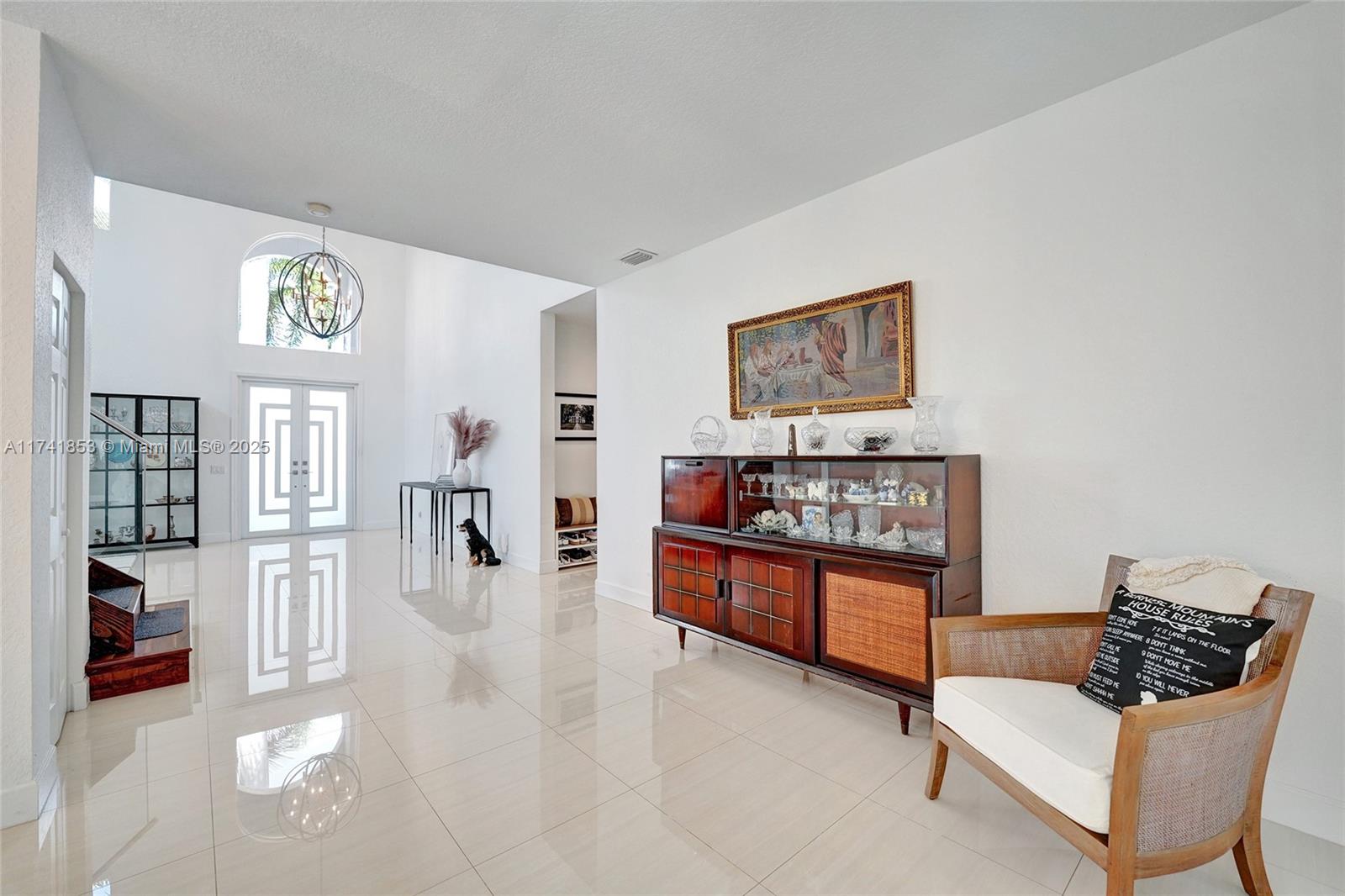 Exquisite 5 bedroom, 3 bath with NEW ROOF and Full IMPACT windows in the prestigious, gated community of Weston Hills Country Club. Chef's kitchen features wood cabinets, Quartzite countertops, and top-of -the-line Miele appliances. The main floor offers the convenience of a full bedroom and bath. Soaring ceilings and porcelain tile create an open, airy ambiance in the living areas, while wood flooring and wood stairs with a sleek glass railing enhance the upper level. The expansive primary suite features a spacious sitting area/office, and spa-inspired bath with a vessel tub, and newly remodeled shower. Step outside to your private oasis. The serene butterfly garden, and new travertine tile patio, enclosed by a seamless screen, provide the perfect space for relaxation and entertaining.