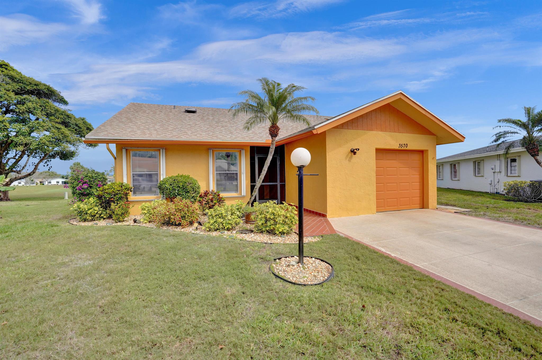 Florida lifestyle without the Florida price tag! This updated 2-bedroom single-family home in the sought-after Cypress Lakes community offers comfort, space, and thoughtful upgrades throughout. The redesigned kitchen features SS appliances and plenty of room for hosting. You will love the airy layout, volume ceilings, updated flooring, and a den perfect for a home office and TV room. An enclosed sunroom adds expanded living space, while the outdoor patio offers a peek of the lake and 18th hole just enough to relax with morning coffee. Additional perks include a skylight, decorative lighting, storm protection, and a garage. The Cypress Lakes 55+ Community offers 24/7 gated security, low HOA fees, and an active clubhouse lifestyle close to everything West Palm Beach has to offer!