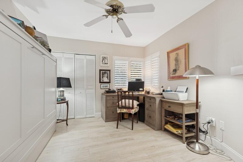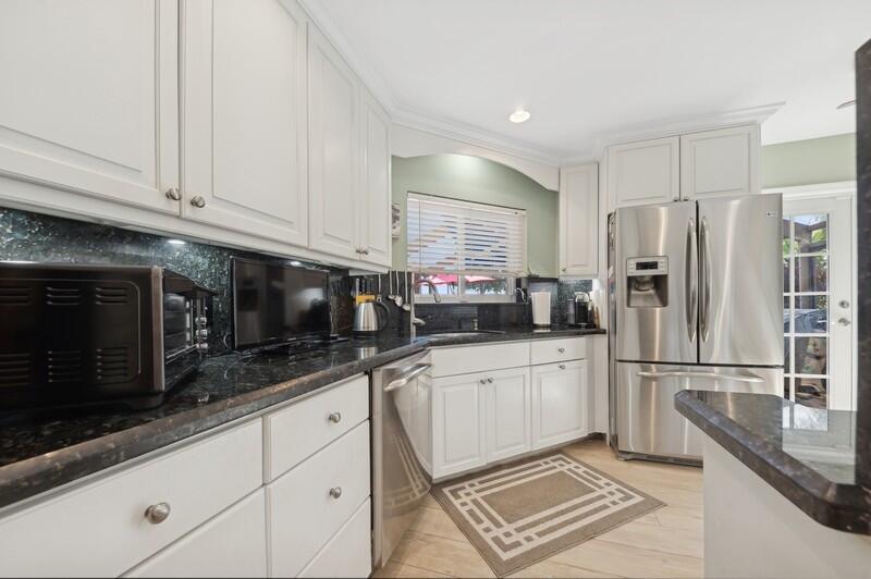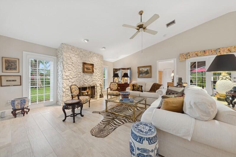 This delightful highly upgraded 3/2 home inCentral Boca Raton is sited on an oversized heavily landscaped cul de sac lot, has an oversized pavered driveway, a sidegarden and screened pool area. The foyer entry opens to an inviting living room with a coral stone working fireplace, wainscoting detail, plantation shutters and a wonderful dining room beyond. Porcelain wood-look tile floors throughout and plantation shutters enhance the look. The spacious family room is ideal for smart/casual entertaining. The beautiful eat-in kitchen with granite counters, stainless appliances overlooks the pool withits pavered deck. Impact glass and accordionshutters throughout offer complete storm protection. This home is a MUST See!!