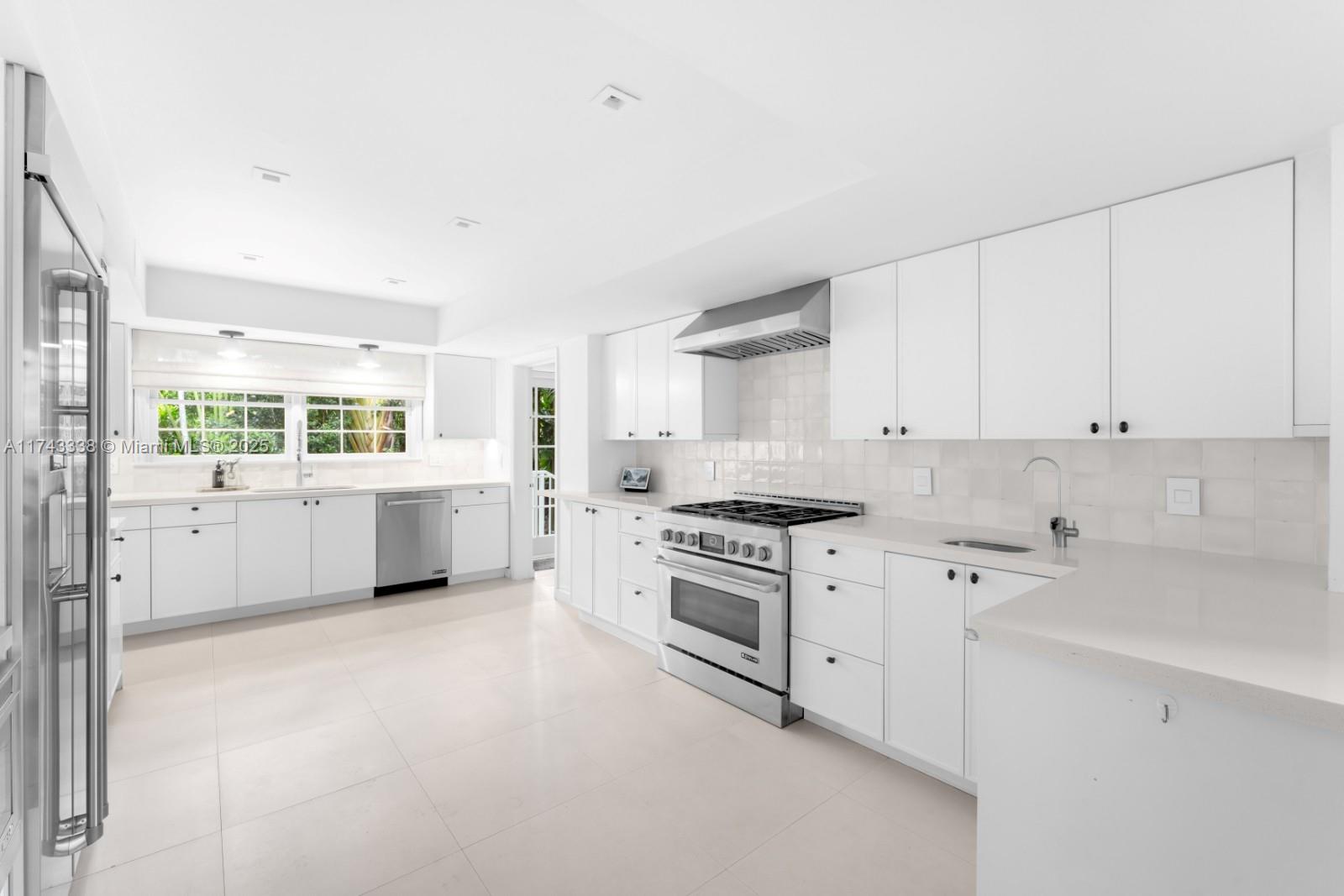Nestled on exclusive guard-gated La Gorce Island, this exquisite colonial-style 2-story home has been meticulously renovated to blend timeless elegance with modern luxury. Boasting 6 bedrooms & 6.5 bathrooms across 5,472 square feet, the home sits on a 17,200 SF double-frontage oversized lot. This expansive home features a grand foyer, open kitchen to breakfast & family room w/ formal dining & living. Restored wood floors, a cozy fireplace and French doors bathed in natural light, offering serene views of the lush garden and pool. Outdoors complete w/ a half basketball court, and summer kitchen. The primary suite is a private retreat, including a sitting area, walk-in closet and a spa-like bath with separate tub & shower. This home offers unparalleled privacy, security and sophistication.