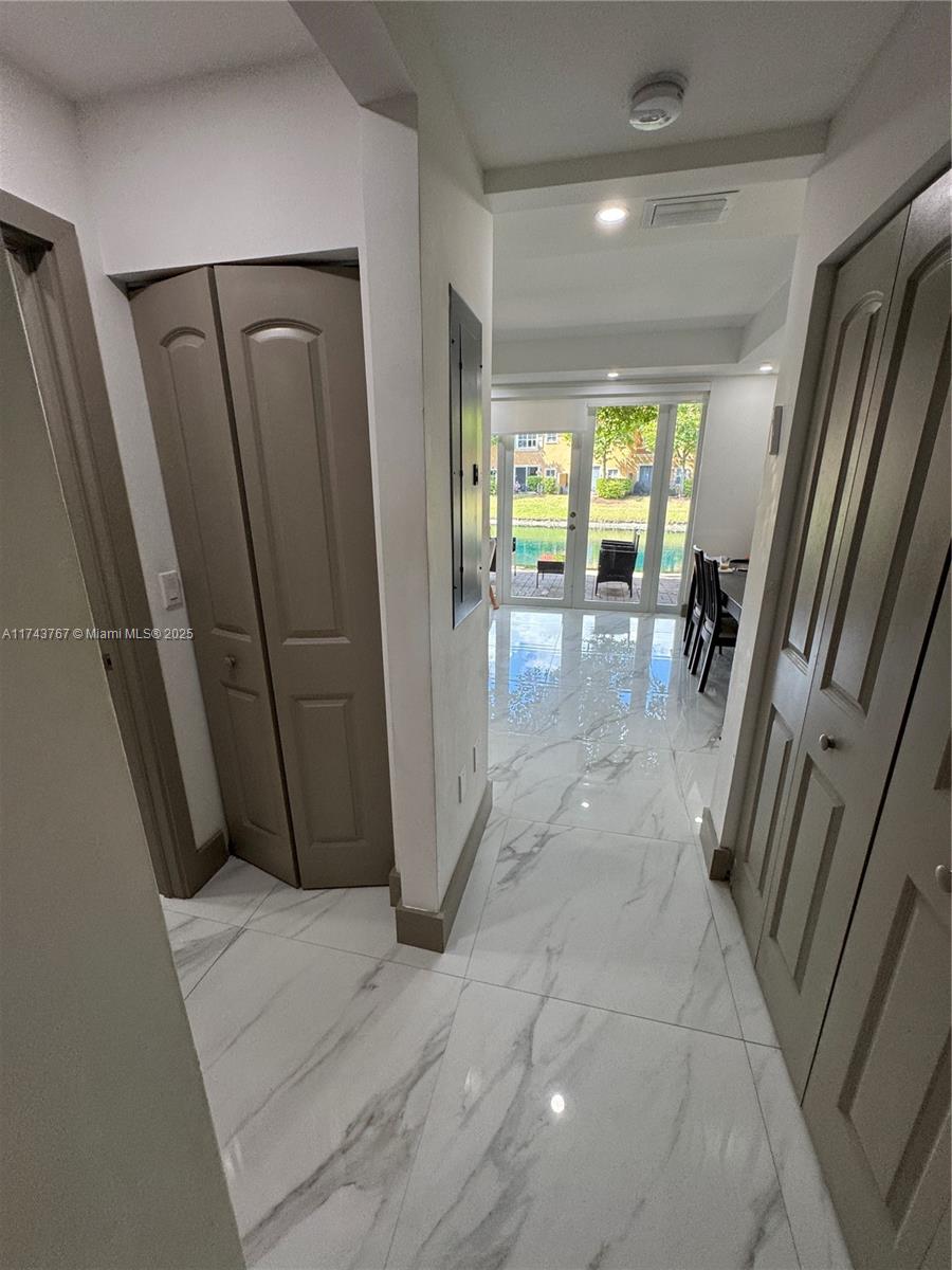 EXCEPTIONAL HIGH END LUXURY & ELEGANCE IN EVERY DETAIL! This stunning home has been recently renovated with high-end finishes, featuring premium materials like glass, ceramic, and stone for a sleek and modern design. Its exquisite lighting and flooring enhance every space, creating a truly unique ambiance. Dream kitchen with granite countertops, high-end appliances, and an elegant built-in oven. High-impact sliding door for ultimate security and style. Spa-inspired master bathroom with a sleek glass-enclosed shower. Perfect layout, including a downstairs bedroom for added convenience. Breathtaking water views from the dining area and backyard—perfect for relaxation. A secure investment: Currently rented for $2,995/month with a lease valid until 10/31/2025. Enjoy guaranteed income from