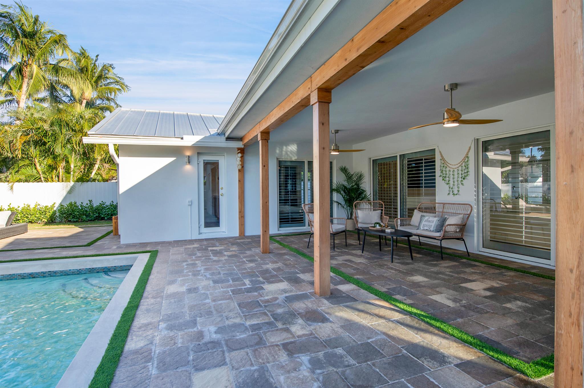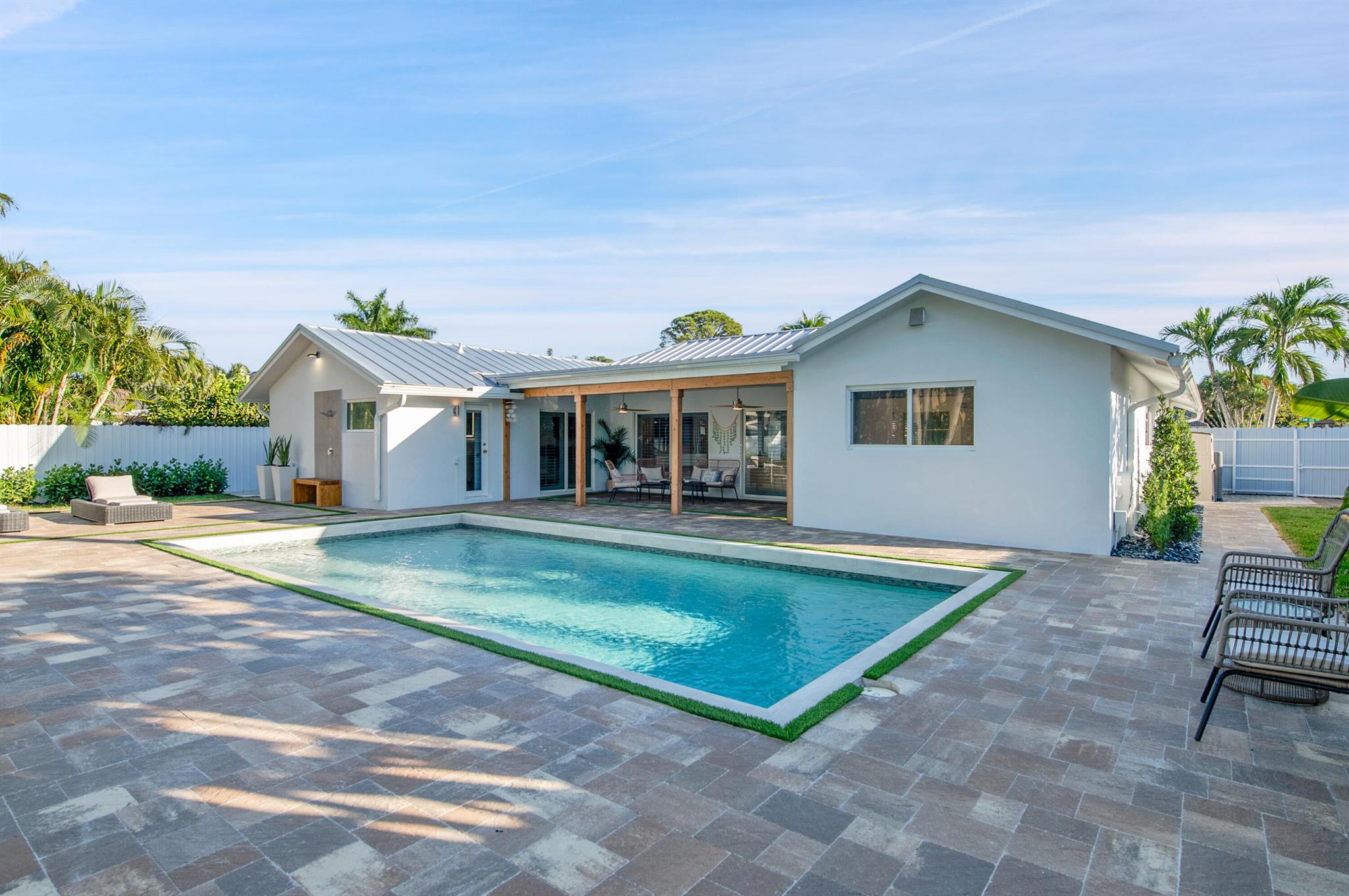Tired of searching for the perfect home? This is it, an unbeatable 4-bedroom, 2-bathroom gem in Palm Beach Farms, where location, style, and function collide. Sitting on a prime corner lot, this home delivers with a sleek, remodeled open-concept kitchen featuring quartzite countertops, a center island, and a double oven built for serious cooking. Step outside, and you've got a private backyard oasis, pool, covered patio, lush tropical landscaping, all ready for entertaining. ALL impact windows and doors for peace of mind, plus a brand-new metal roof.A-rated schools, beaches, downtown Boca's best shopping, dining, and nightlife just minutes away. Basketball courts, a playground, everything your lifestyle demands. Homes like this don't sit.