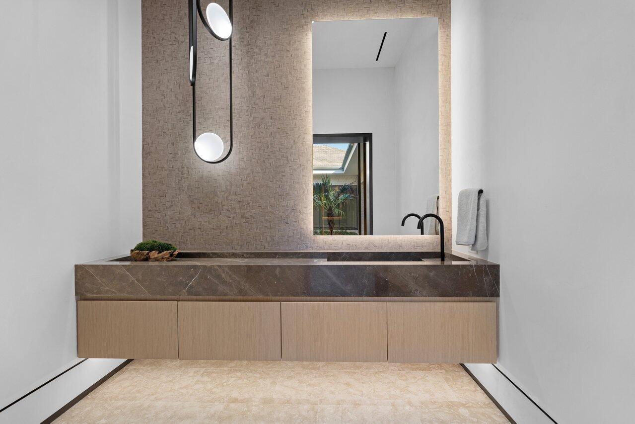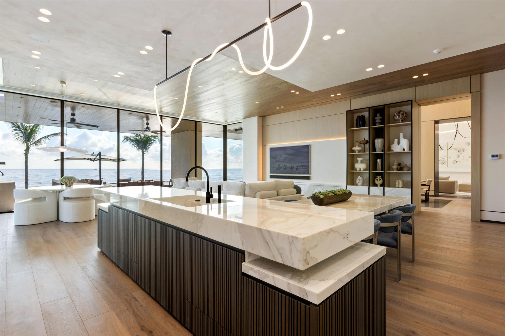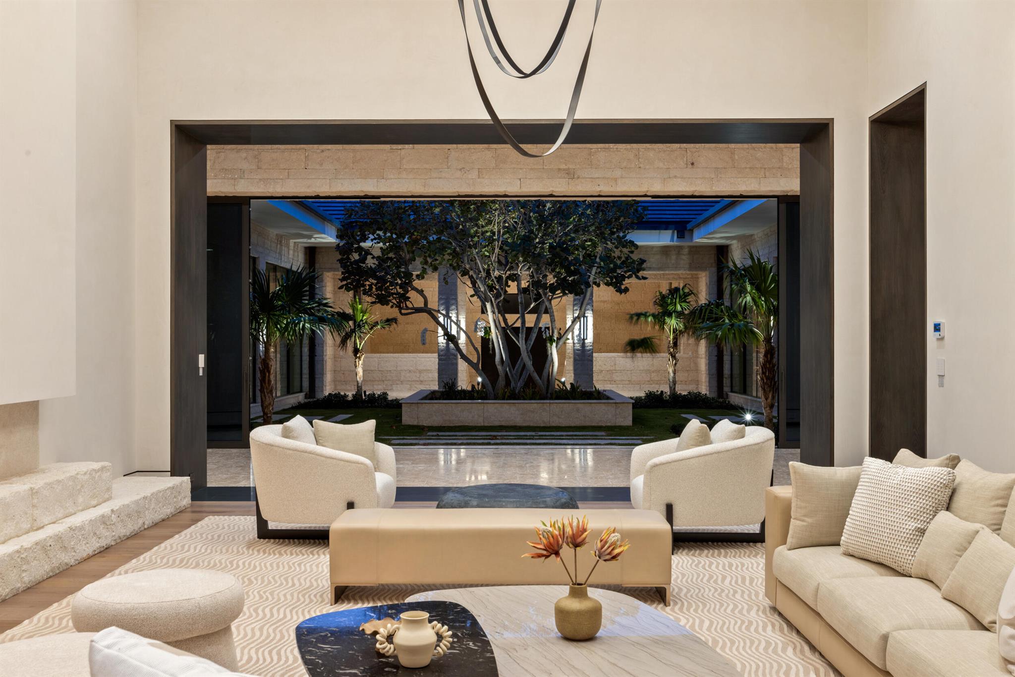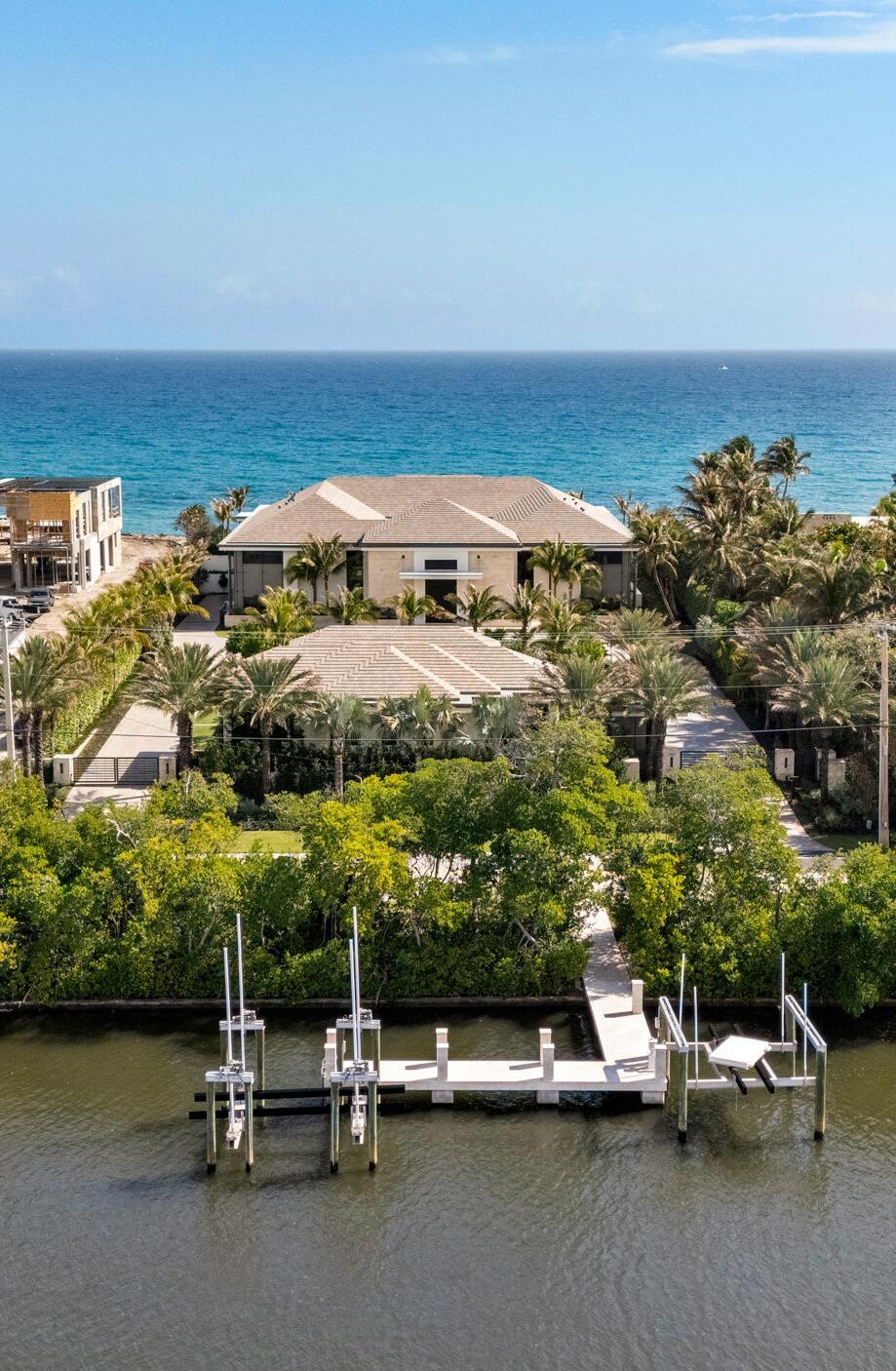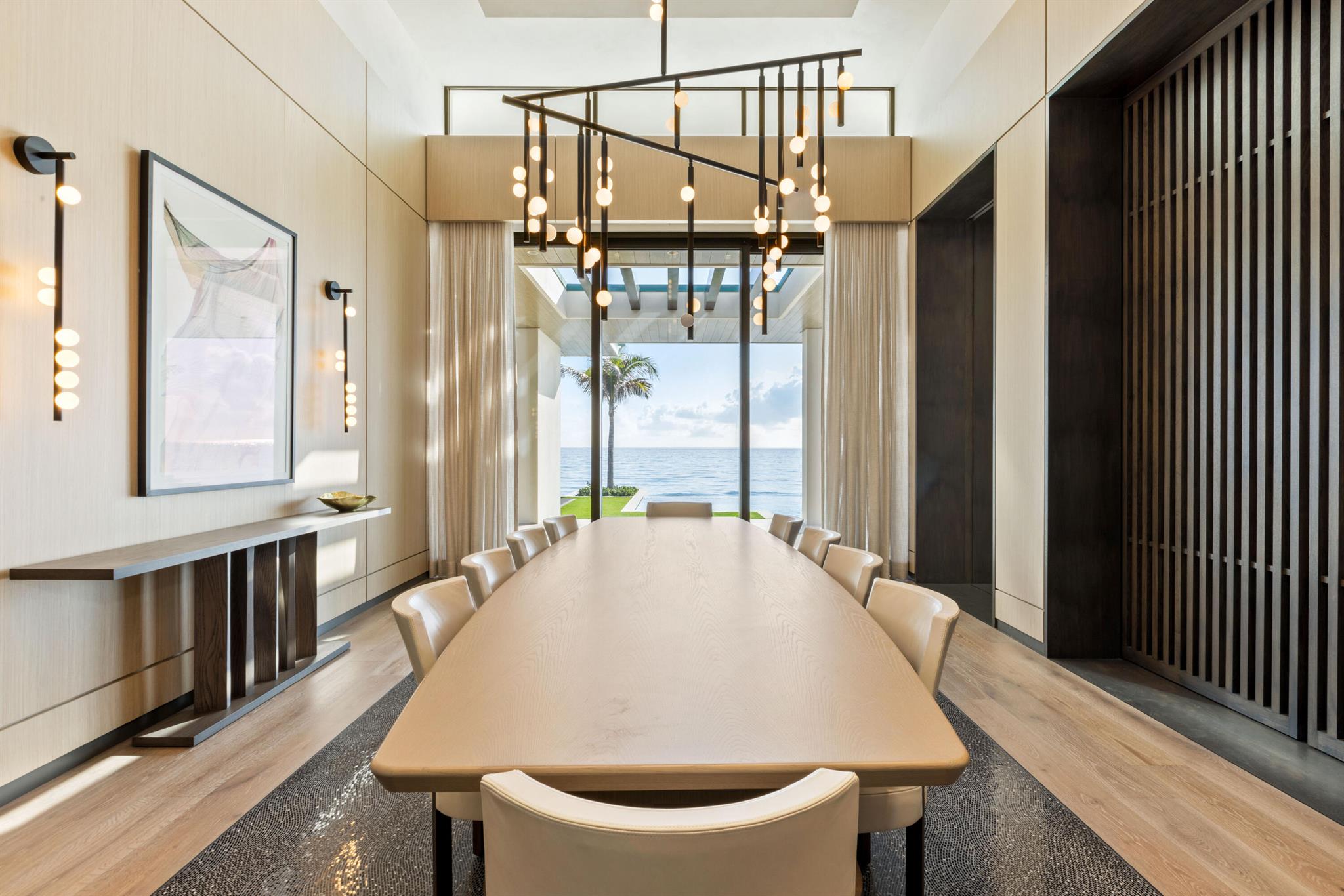 Set between the Atlantic Ocean and Intracoastal Waterway, 1160 S. Ocean Blvd is a rare retreat where architecture and nature exist in perfect harmony. Spanning 27,745+/- square feet under roof on nearly 2 acres, this newly completed estate offers 160 feet of direct ocean frontage and private Intracoastal access, creating an unrivaled connection to land and sea. Designed with balance and thoughtful craftsmanship, the 25,197+/- square-foot main house flows effortlessly from one space to the next. From the grand entry hall, the journey unfolds--a symphony of light and space, where the living room merges with the ocean beyond. The formal dining room, with its ocean-facing bar, sets the stage for elegant entertaining, while the open-concept kitchen and family area form the heart of the home.